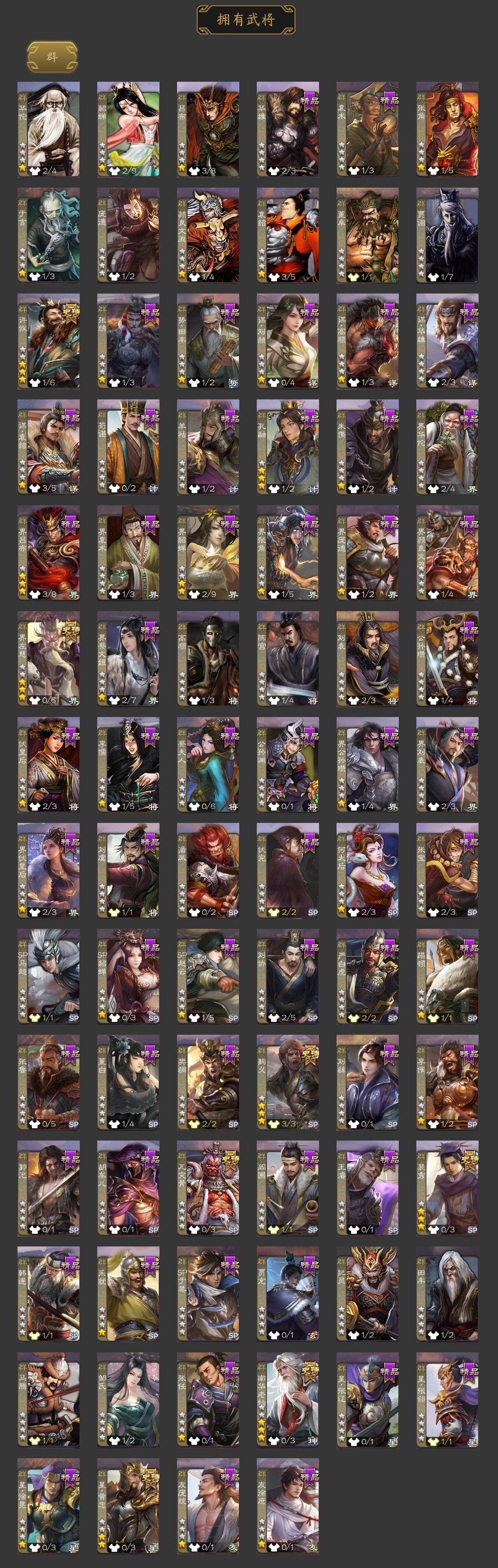 神吕布,神陆逊,神甘宁,神诸葛亮,马钧,界钟会,界于禁,郝昭,曹纯,戏志才,清河公主,程昱,谋马超,诸葛瞻,赵襄,王平,沙摩柯,花鬘,吴景,骆统,界徐盛,文鸯,裴秀,星黄
