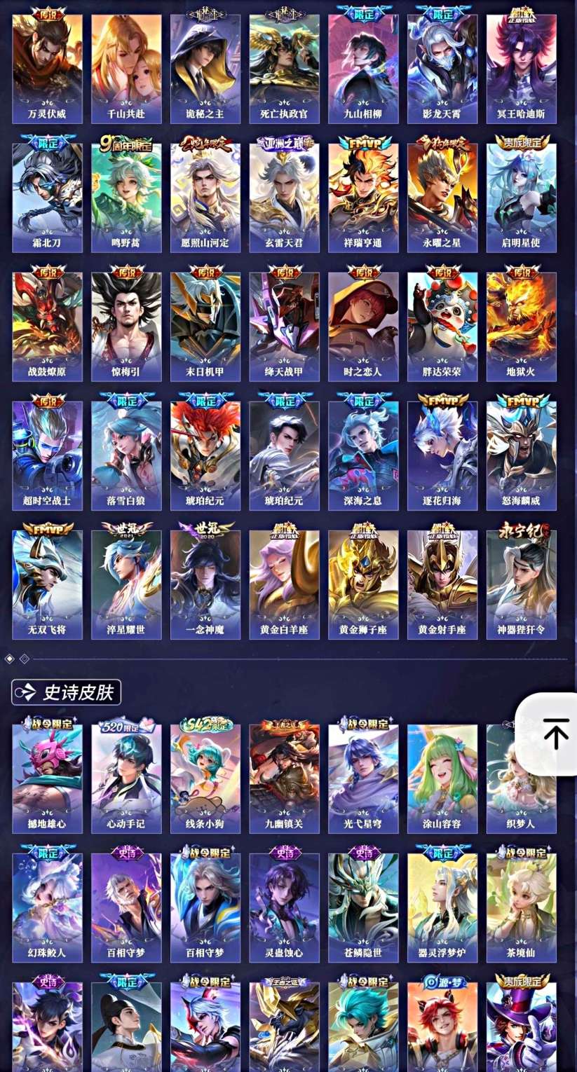 贵族9 荣耀典藏2 无双6 珍品传说4 星元皮肤2 传说皮肤35