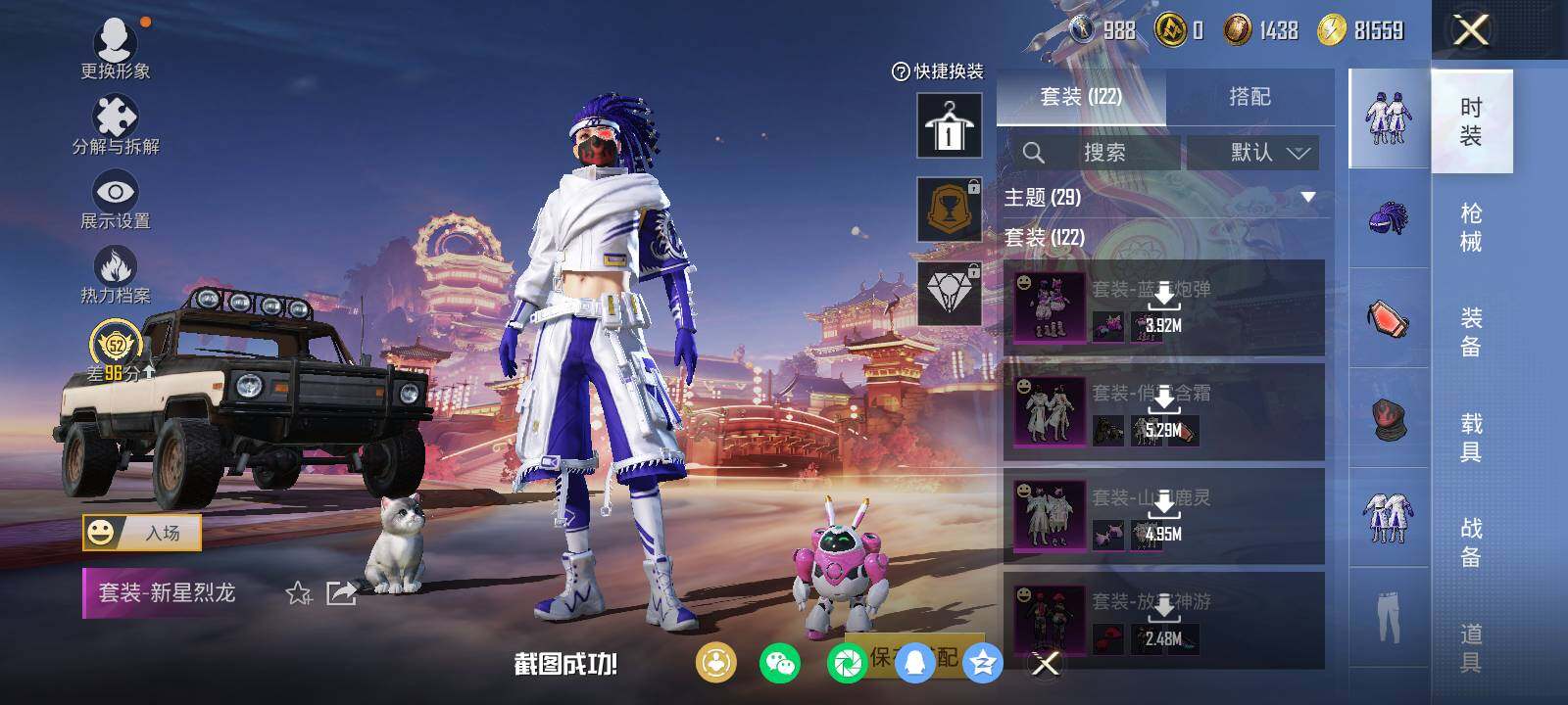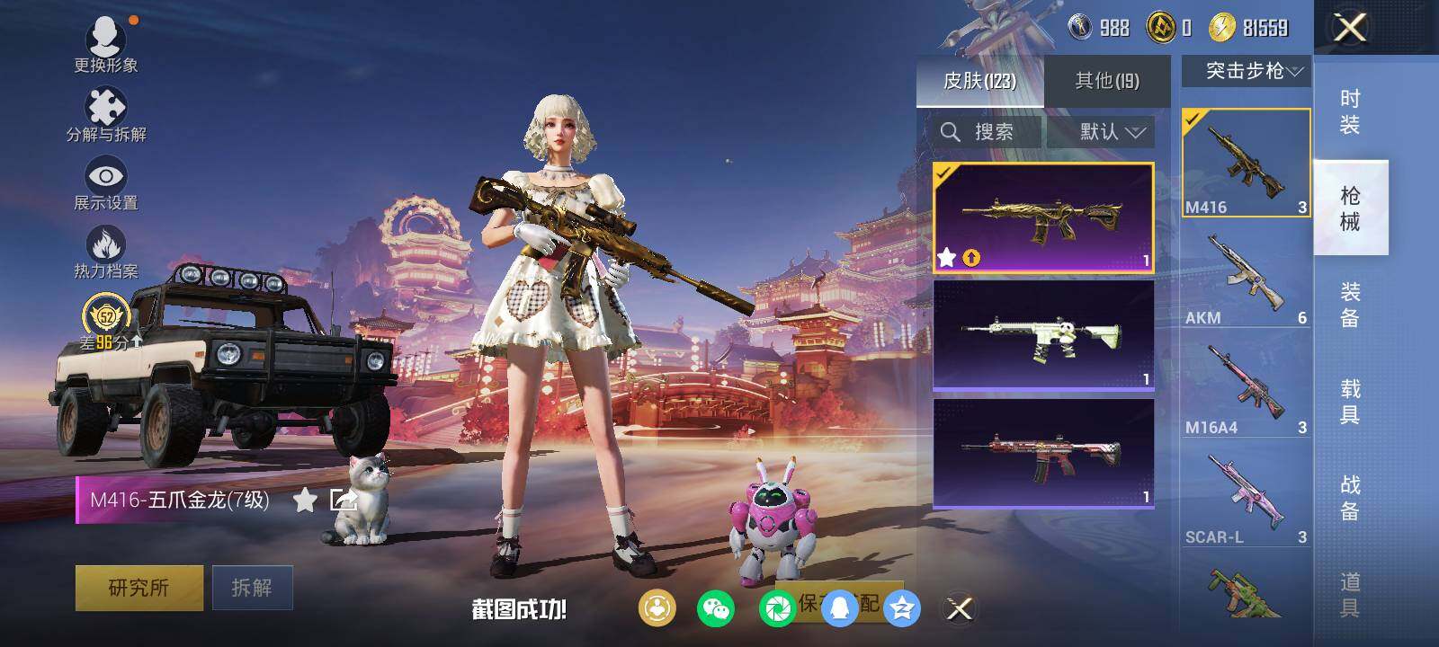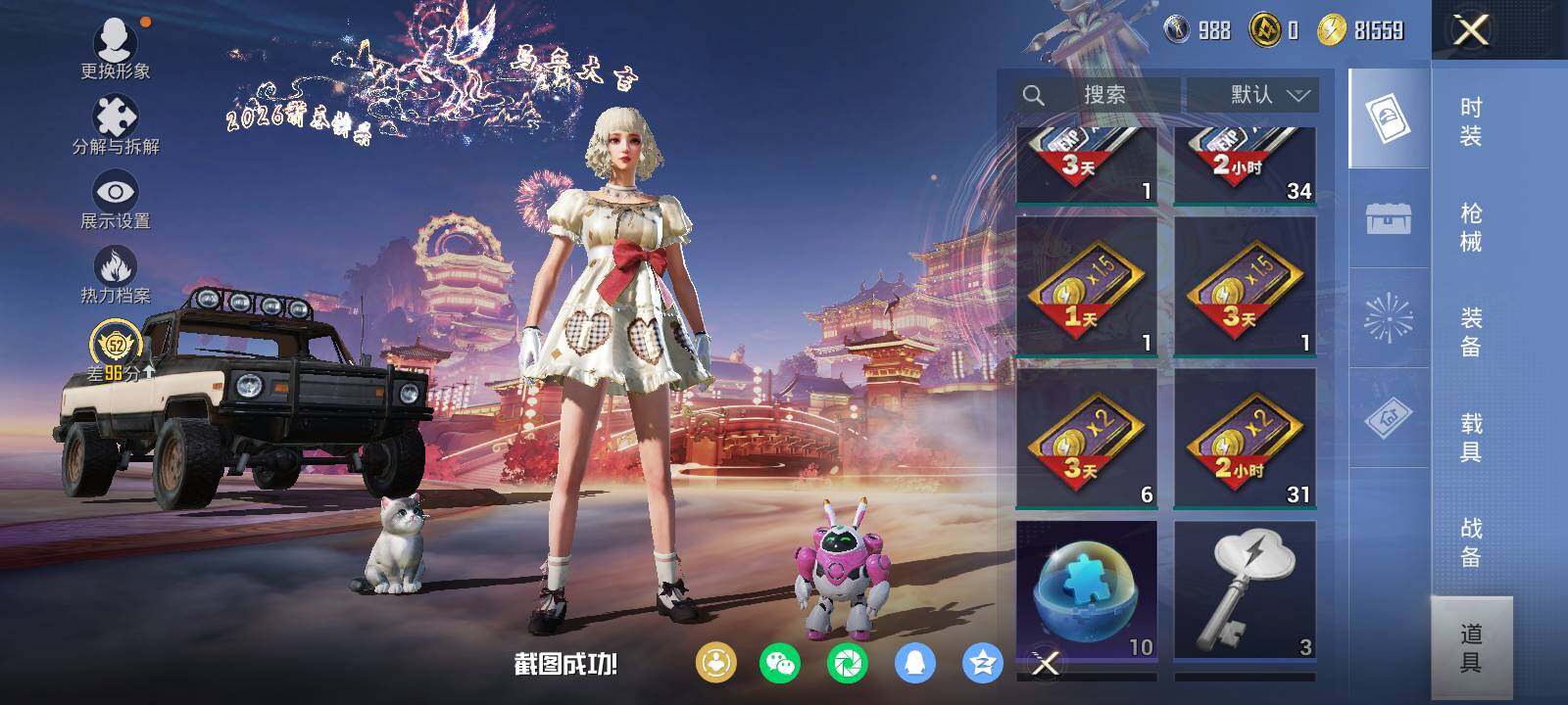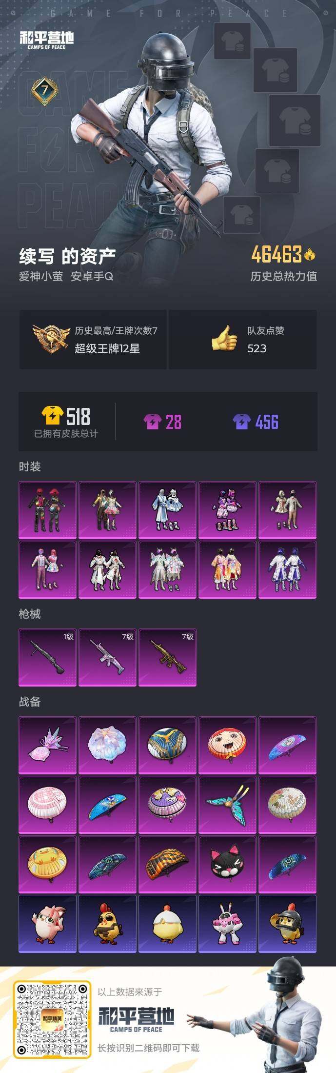 安卓 手Q-10粉装-3特效枪-0载具-2粉色飞行器-46463热力值-7王牌印记-122套装-123枪皮