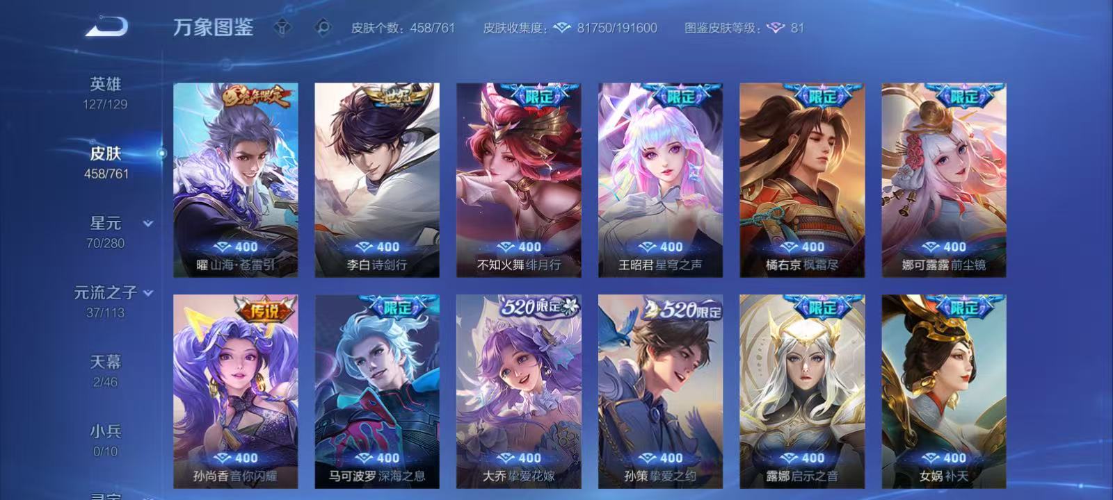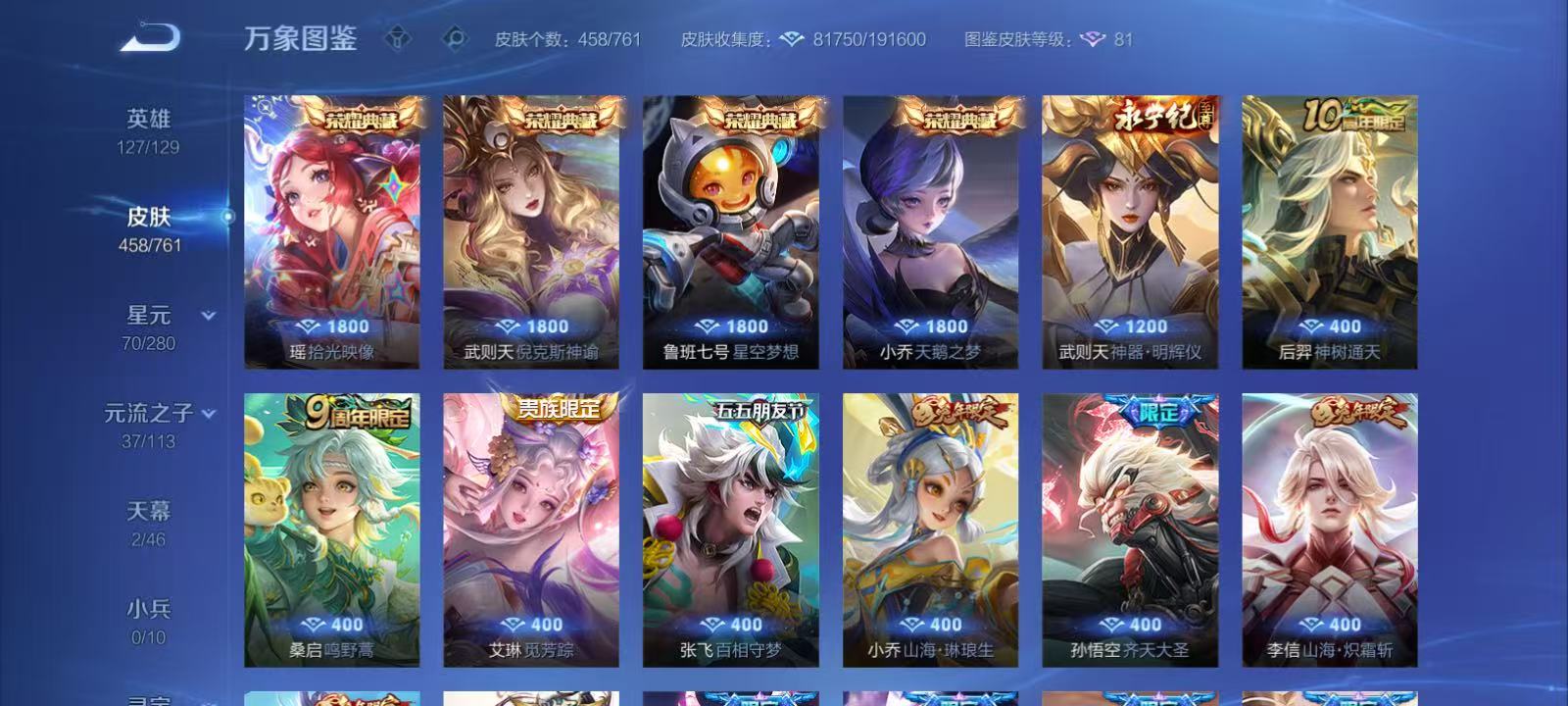 V10-极品主播专用打野女用男用都可458皮2天幕4典藏-猪鸡鼠牛兔年限定全套-1无双-瑶拾光映像,武则天倪克斯神谕,小乔天鹅之梦,鲁班七号星空梦想-武则天神器明辉仪-后裔神树通天,桑启鸣野蒿,艾琳觅芳踪,张飞百相守梦,孙悟空齐天大圣,小乔山海琳琅生,曜山海苍雷引,李信山海炽霜斩,李白诗剑行,赵云淬星耀世,宫本武藏地狱之眼,不知火舞绯月行,王昭君星穹之声,橘右京枫霜尽,娜可露露前尘镜,孙尚香音你闪