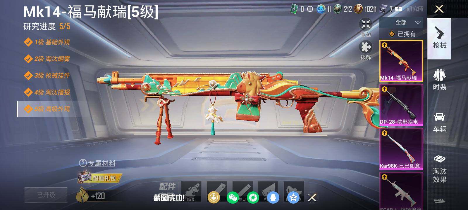 【粉色枪皮等级】:SCAR-L-锦绣绵绵(五级),Kar98K-巳巳如意(五级),DP-28-豹影疾电(五级)