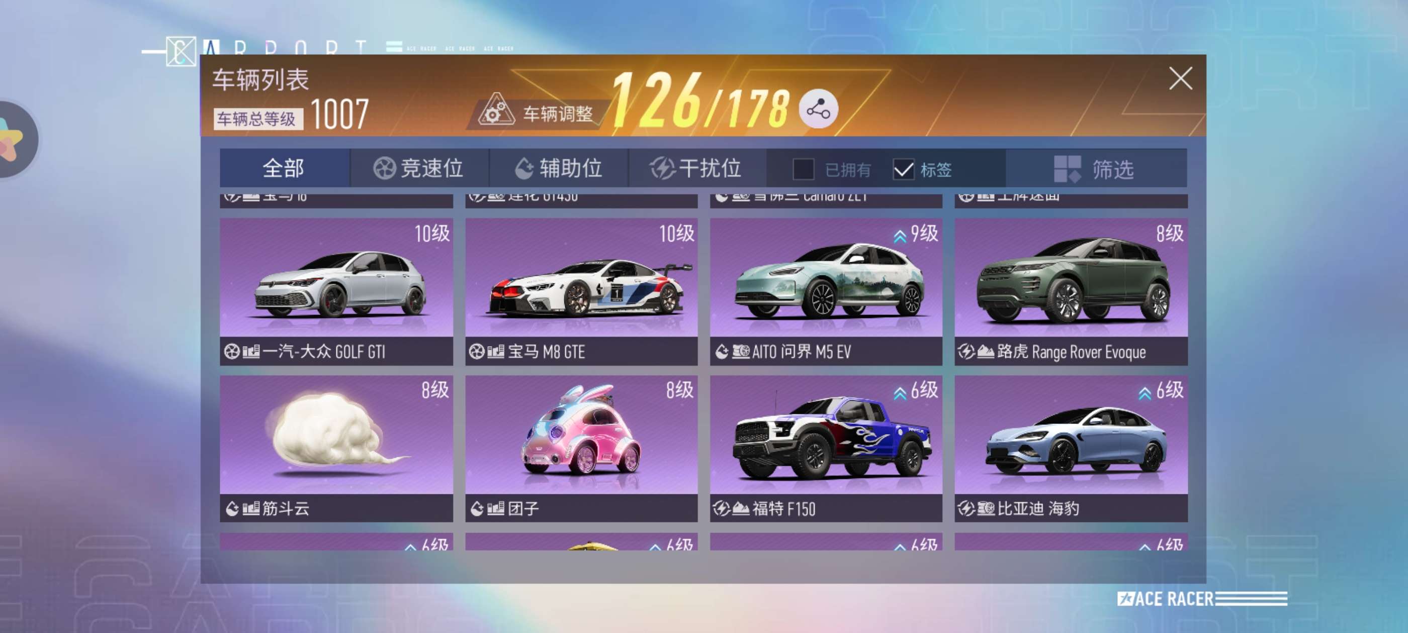 稀有赛车数量: