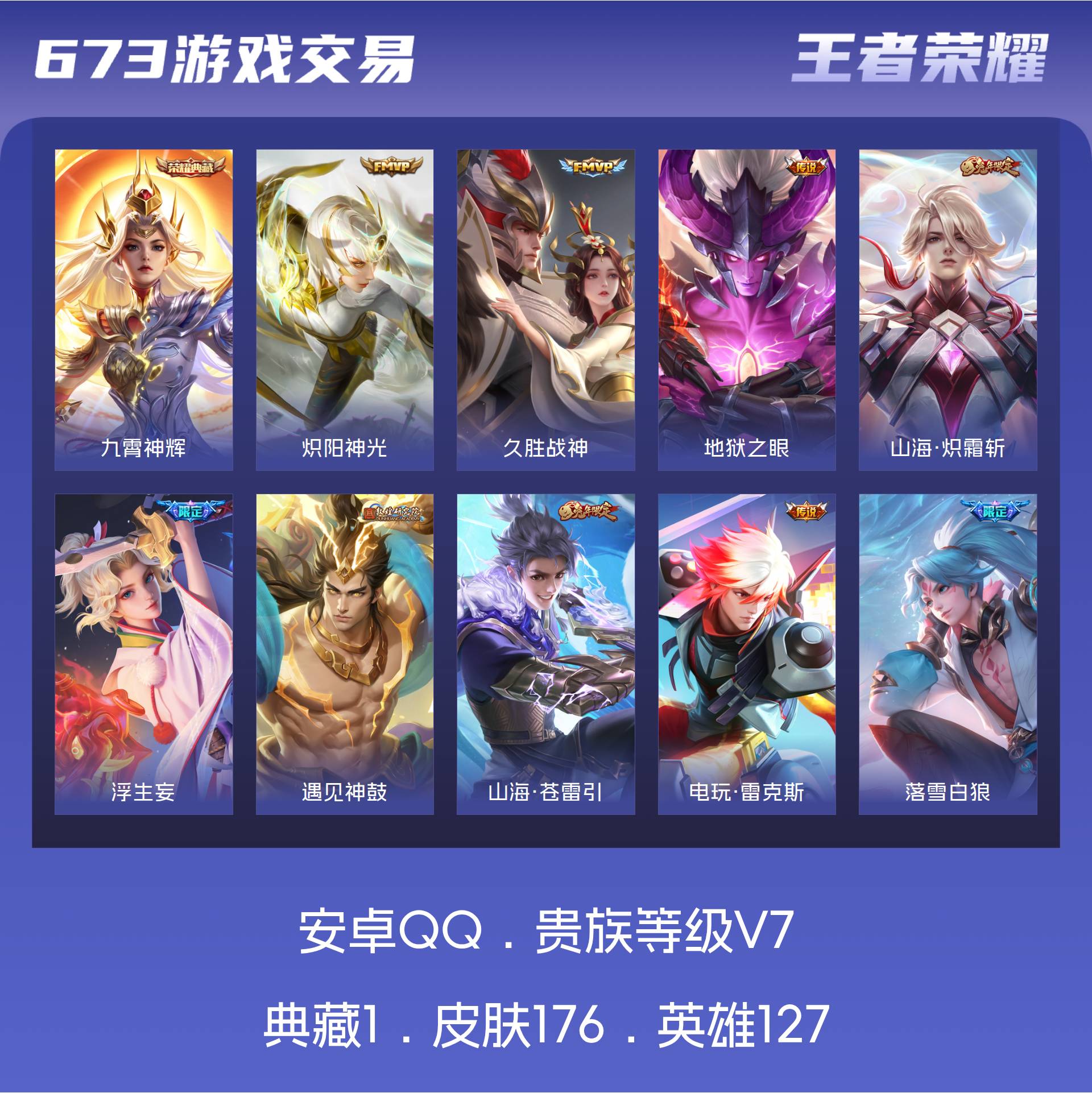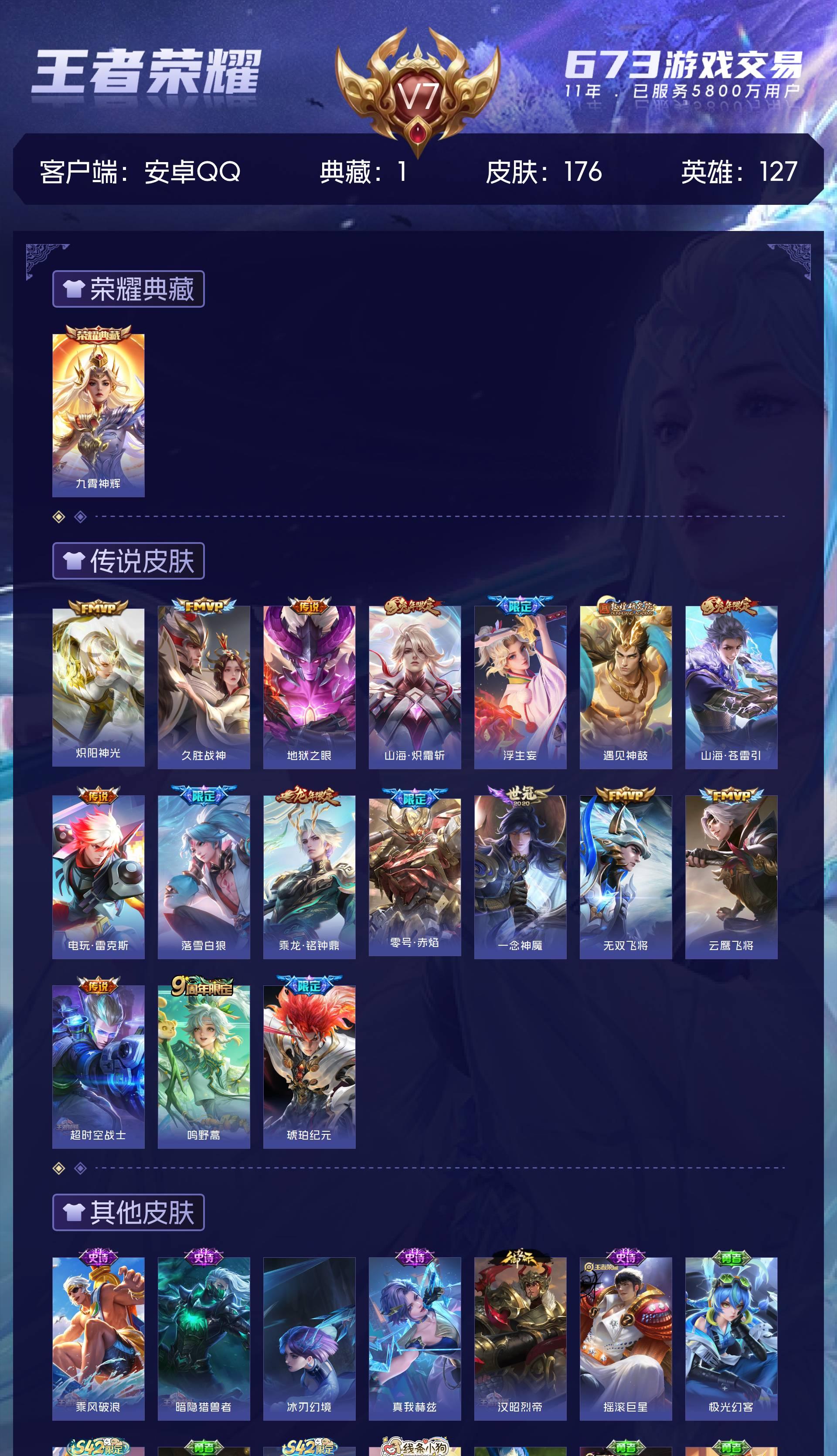 V7 皮肤176 英雄127 至尊星耀 荣耀典藏1 星传说1 传说17 其他皮肤161
