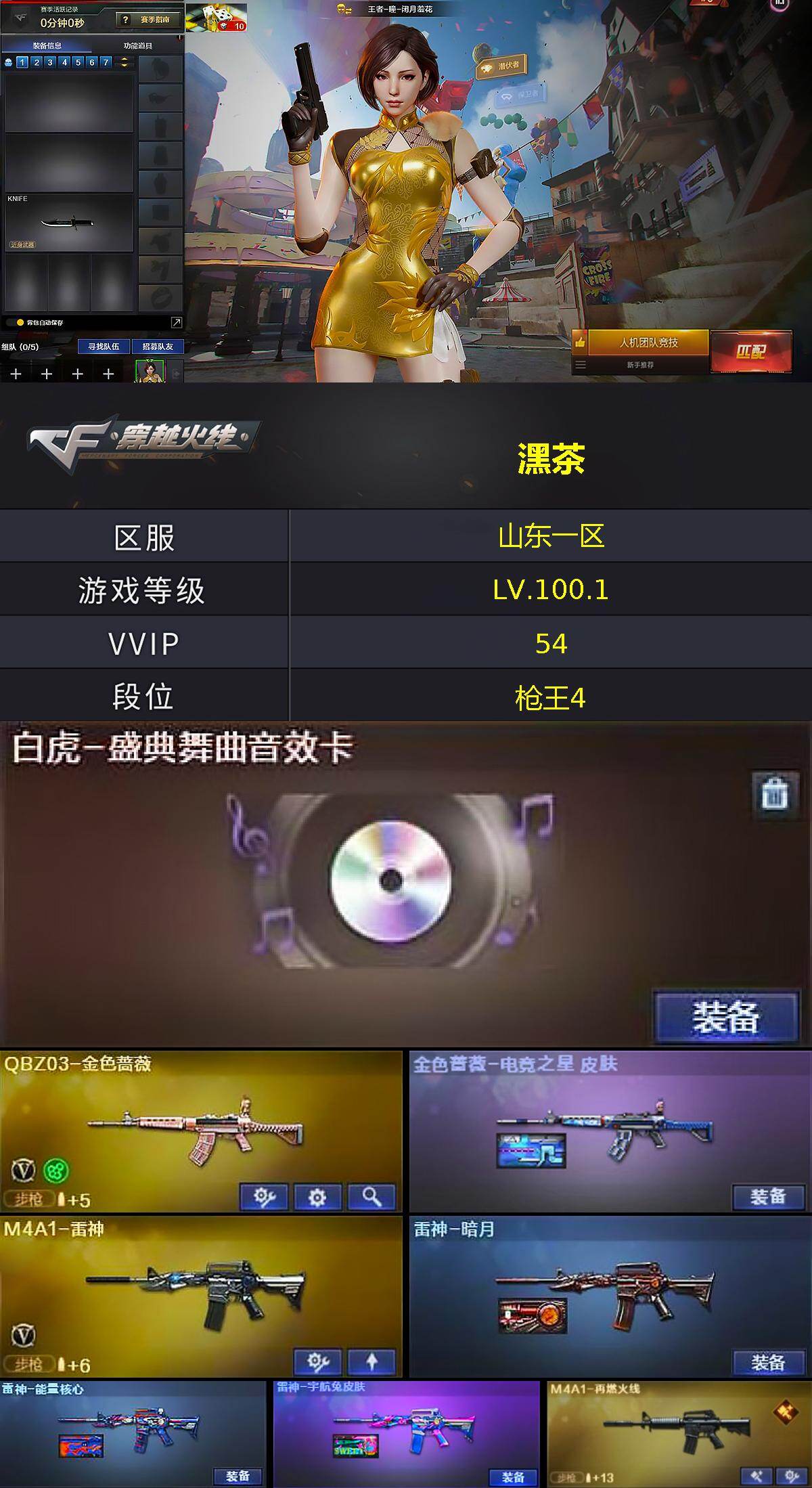 山东一区-60V-0王者武器数-1炫金武器数【热门武器】:QBZ03-金色蔷