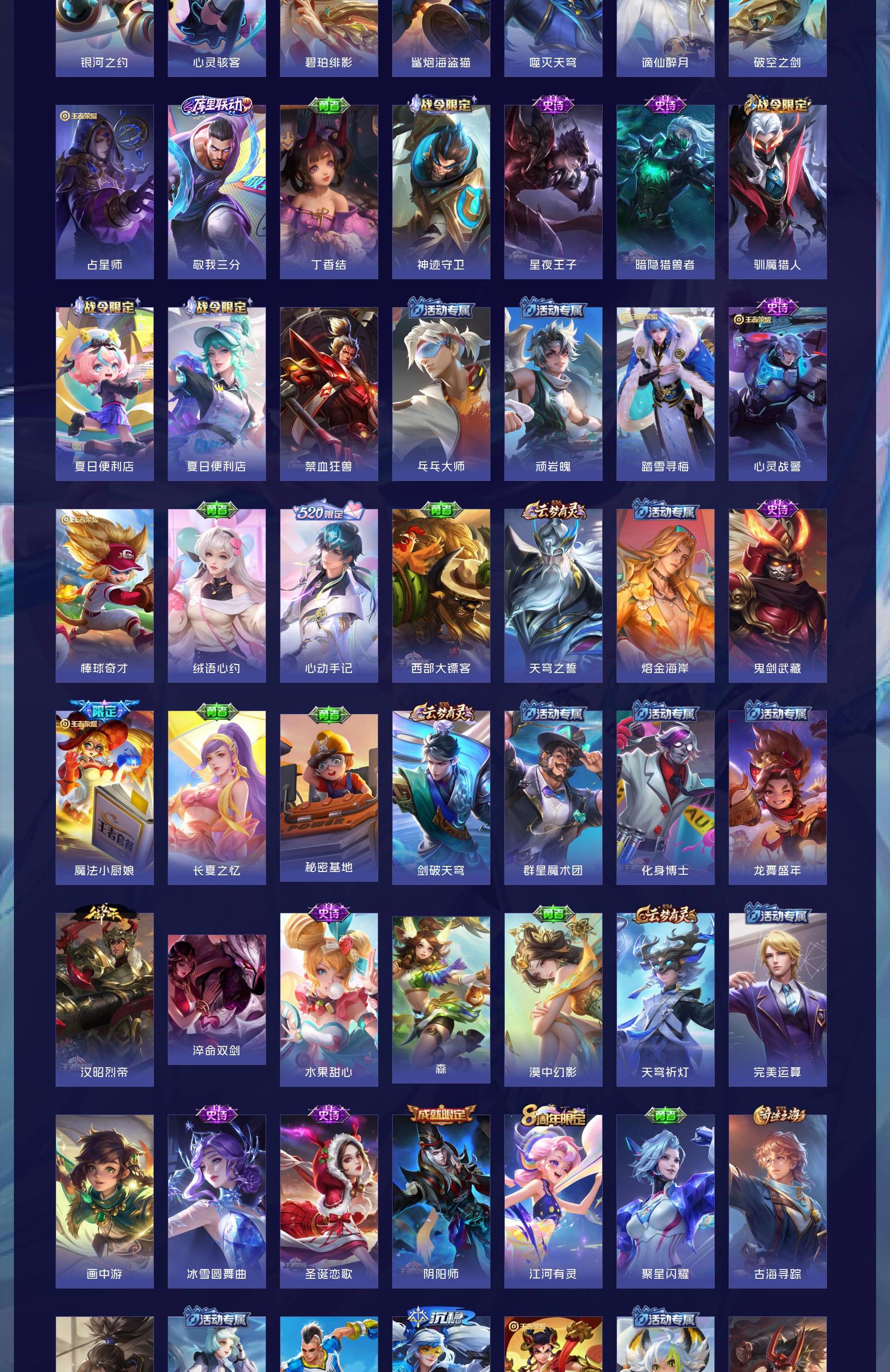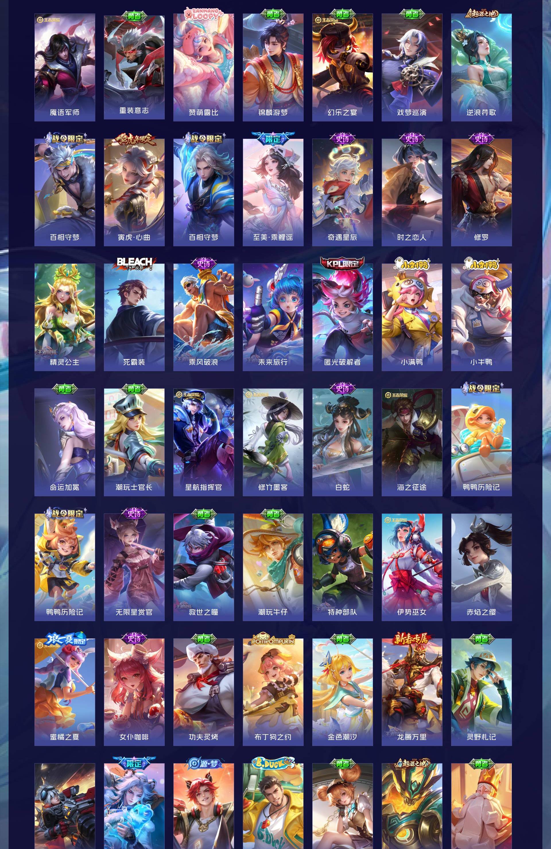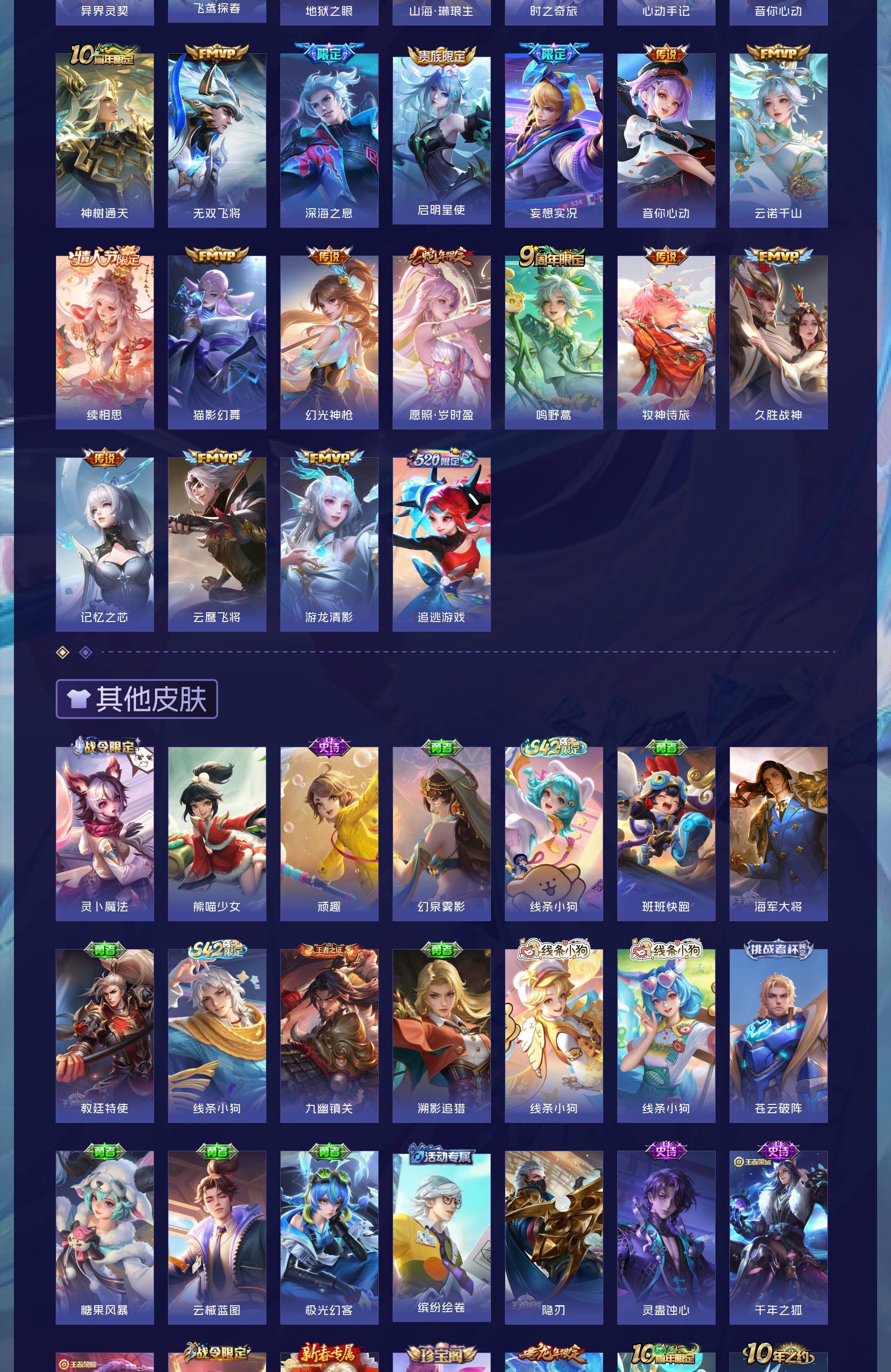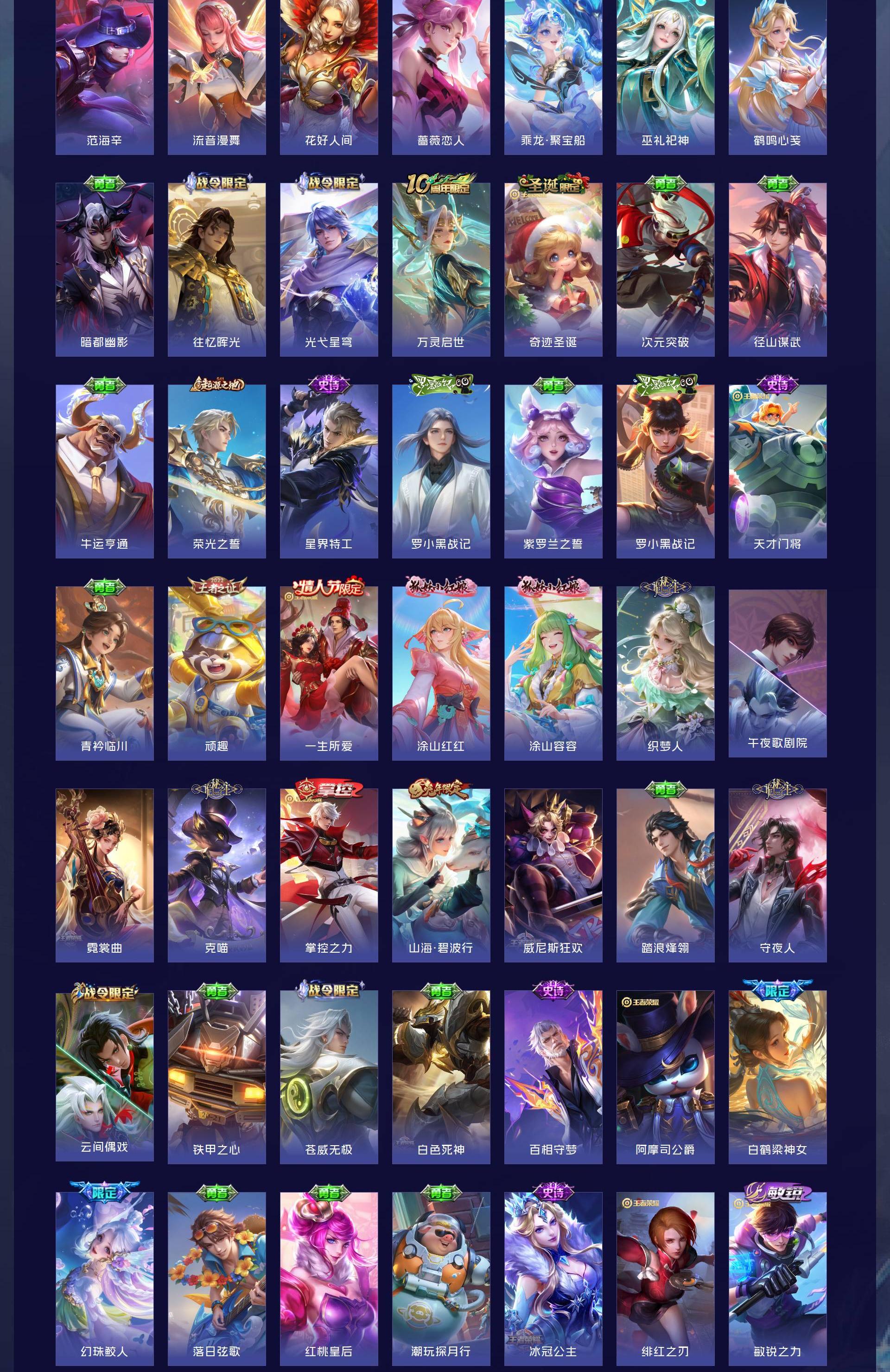 V8 皮肤290 英雄126 永恒钻石 荣耀典藏1 无双皮肤3 珍品传说5 传说25 其他皮肤251