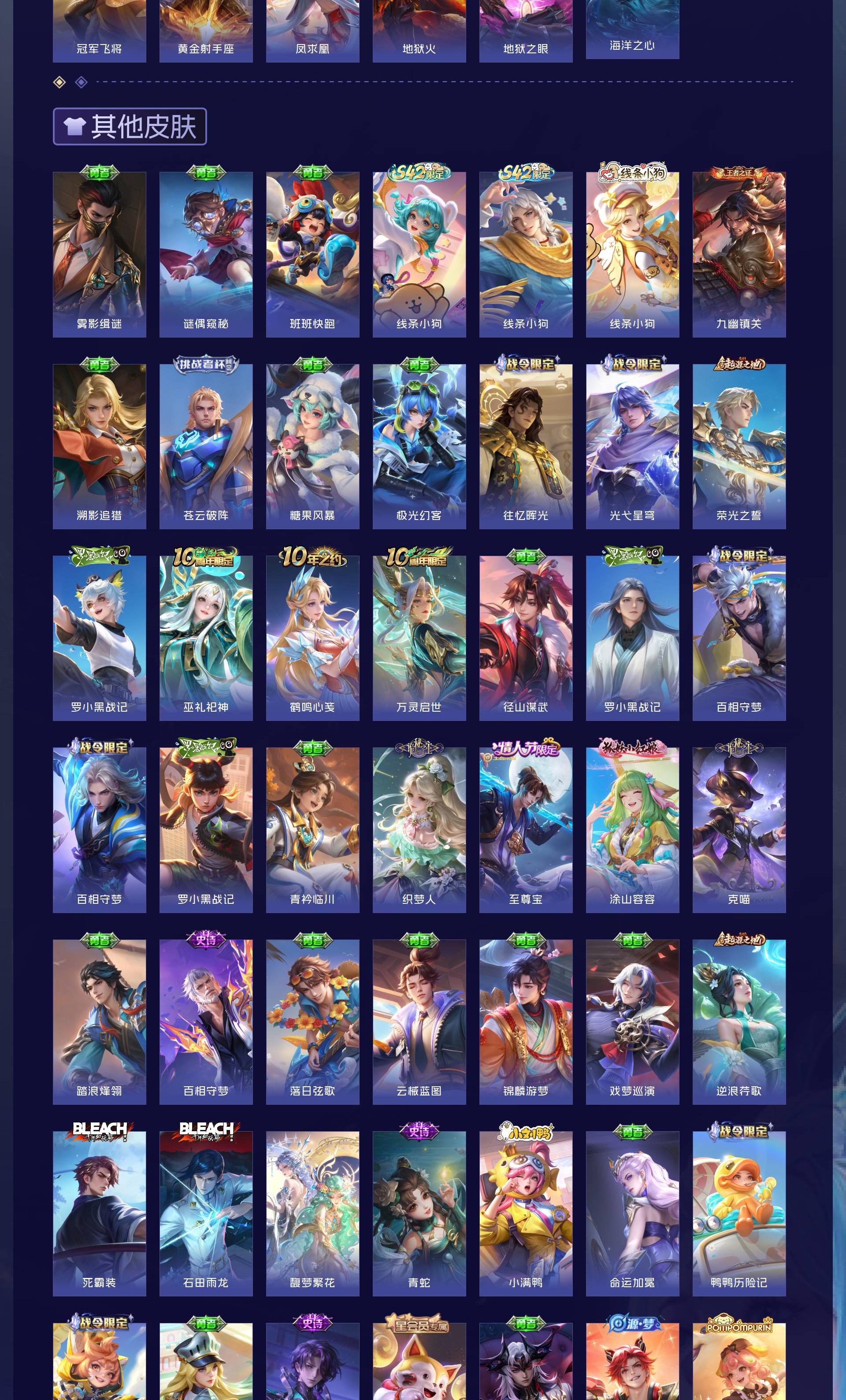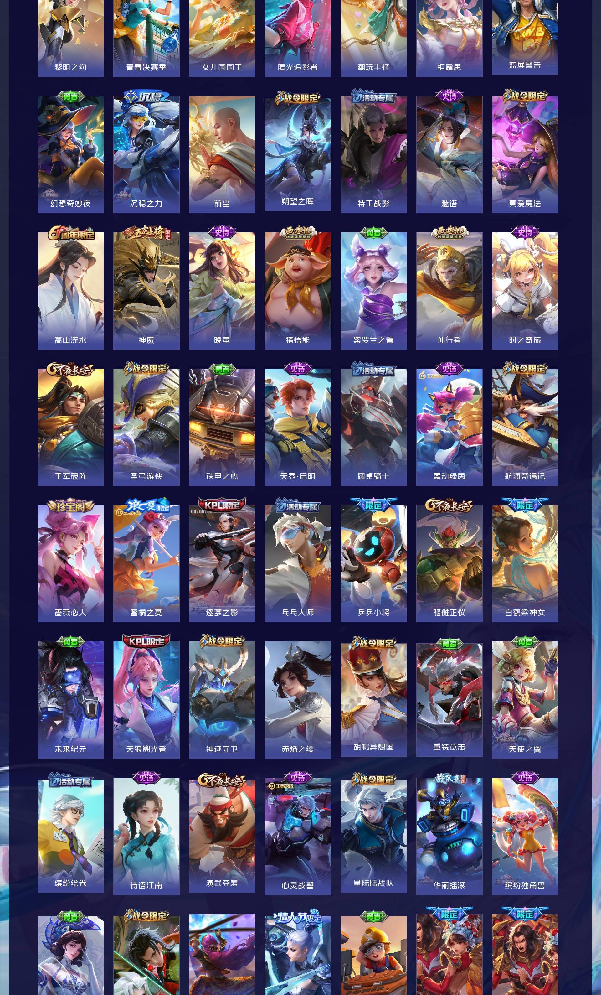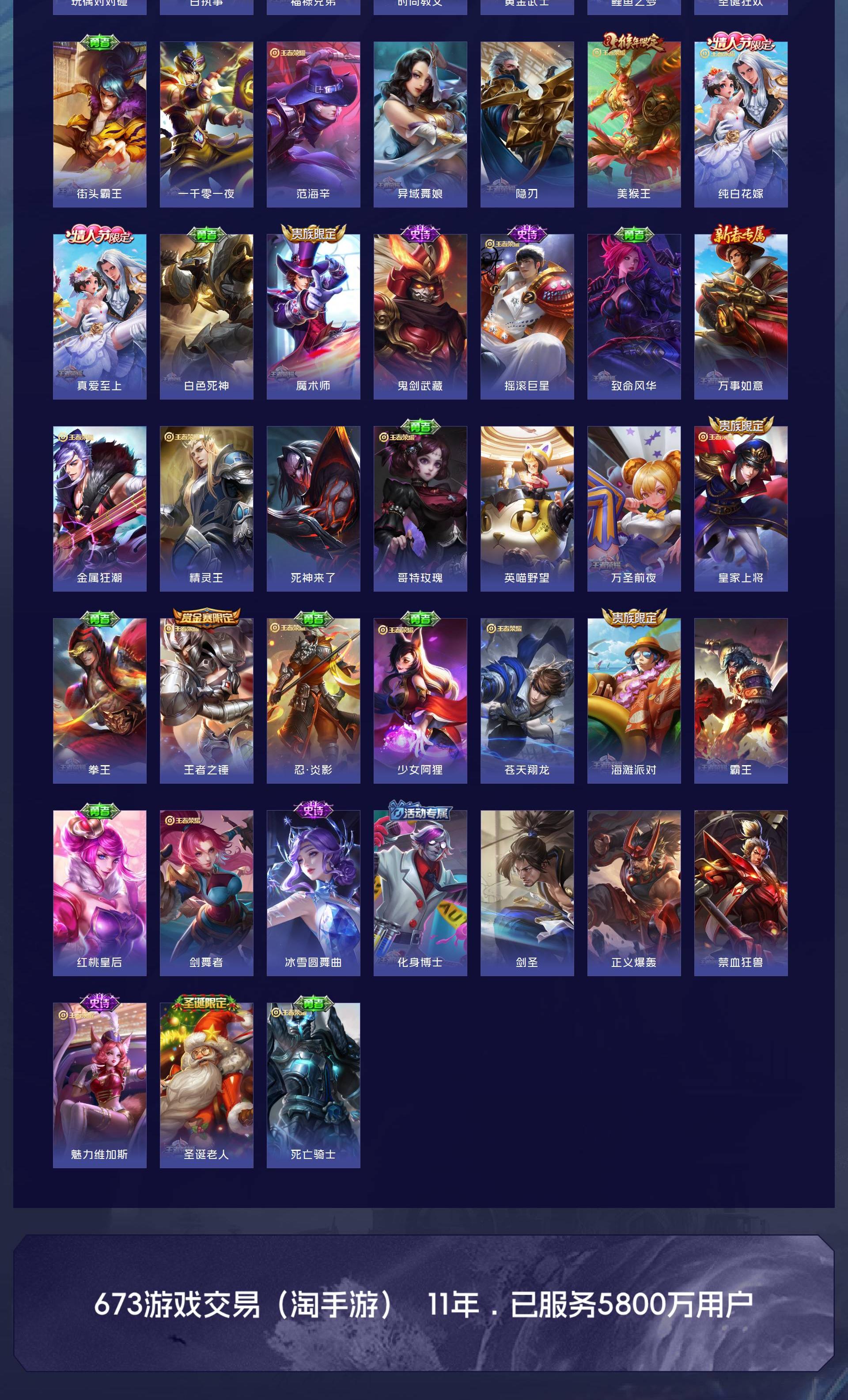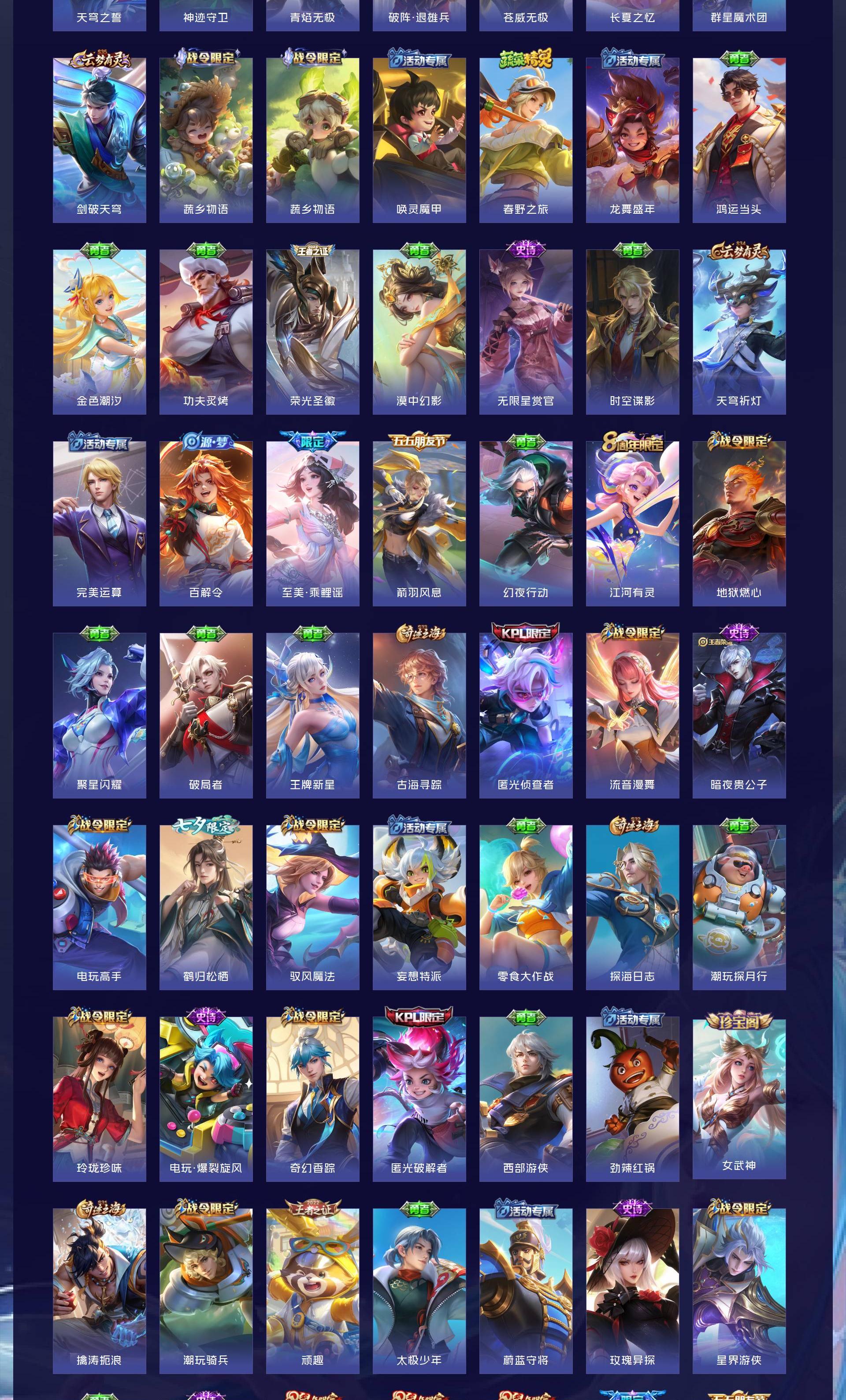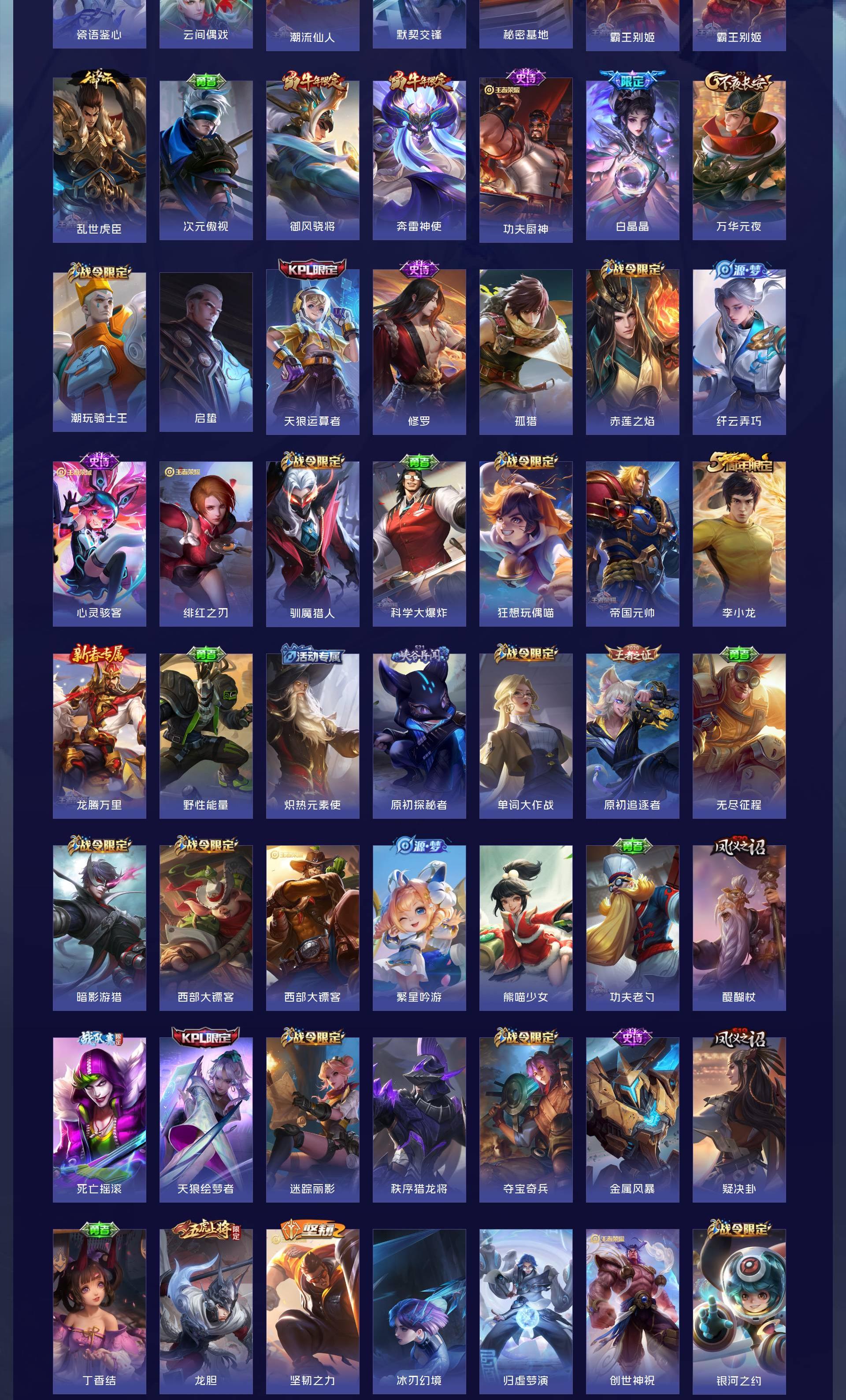V10 皮肤563 英雄129 绝世王者 荣耀典藏8 珍品无双1 珍品传说2 传说63 其他皮肤493