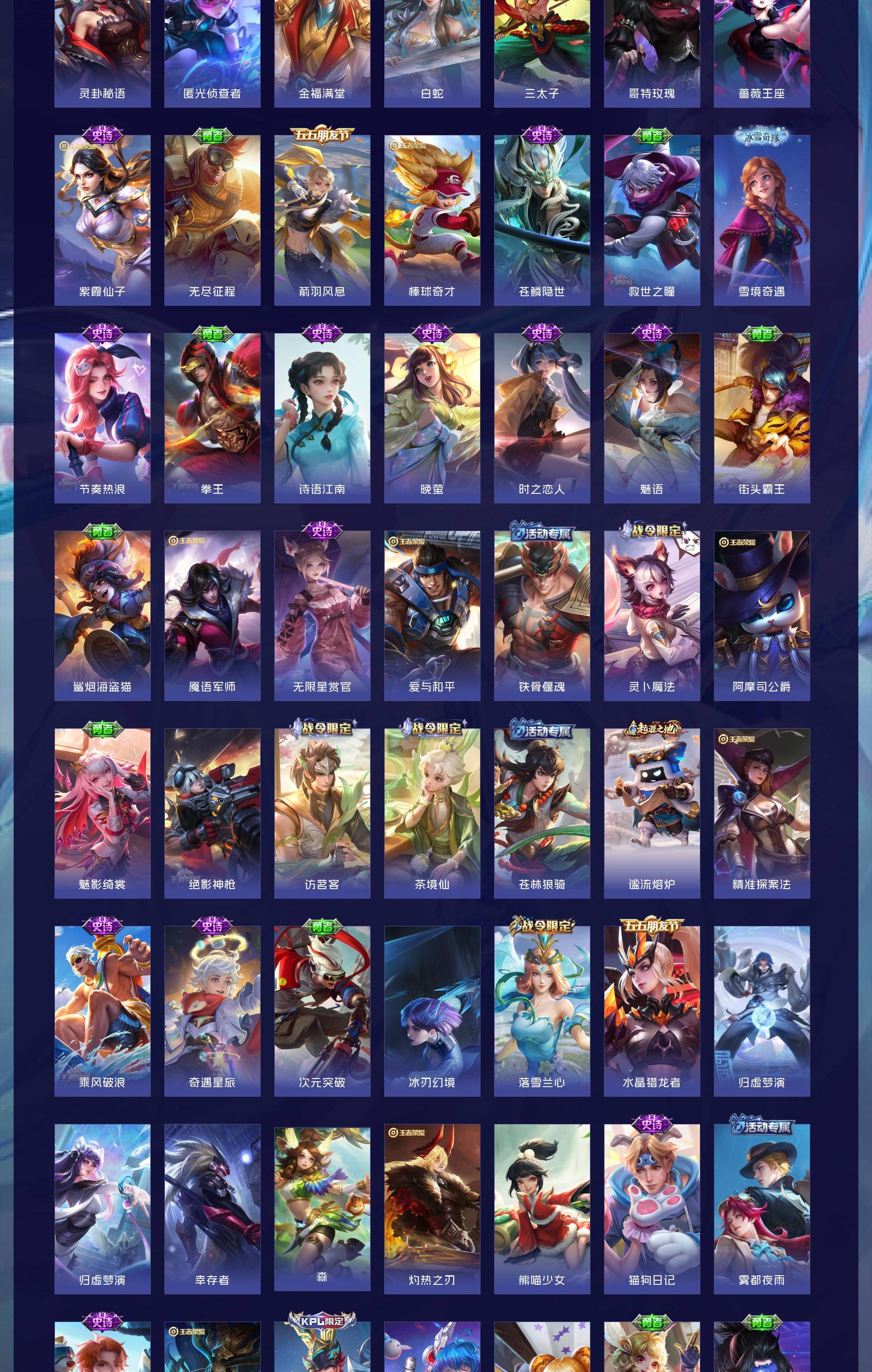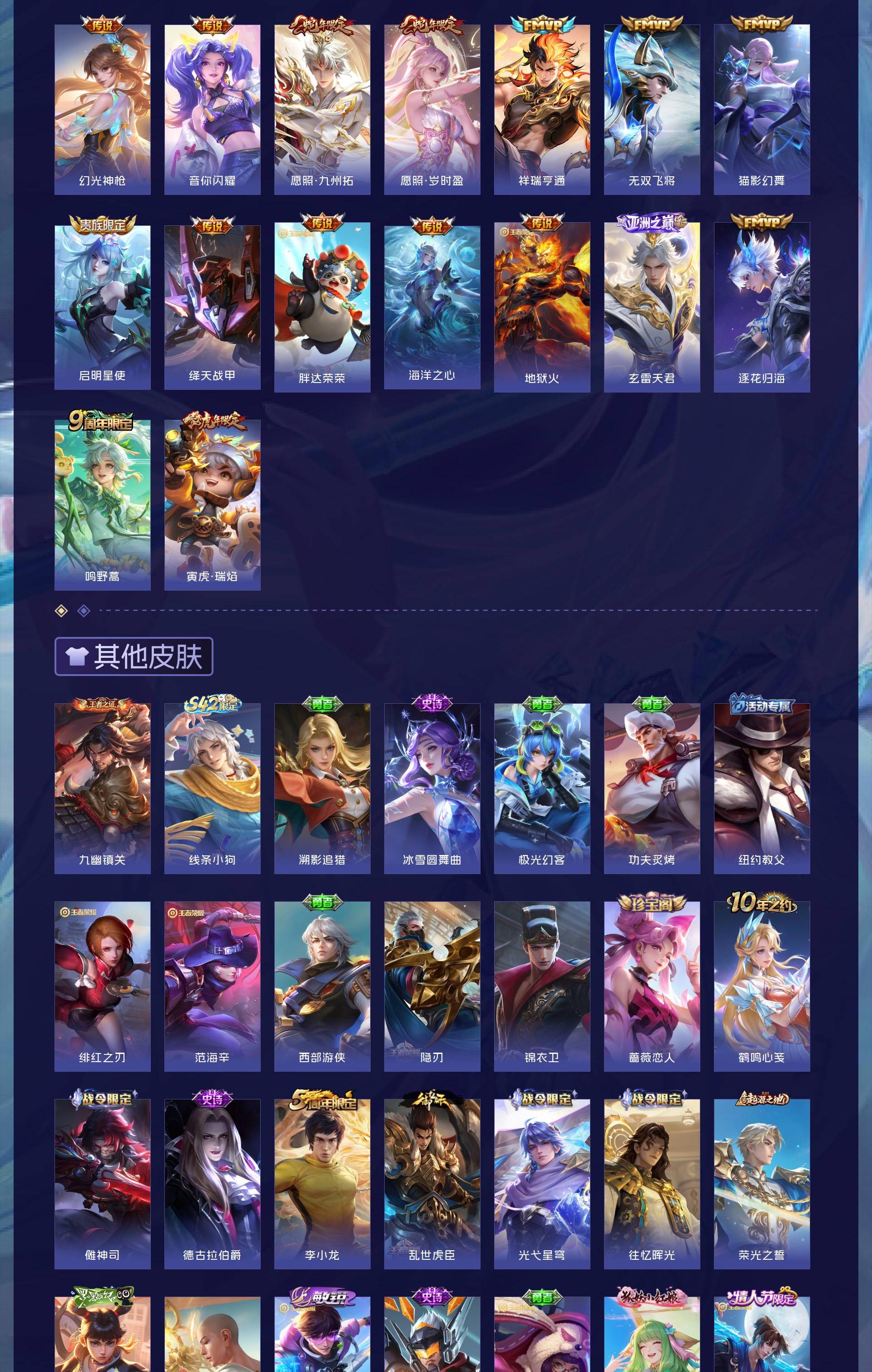 V8 皮肤280 英雄128 永恒钻石 荣耀典藏2 无双皮肤1 珍品传说3 传说23 其他皮肤256