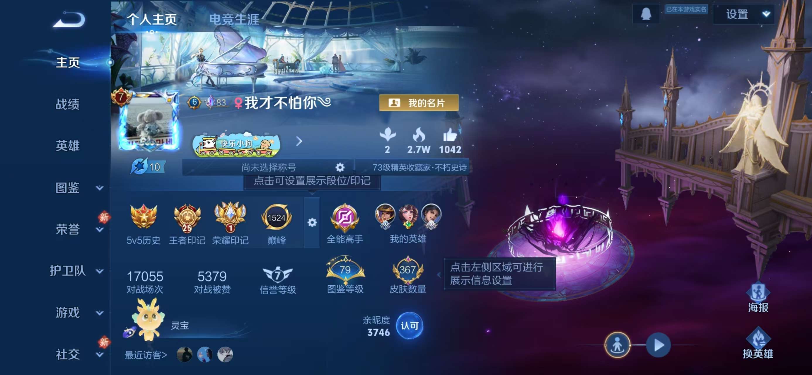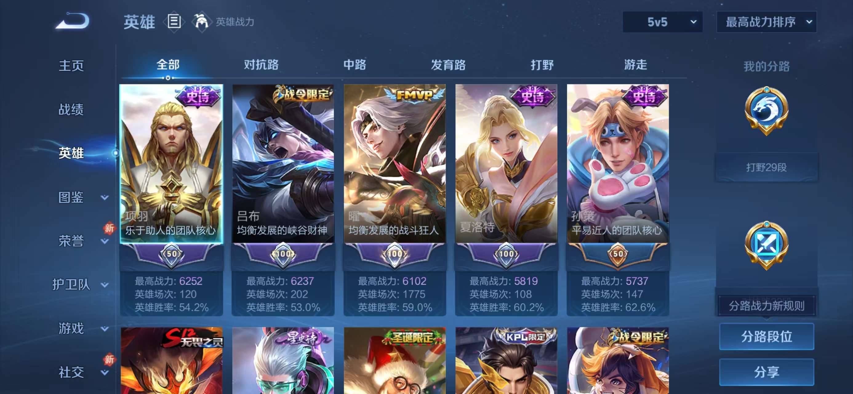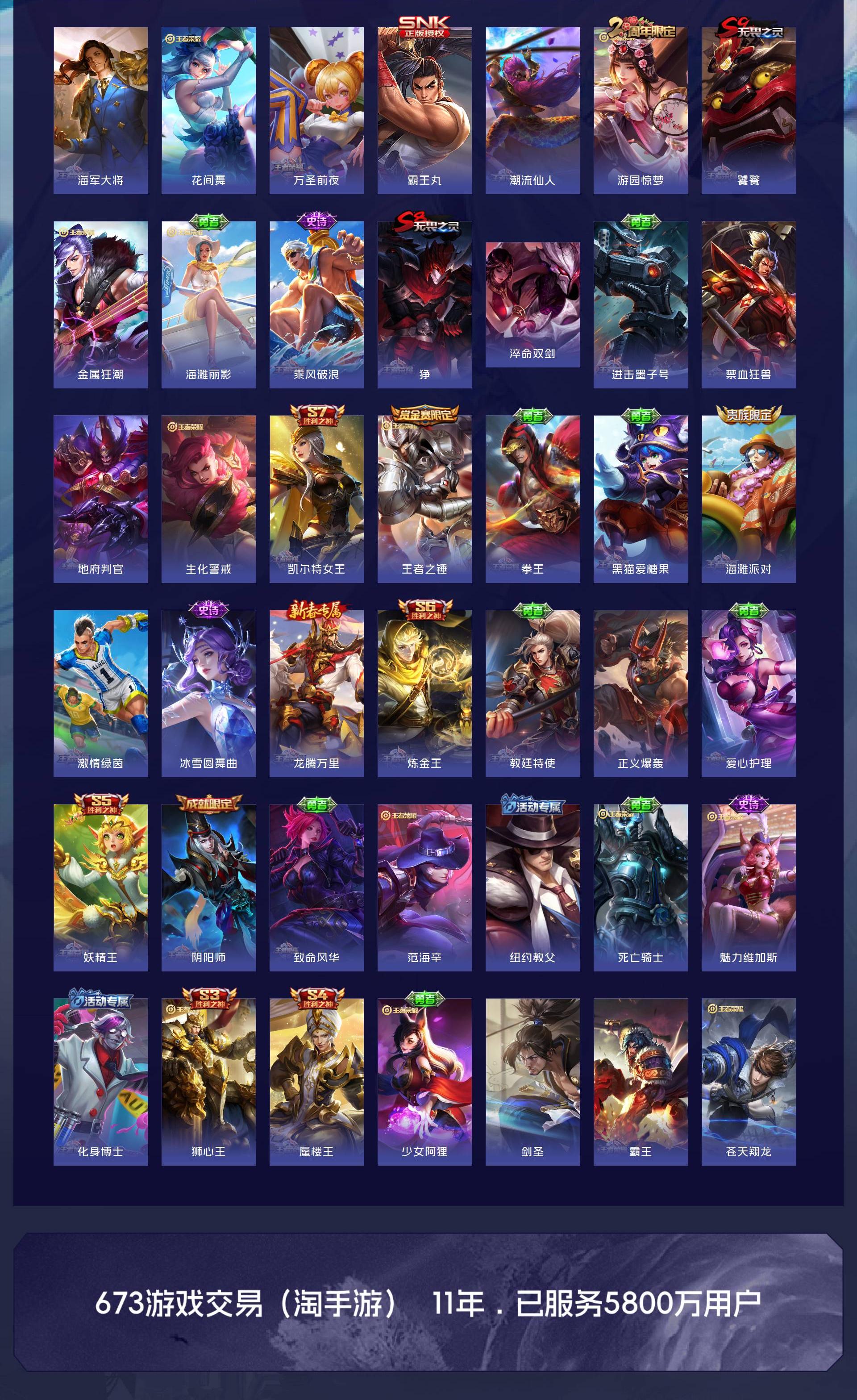 安卓QQ/非凡王者/367皮肤/129英雄/2典藏/0珍品无双/0无双/0珍品传说/6传说/103史
