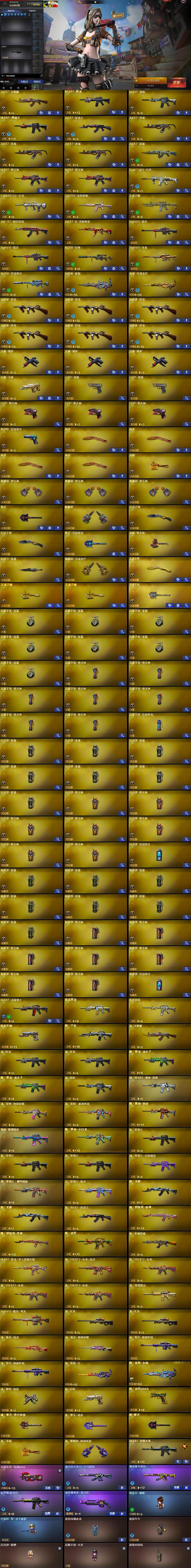 【热门武器】:QBZ03-金色蔷薇,Scar Light-白虎,M200-幻神,M200-竞技荣光,M4A1-黑骑士,汤姆逊-烈龙*6,加特林-炼狱,斯泰尔-蝴蝶,USP-雷暴*2,COP-堕天神*3,沙鹰-修罗*3,金刚伞