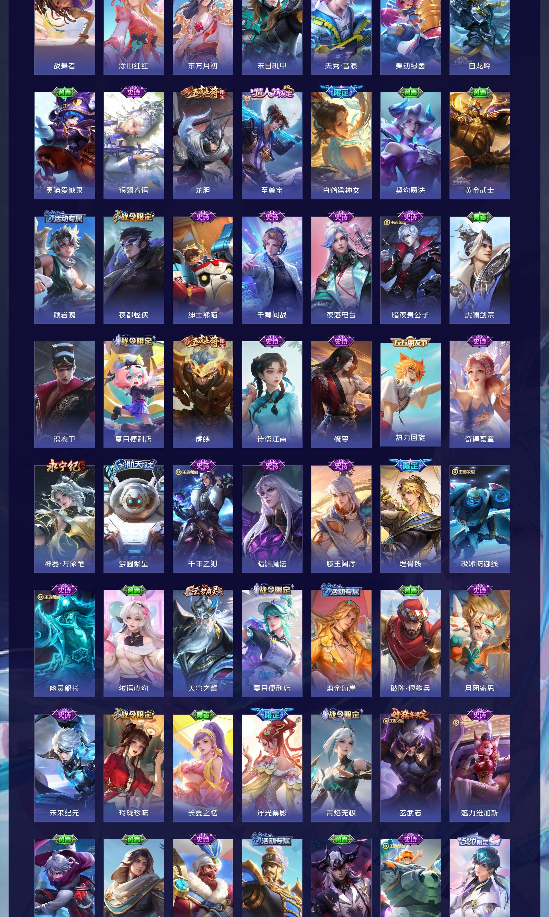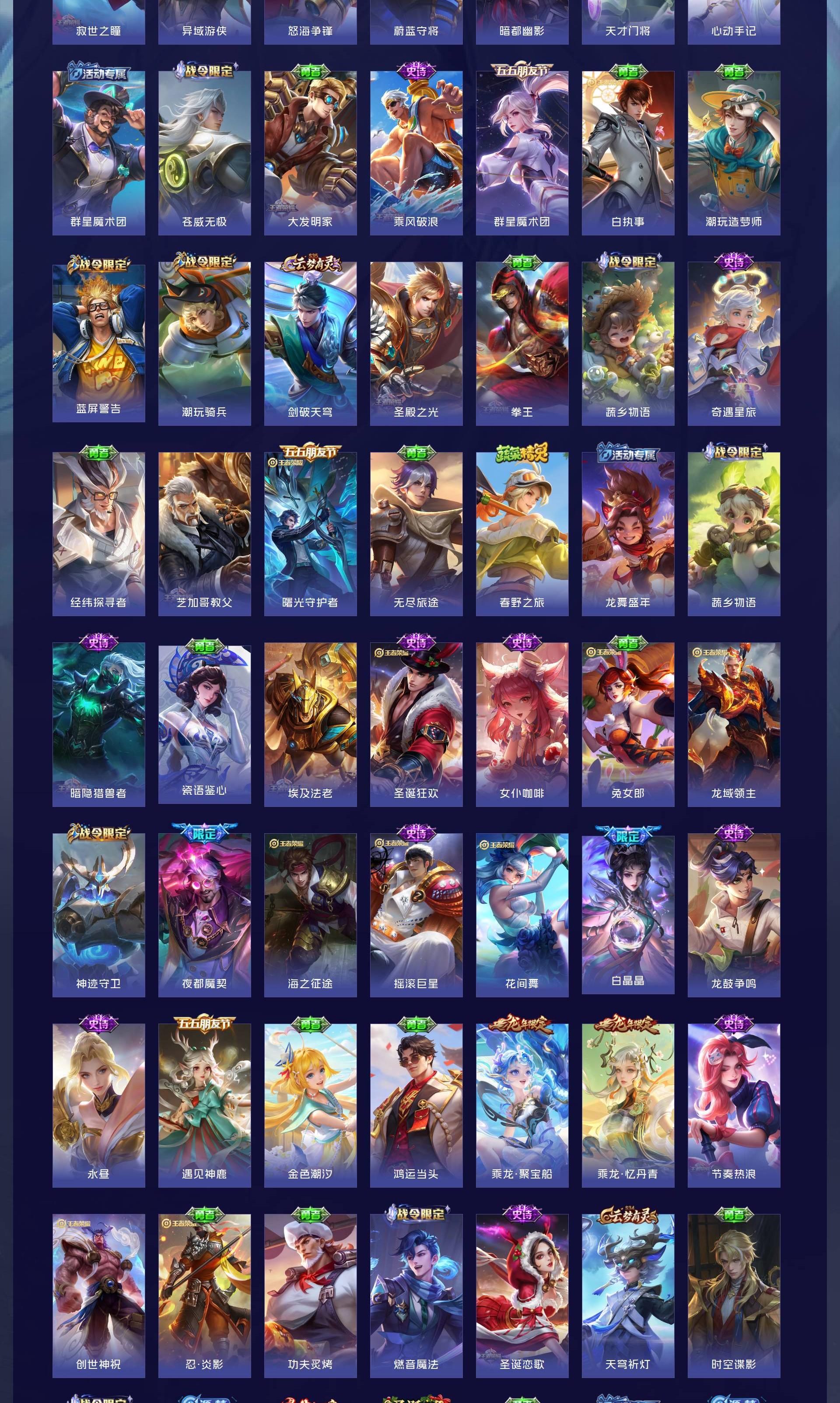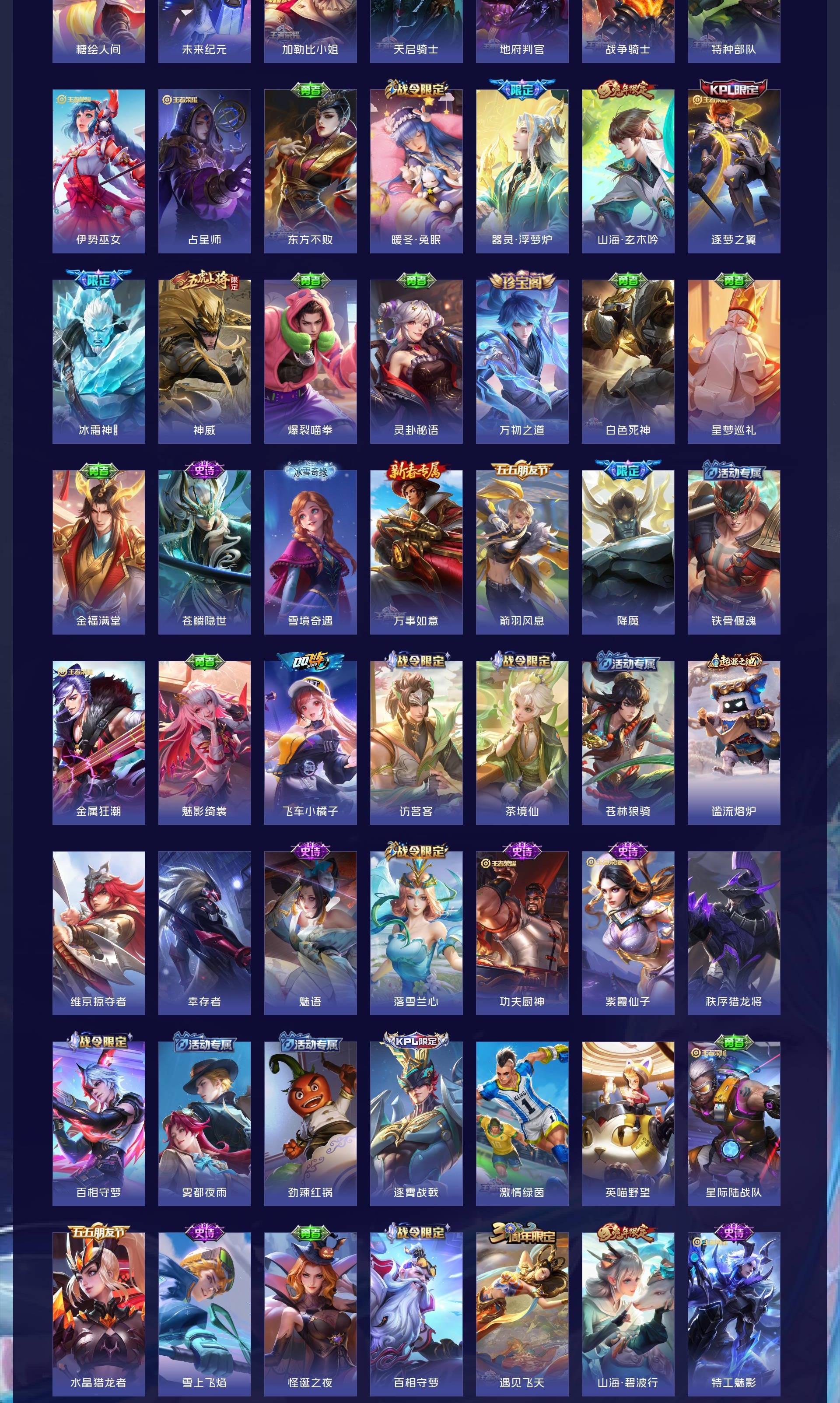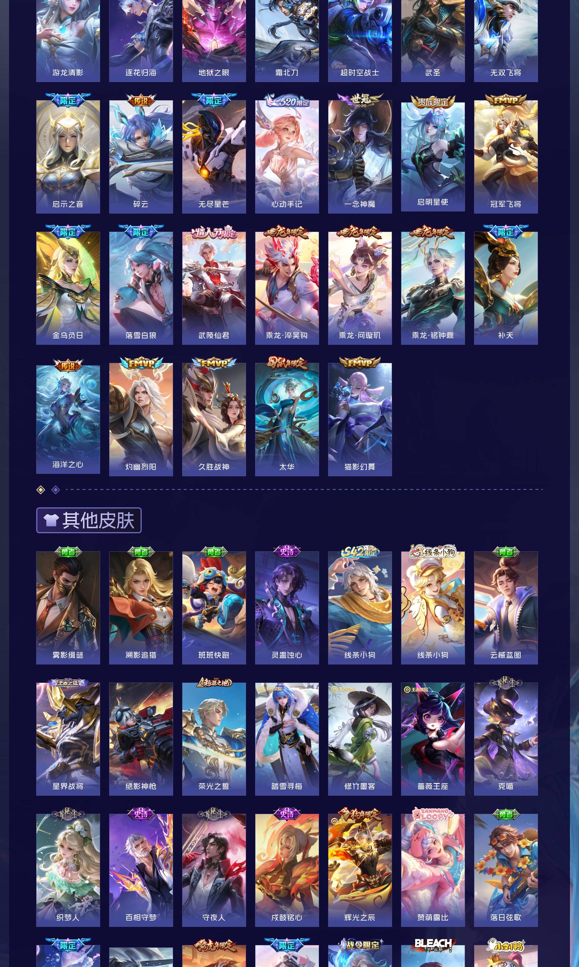 V10 皮肤504 英雄129 至尊星耀 荣耀典藏4 珍品无双1 无双皮肤6 珍品传说9 传说68 其他皮肤422