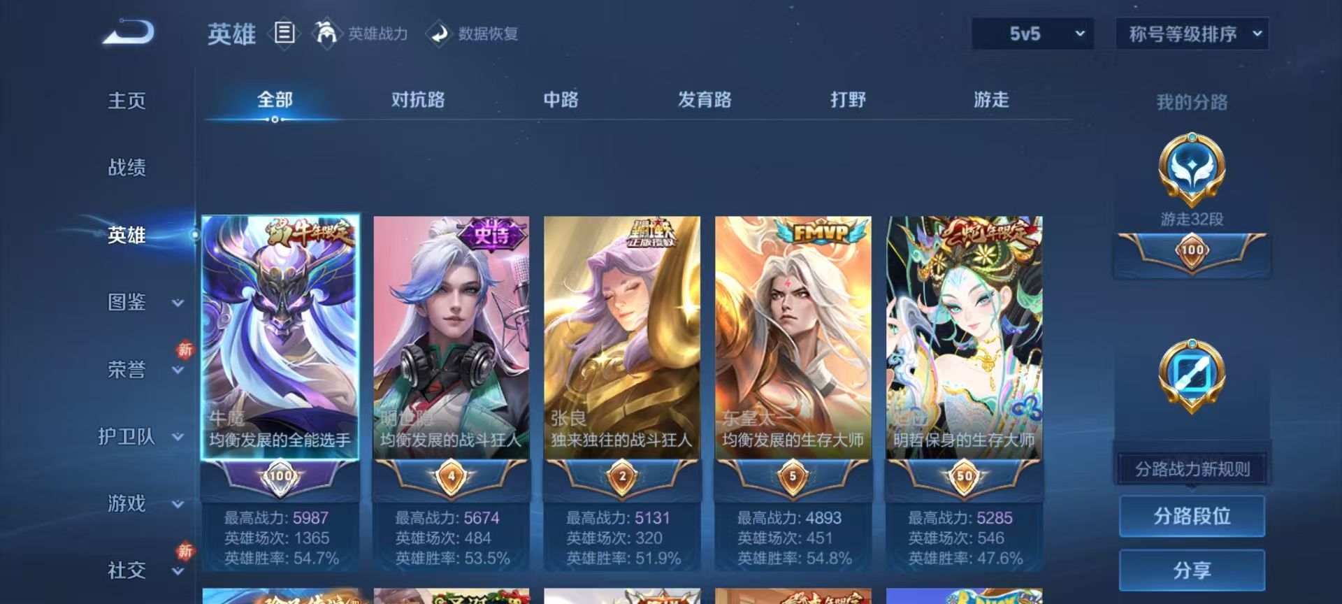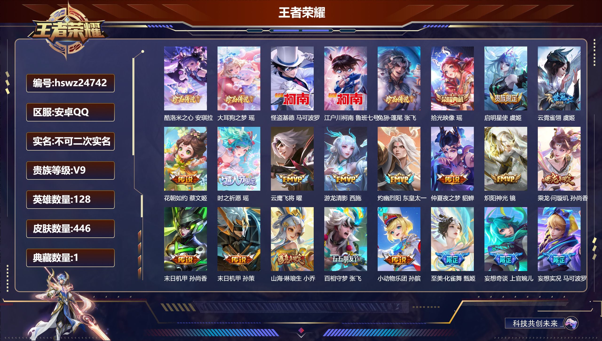 安卓QQ/至尊星耀/446皮肤/128英雄/1典藏/0珍品无双/0无双/5珍品传说/37传说/139