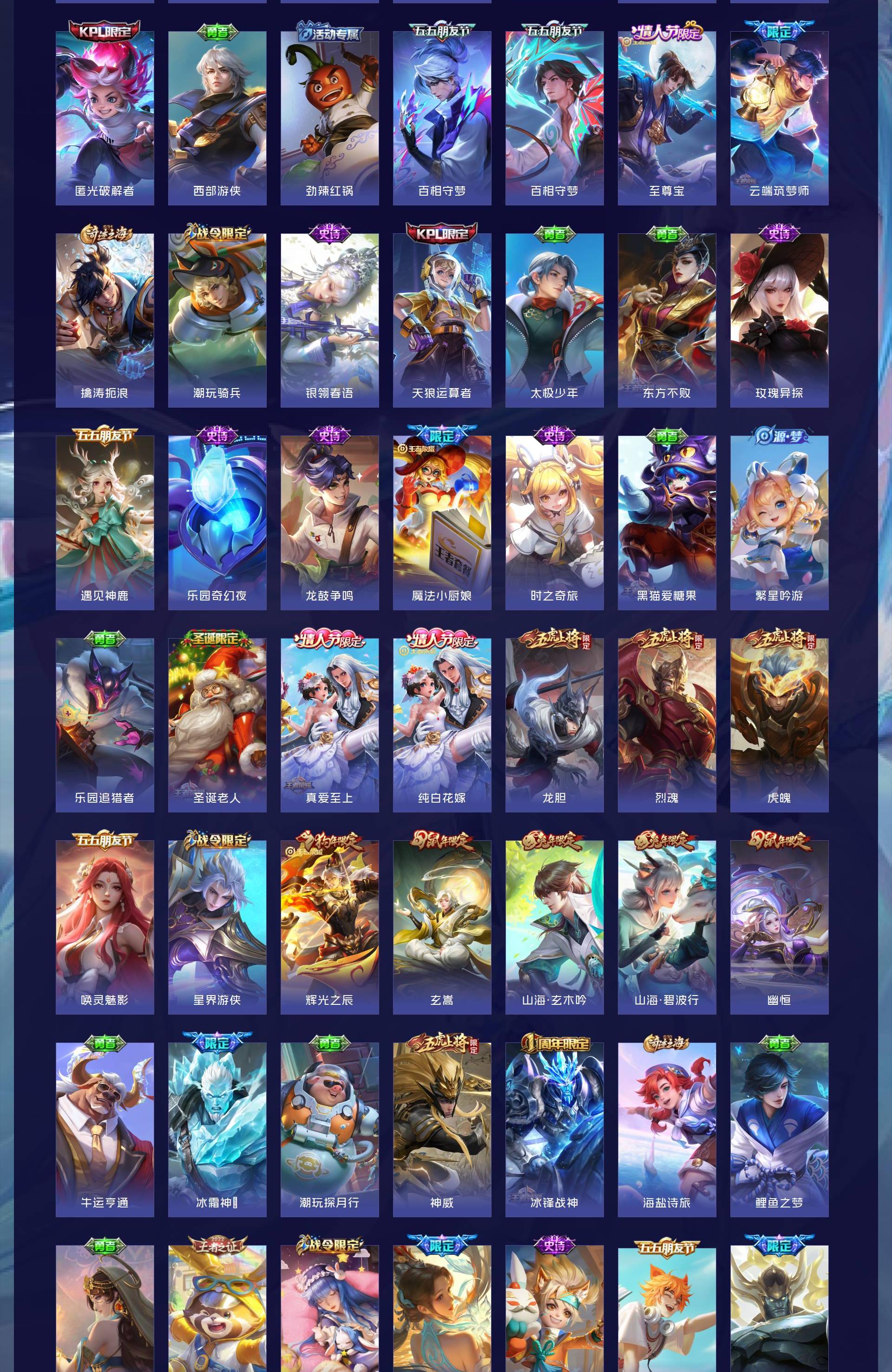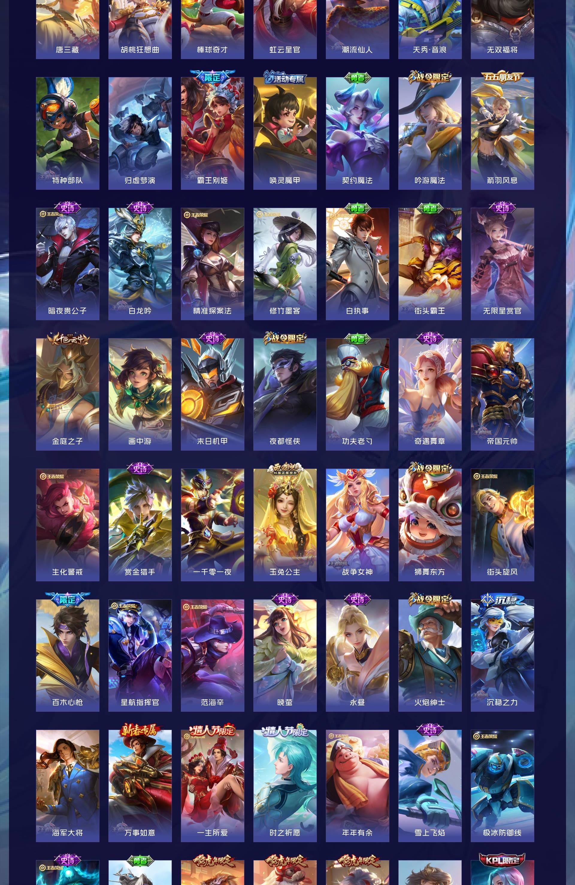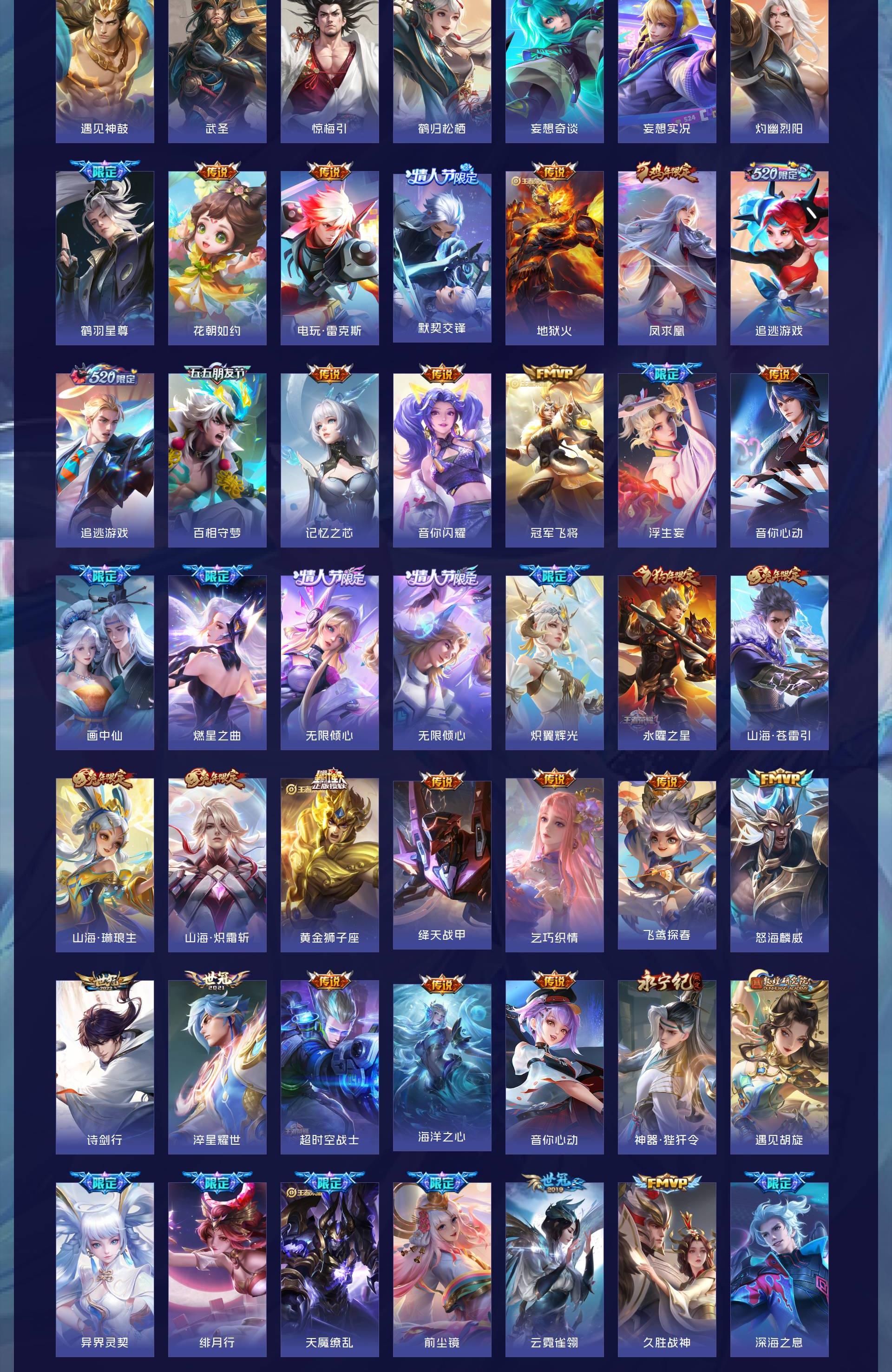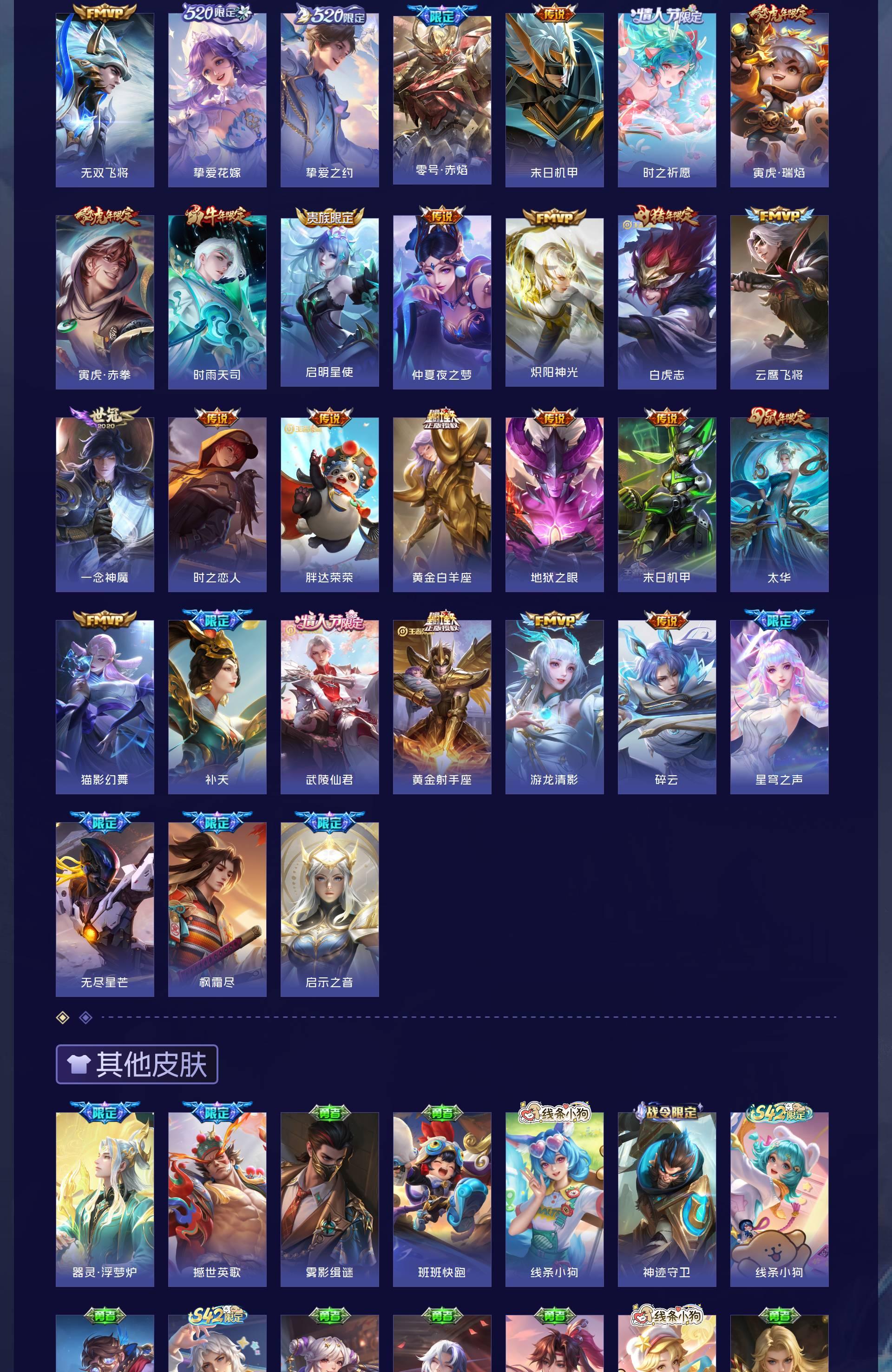 V10 皮肤581 英雄129 绝世王者 荣耀典藏5 无双皮肤5 传说95 其他皮肤473