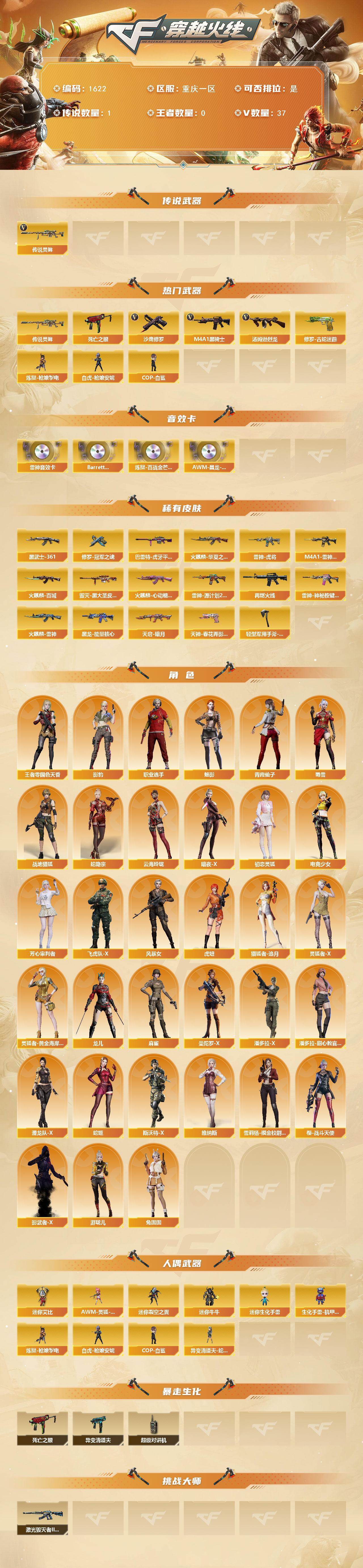 重庆一区-36V-0王者武器数-0炫金武器数