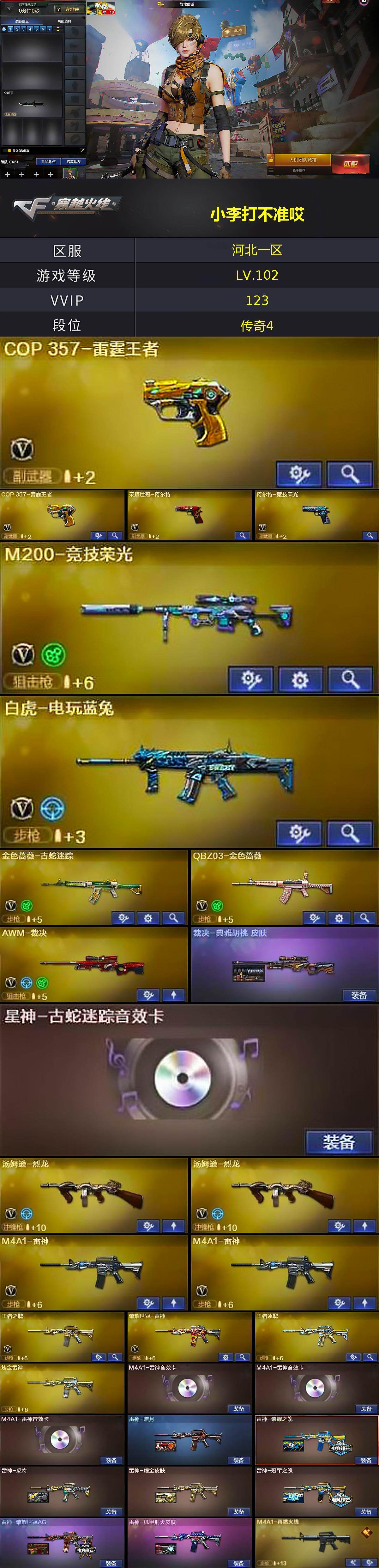 【热门武器】:QBZ03-金色蔷薇,金色蔷薇-古蛇迷踪,修罗-古蛇迷踪,M200-竞技荣光,荣耀世冠-火麒麟,荣耀世冠-雷神,白虎-电玩蓝兔,QBZ03-街机,荣耀世冠-柯尔特,M4A1-黑骑士,汤姆逊-烈龙*2,沙鹰-修罗*4,荣耀世冠-龙啸