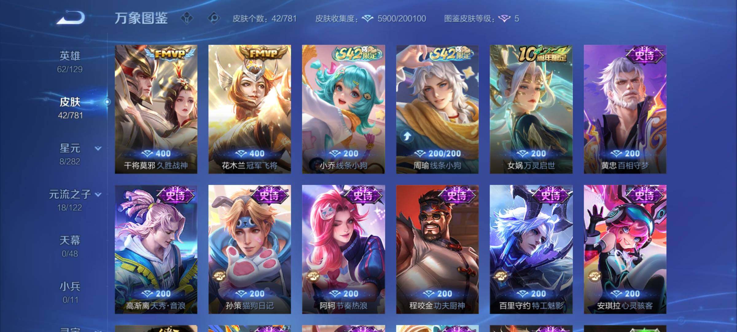 可换绑【特价小号】1星传说,2王者印记,五级铭文30,可二次KK9160,安卓Q-V2-42皮肤-2传说-15史诗【传说皮肤】:干将莫邪久胜战神,花木兰冠军飞将【限定皮肤】:狄仁杰阴阳师【星元皮肤】:孙尚香未来机甲