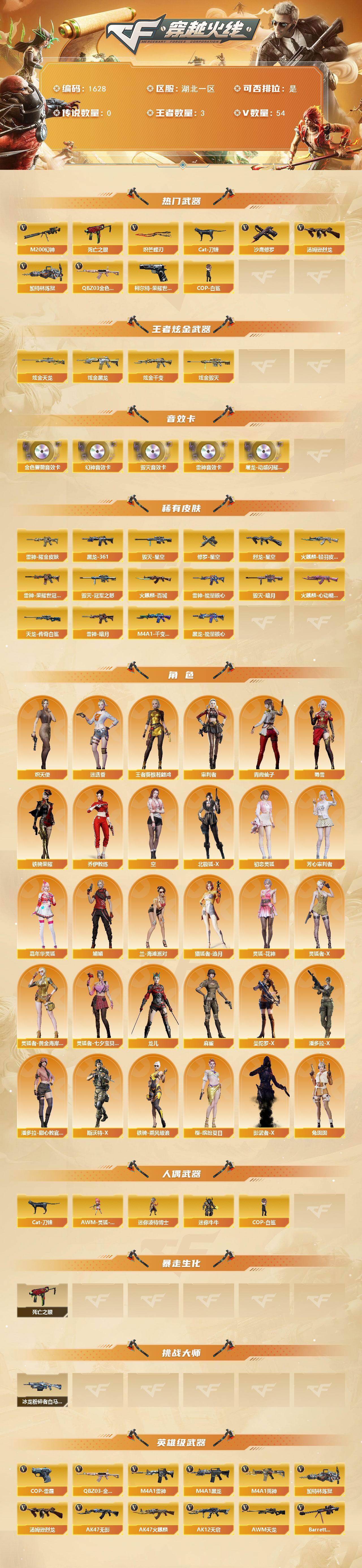 湖北一区-57V-3王者武器数-5炫金武器数【热门武器】:QBZ03-金色蔷