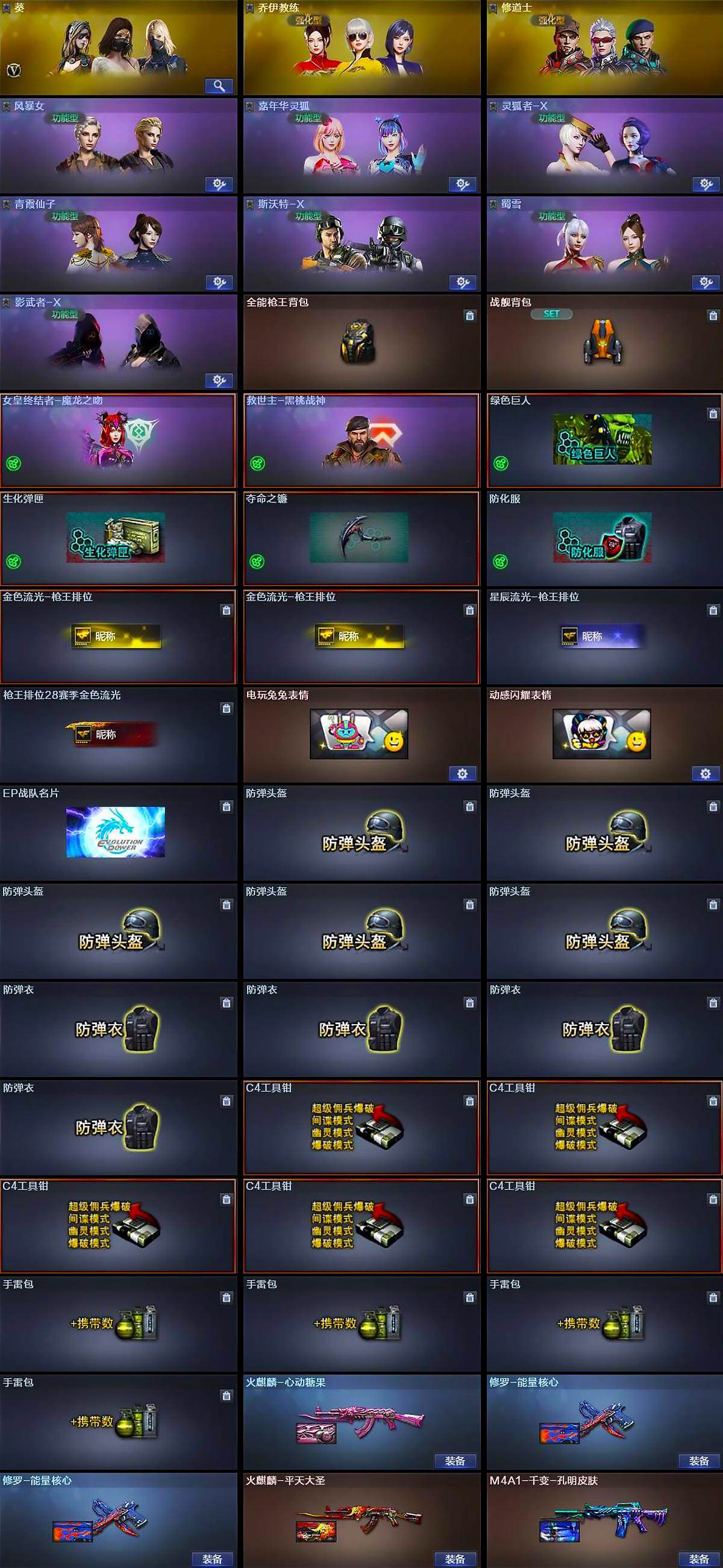 【皮肤】:火麒麟-平天大圣,火麒麟-心动糖果,M4A1-千变-孔明皮肤,修罗-能量核心*2
