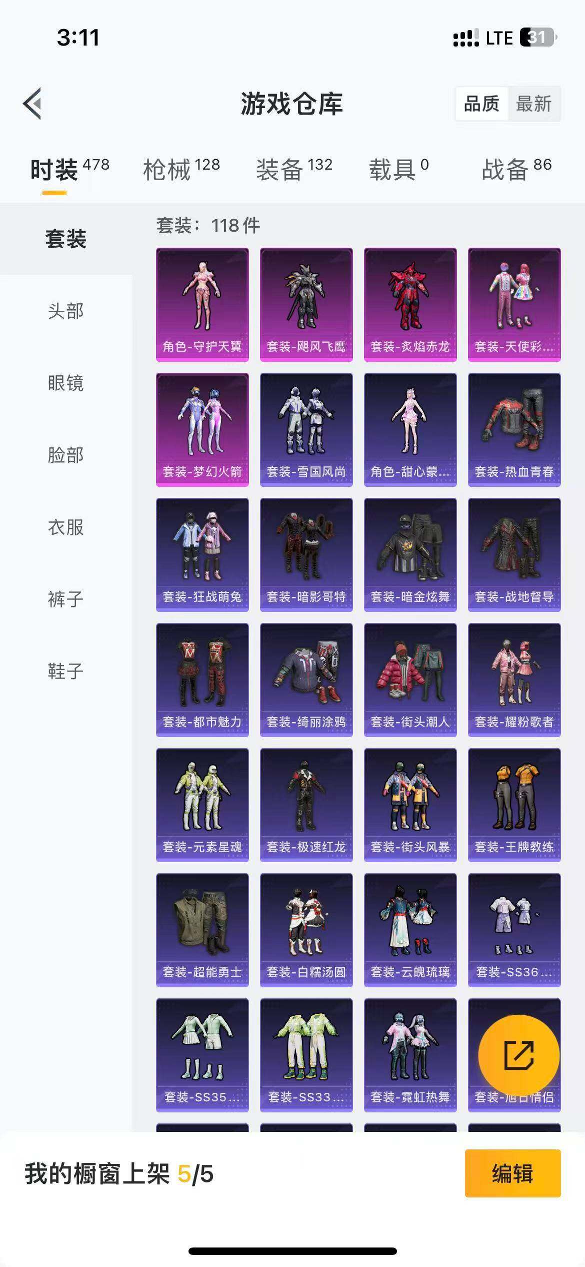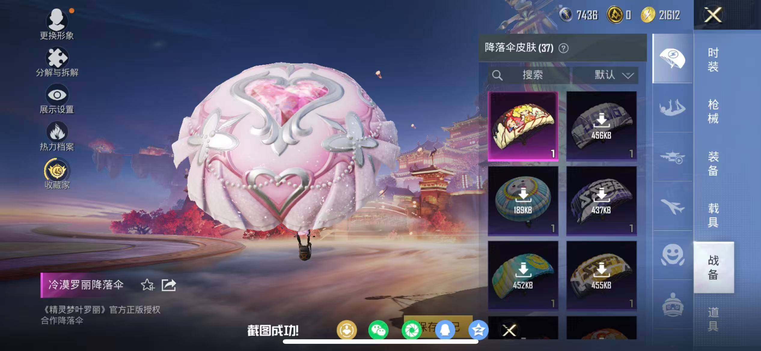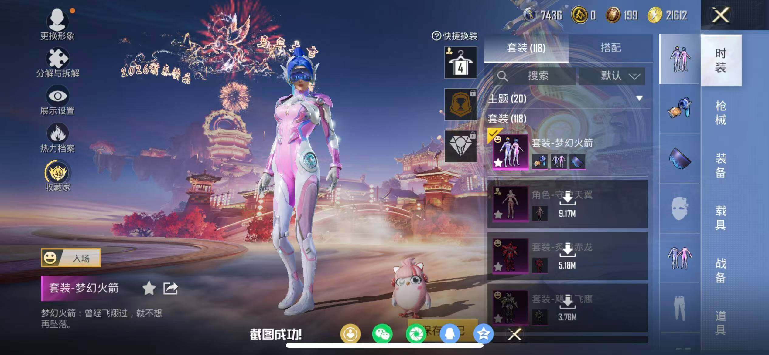 苹果 手Q-5粉装-1特效枪-0载具-0粉色飞行器-37214热力值-10王牌印记-118套装-128枪皮