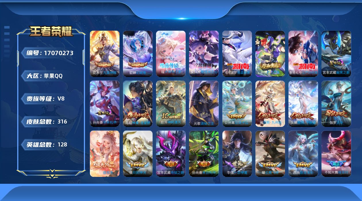 V8 皮肤316 英雄128 最强王者 荣耀典藏2 珍品传说5 传说21 其他皮肤290