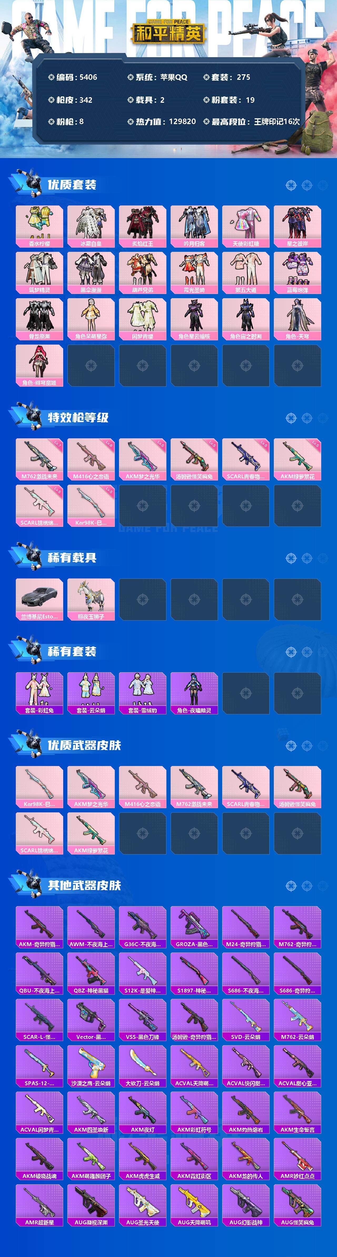 【5406】19粉装-8特效枪-2载具-129820热力值-16印记-275套