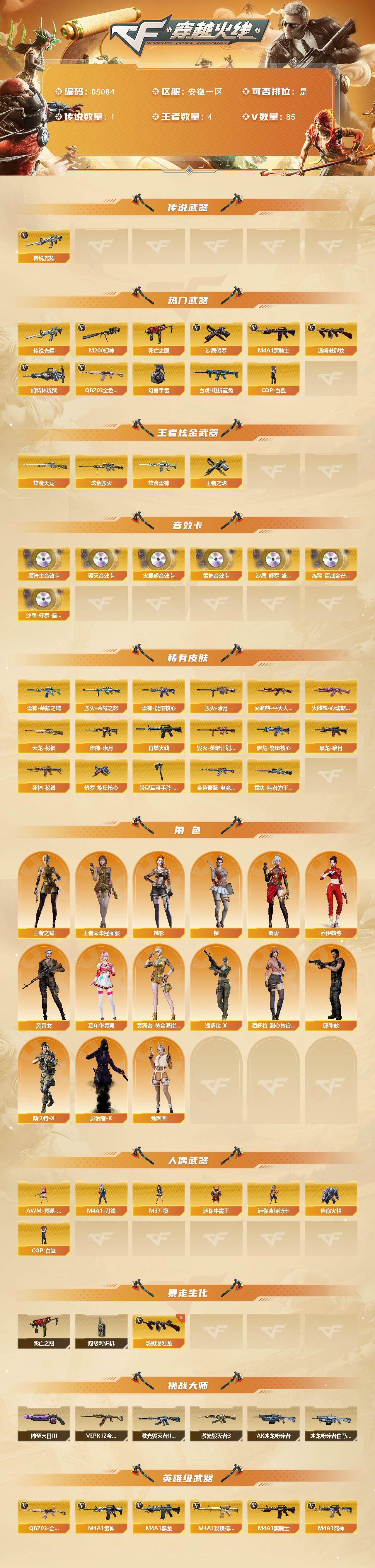 【C5084】安徽一区-88V-4王者武器数-3炫金武器数