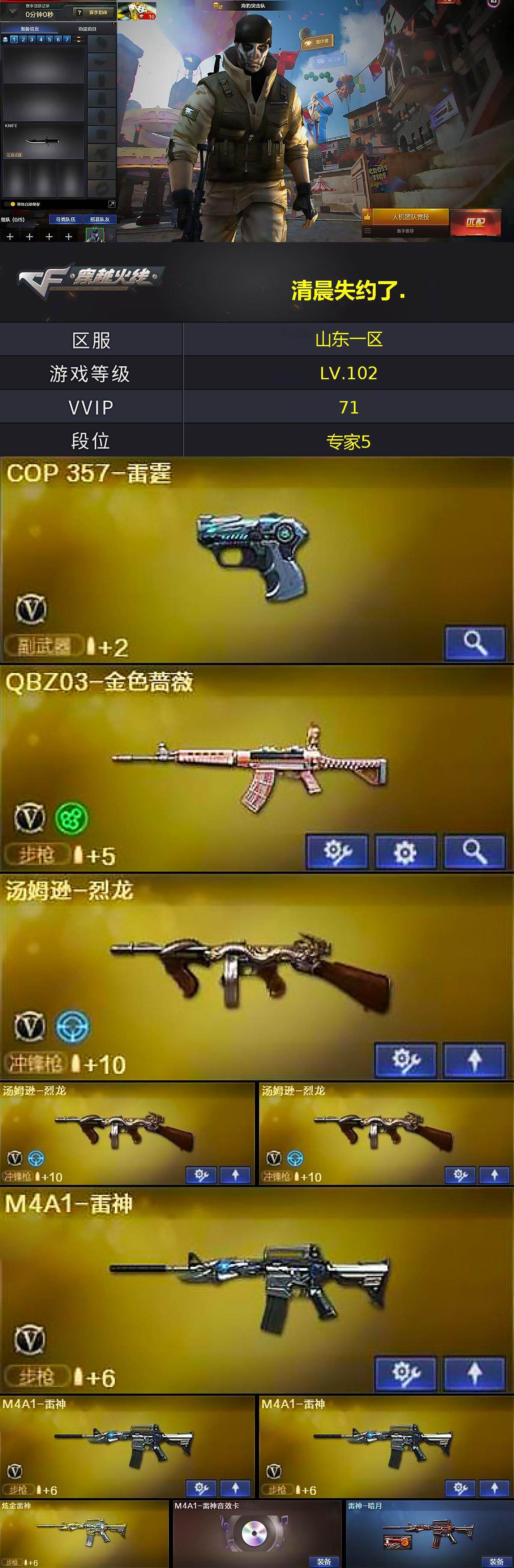 【热门武器】:QBZ03-金色蔷薇,死亡之眼,汤姆逊-烈龙*3,加特林-炼狱*4,沙鹰-修罗*5