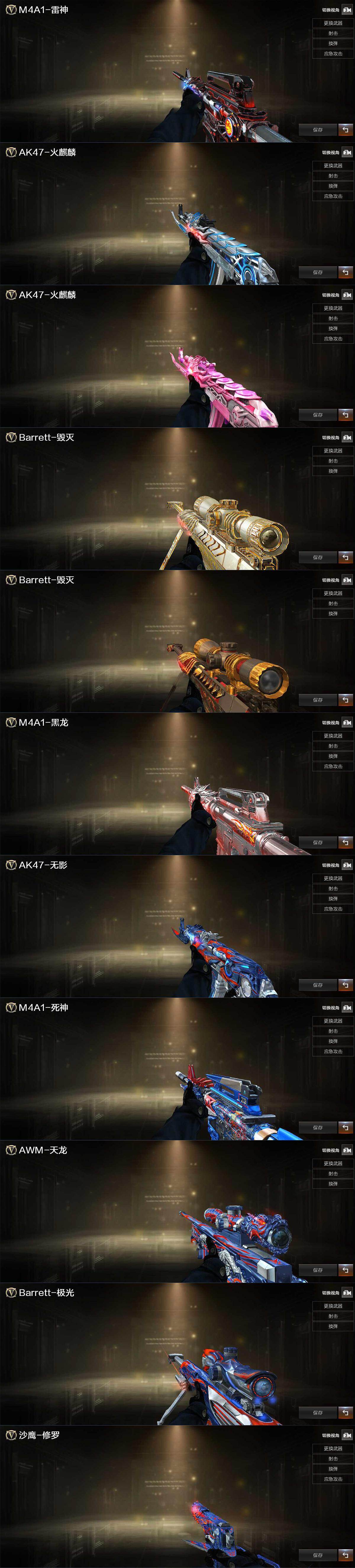 【音效卡】:AK47-火麒麟音效卡,M4A1-雷神音效卡,Barrett-毁灭音效卡