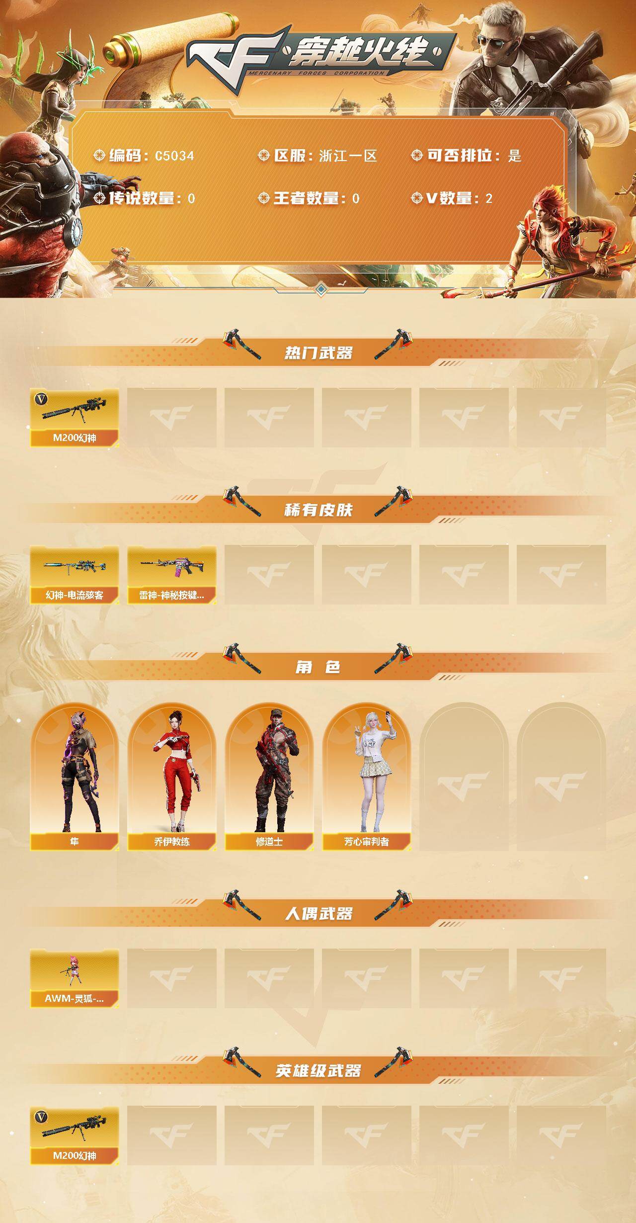 【C5034】浙江一区-2V-0王者武器数-0炫金武器数