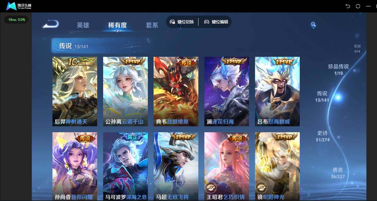 苹果Q-V7-最强王者段位-86英雄-87皮肤-1珍品传说-13传说-30史诗