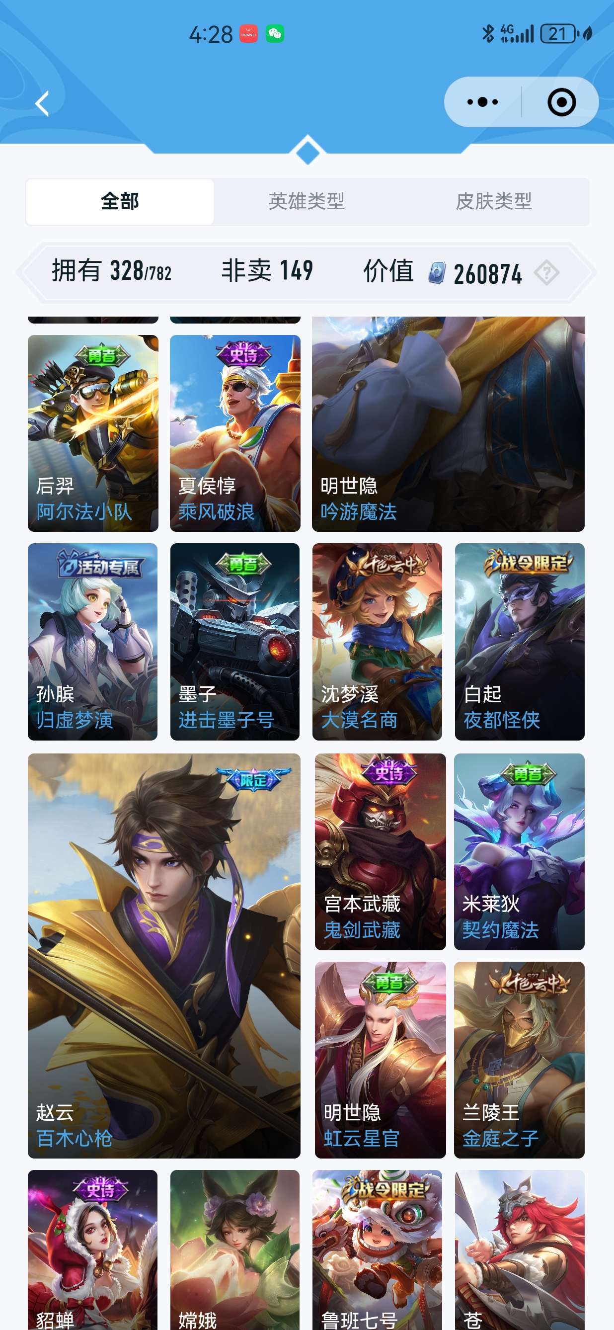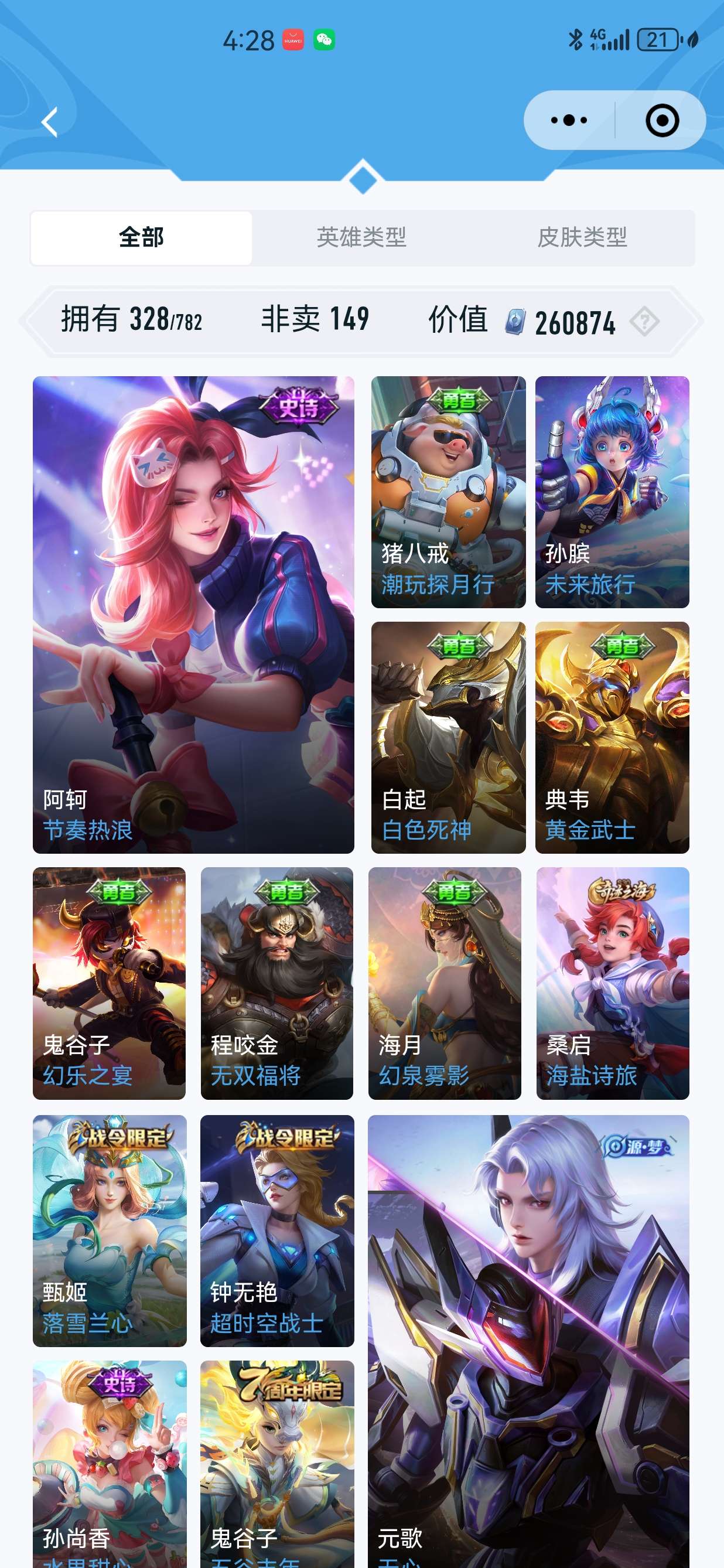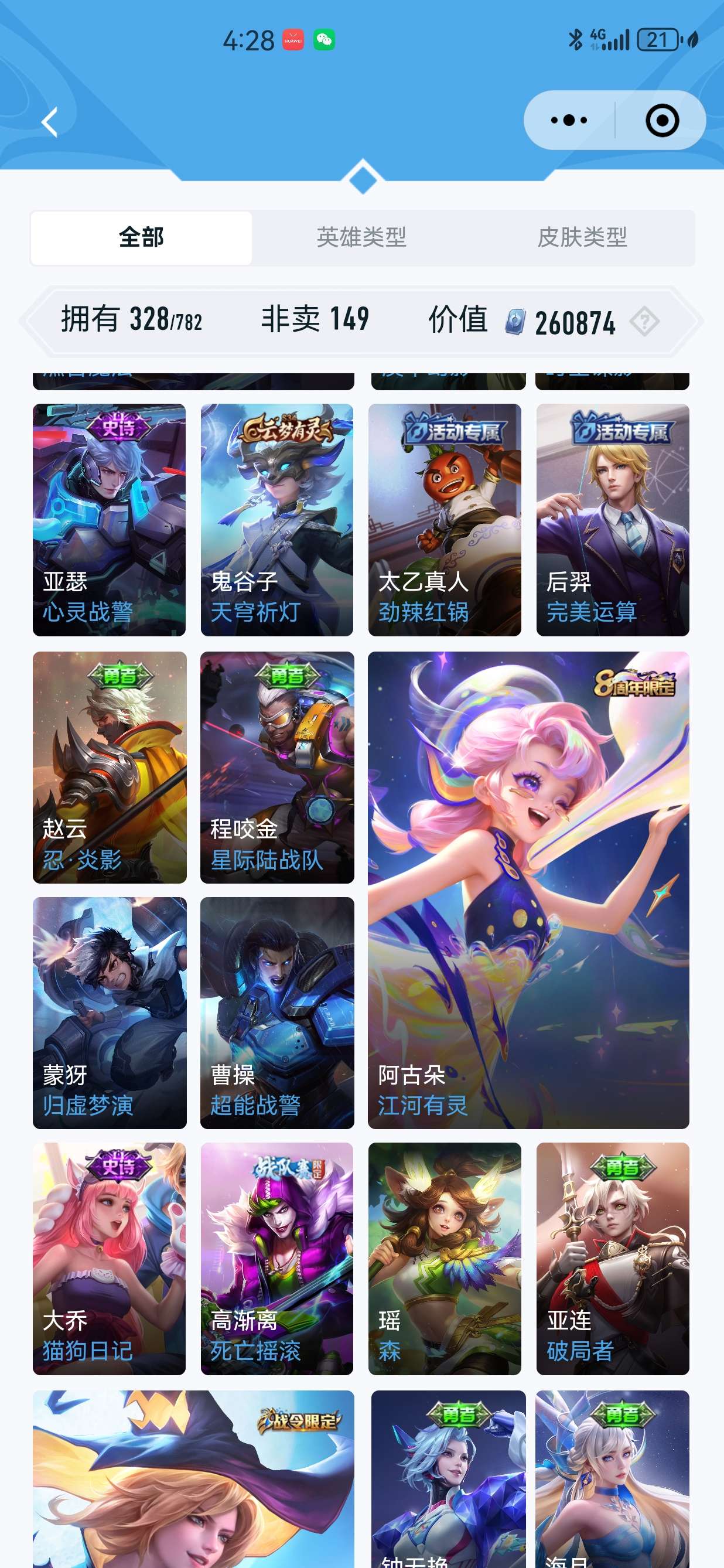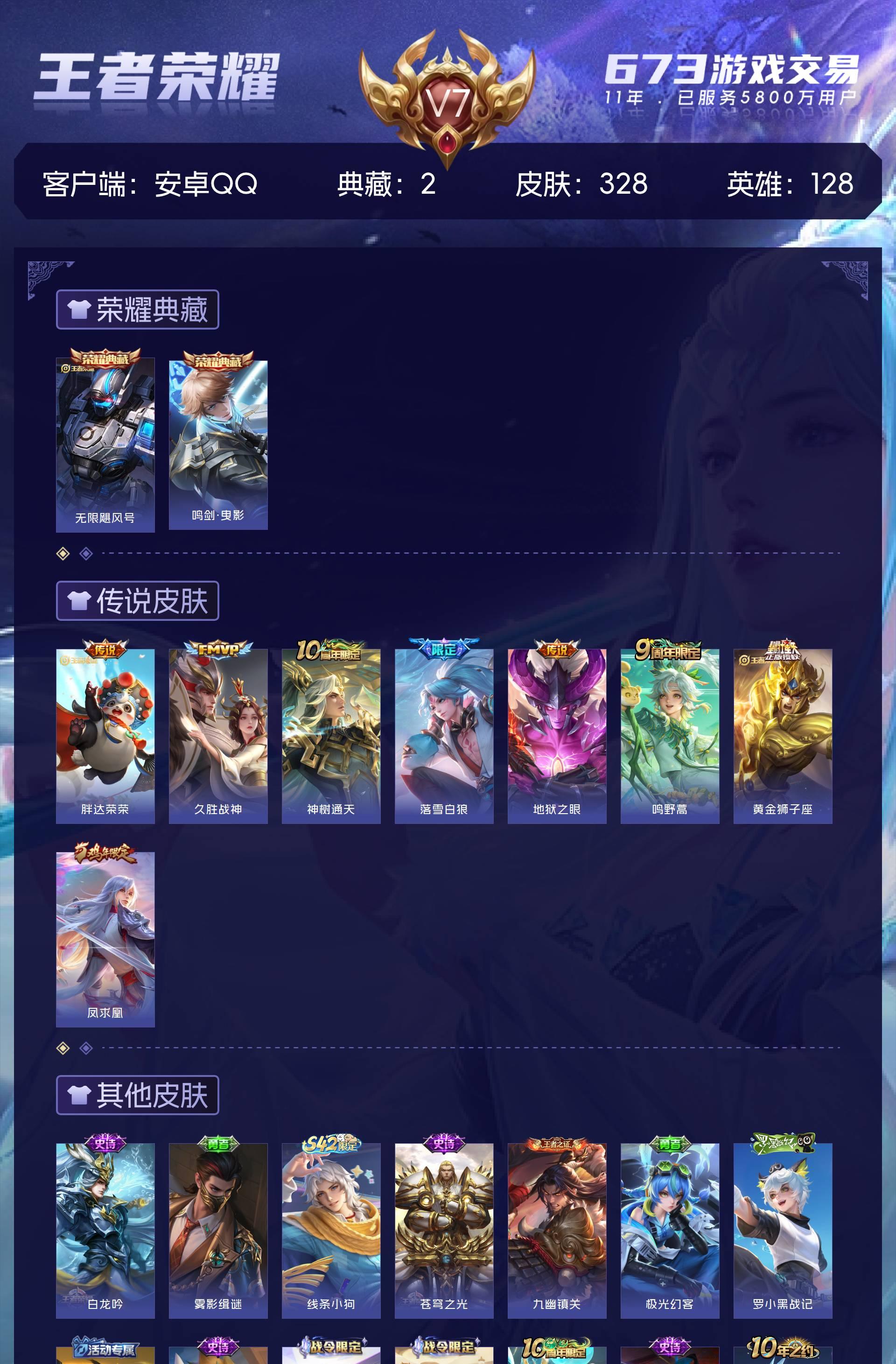 V7 皮肤328 英雄128 绝世王者 荣耀典藏2 传说8 其他皮肤323