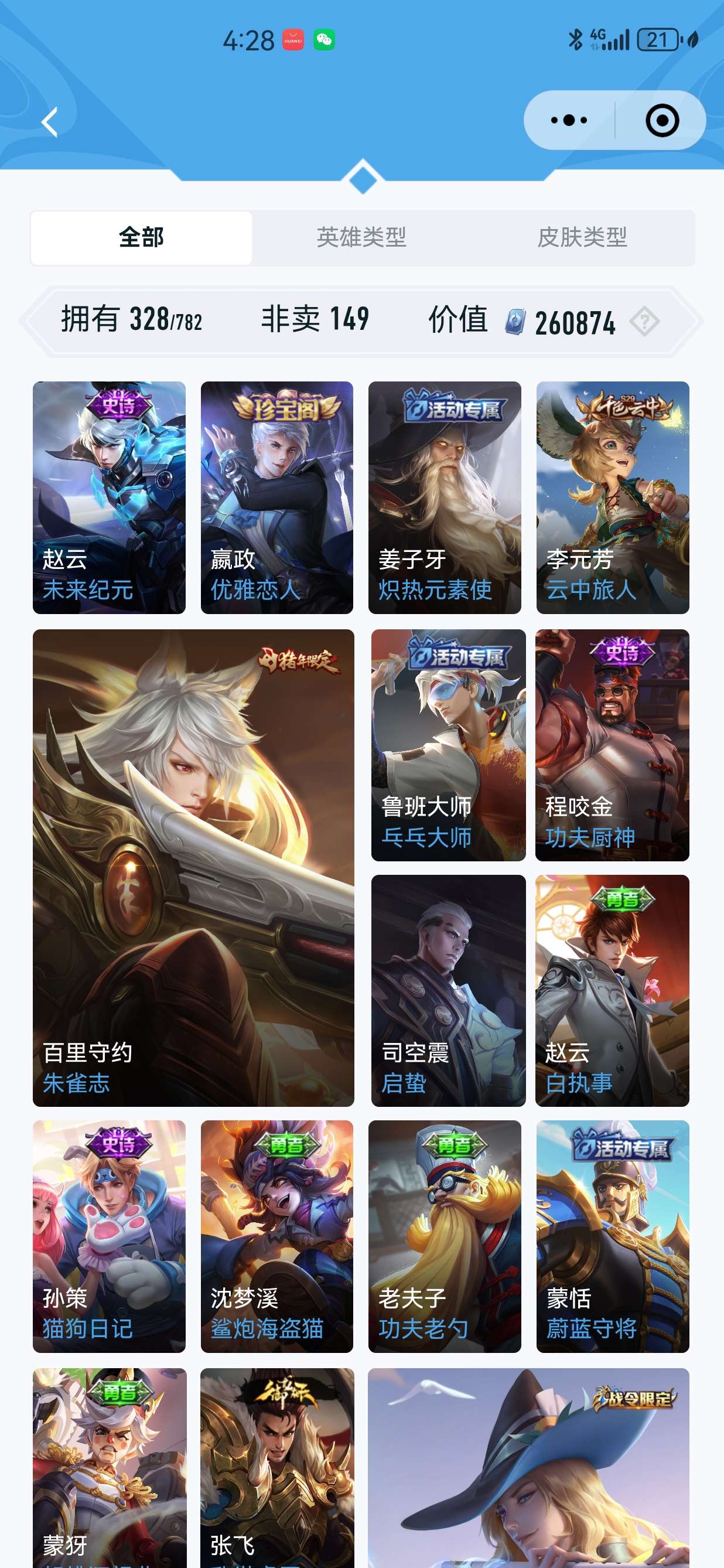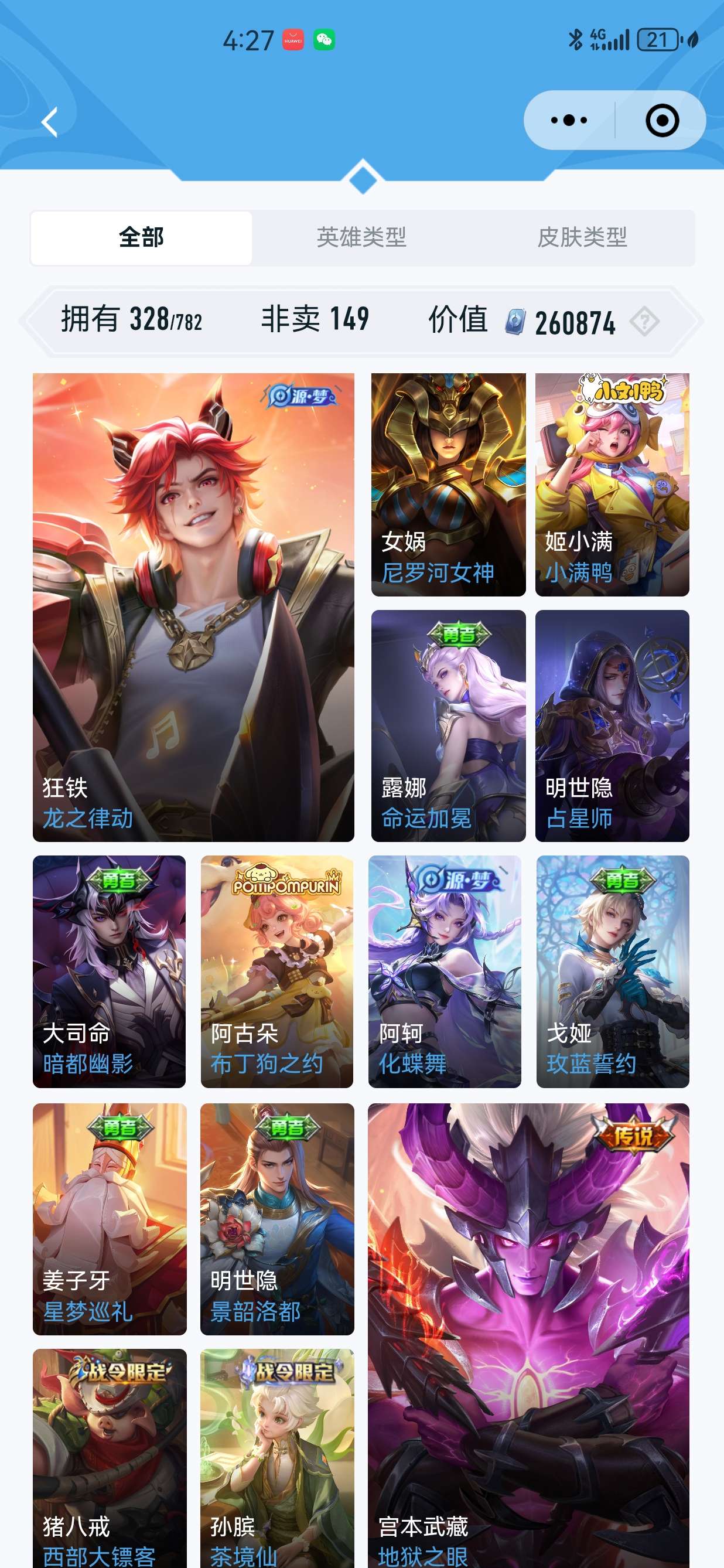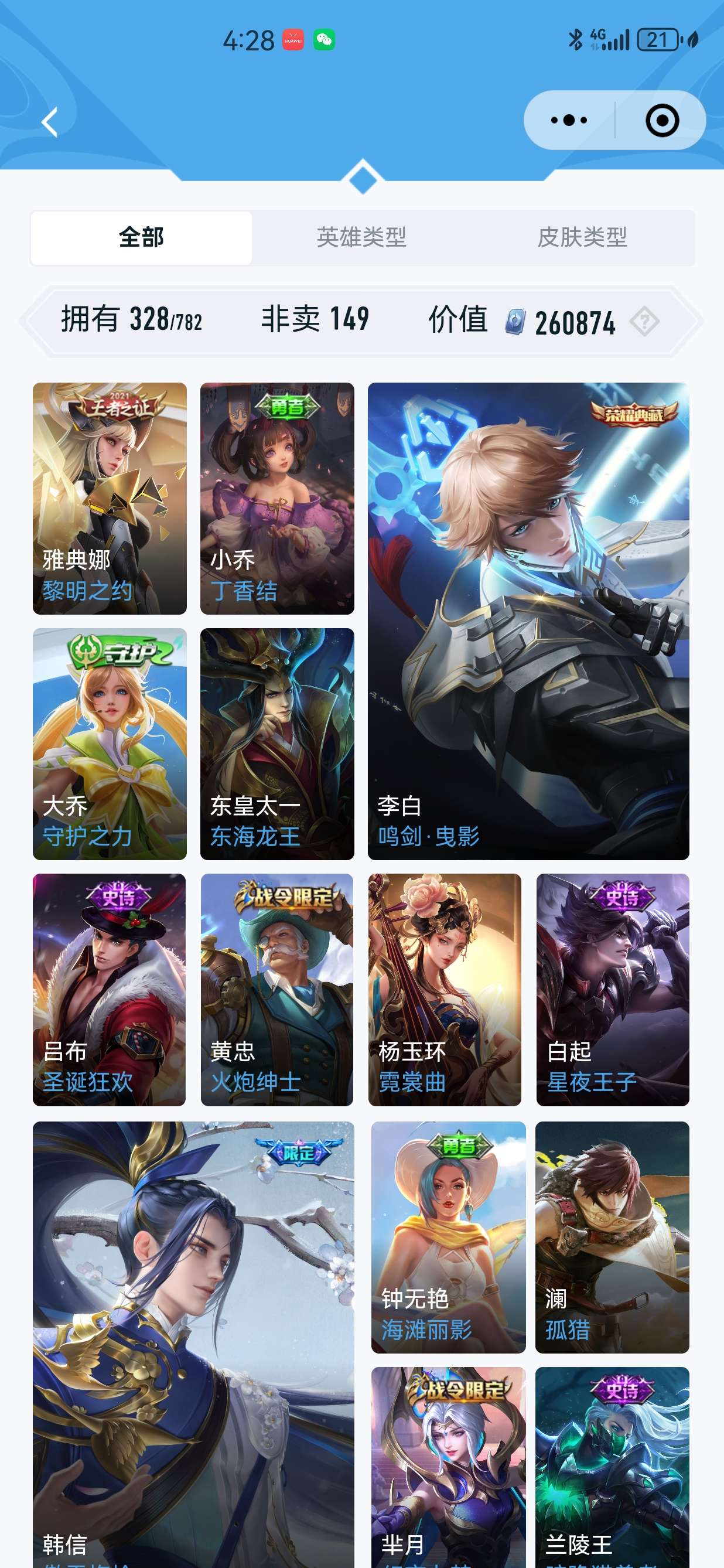 V7 皮肤328 英雄128 绝世王者 荣耀典藏2 传说8 其他皮肤323