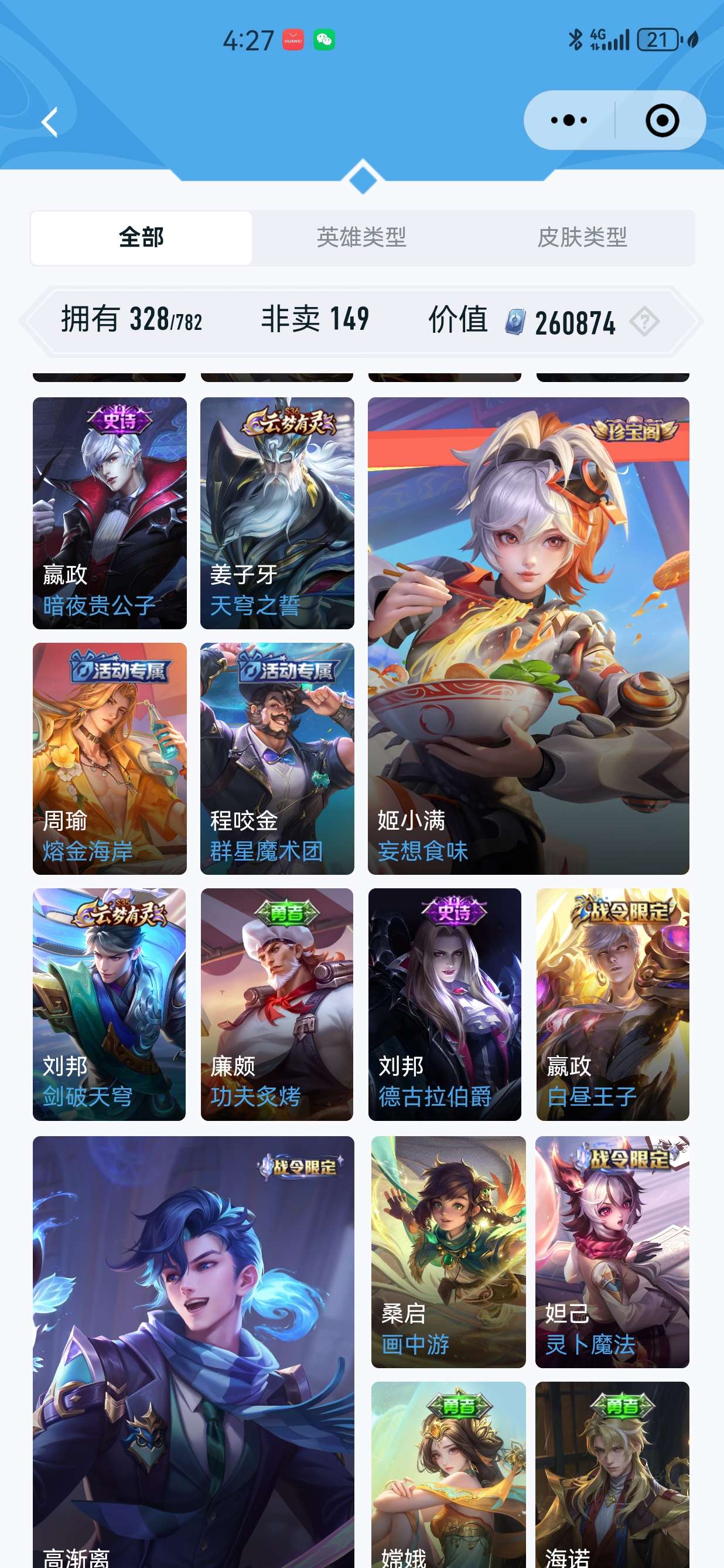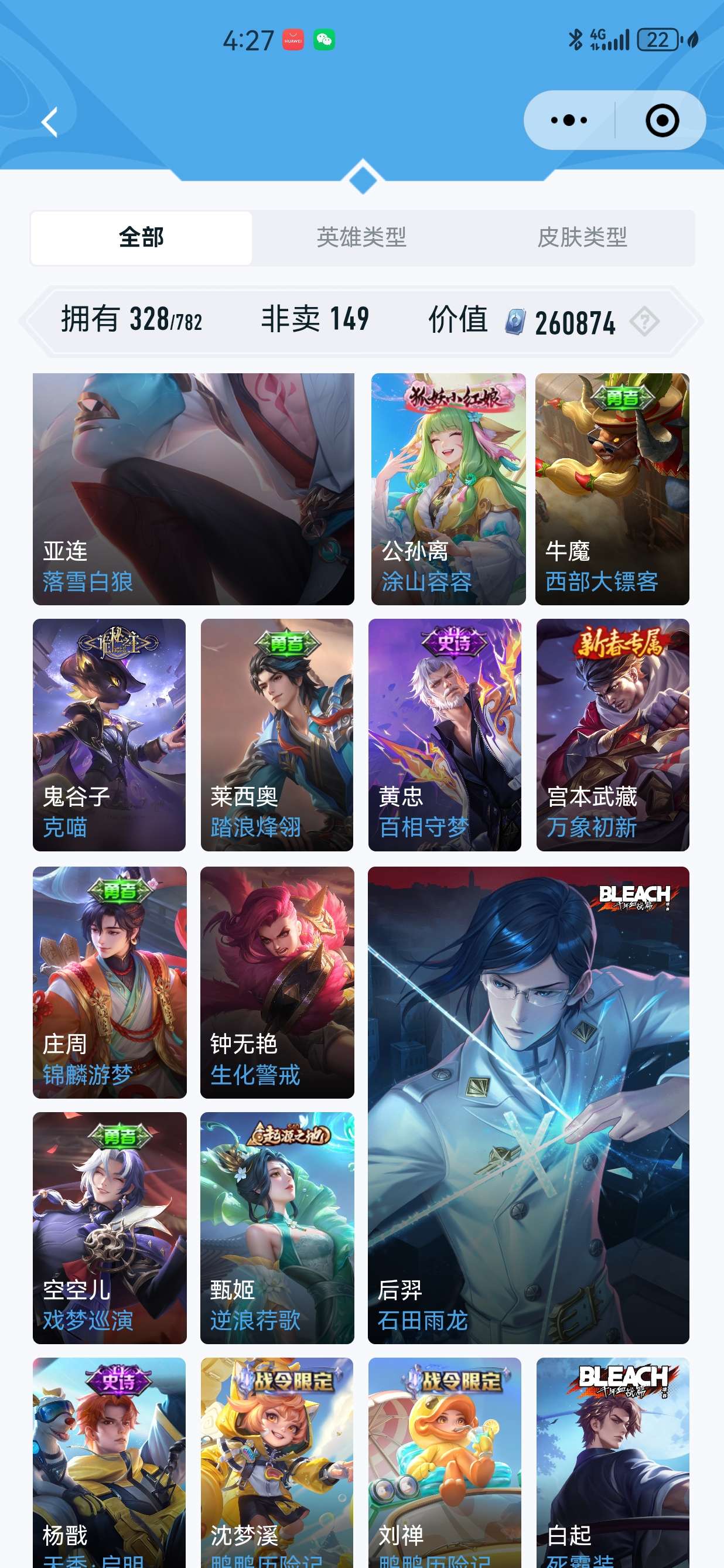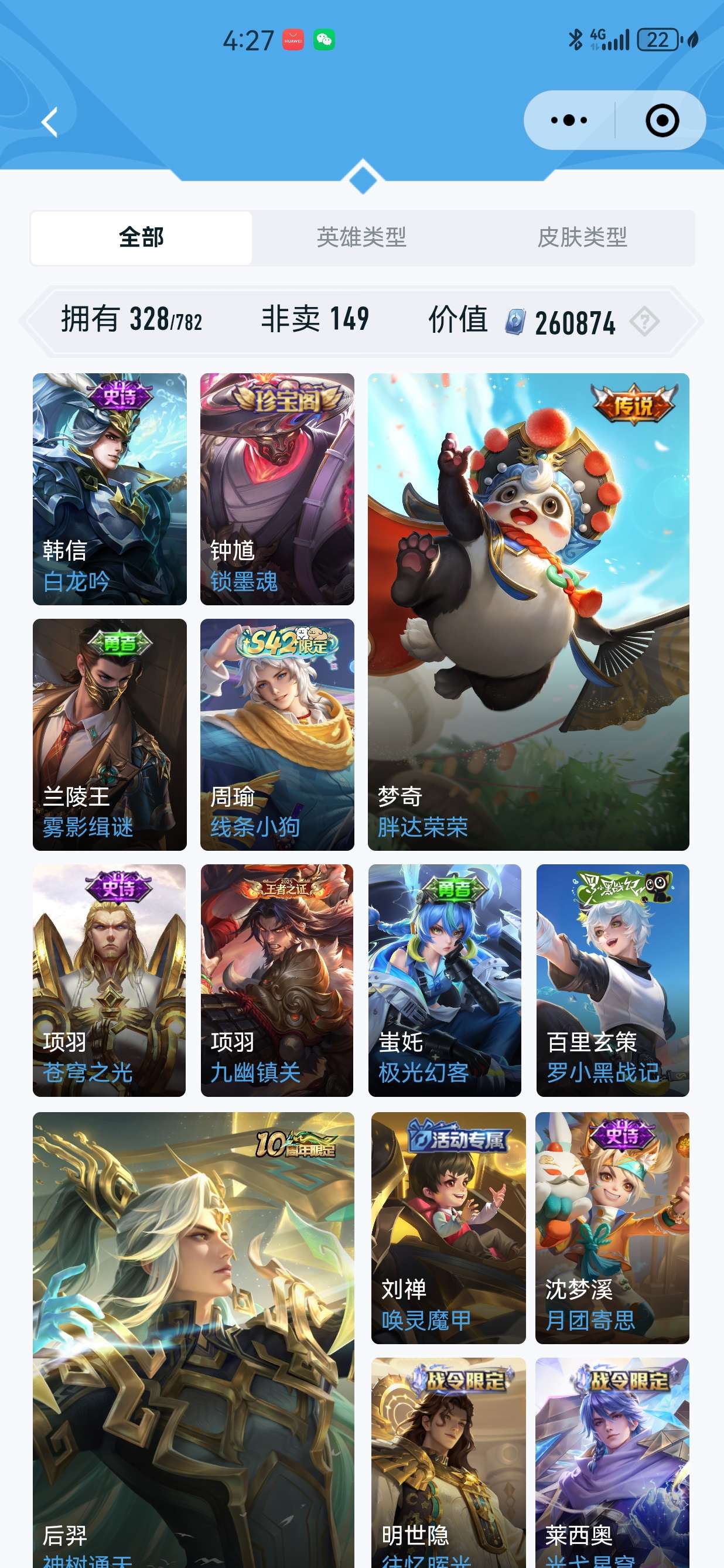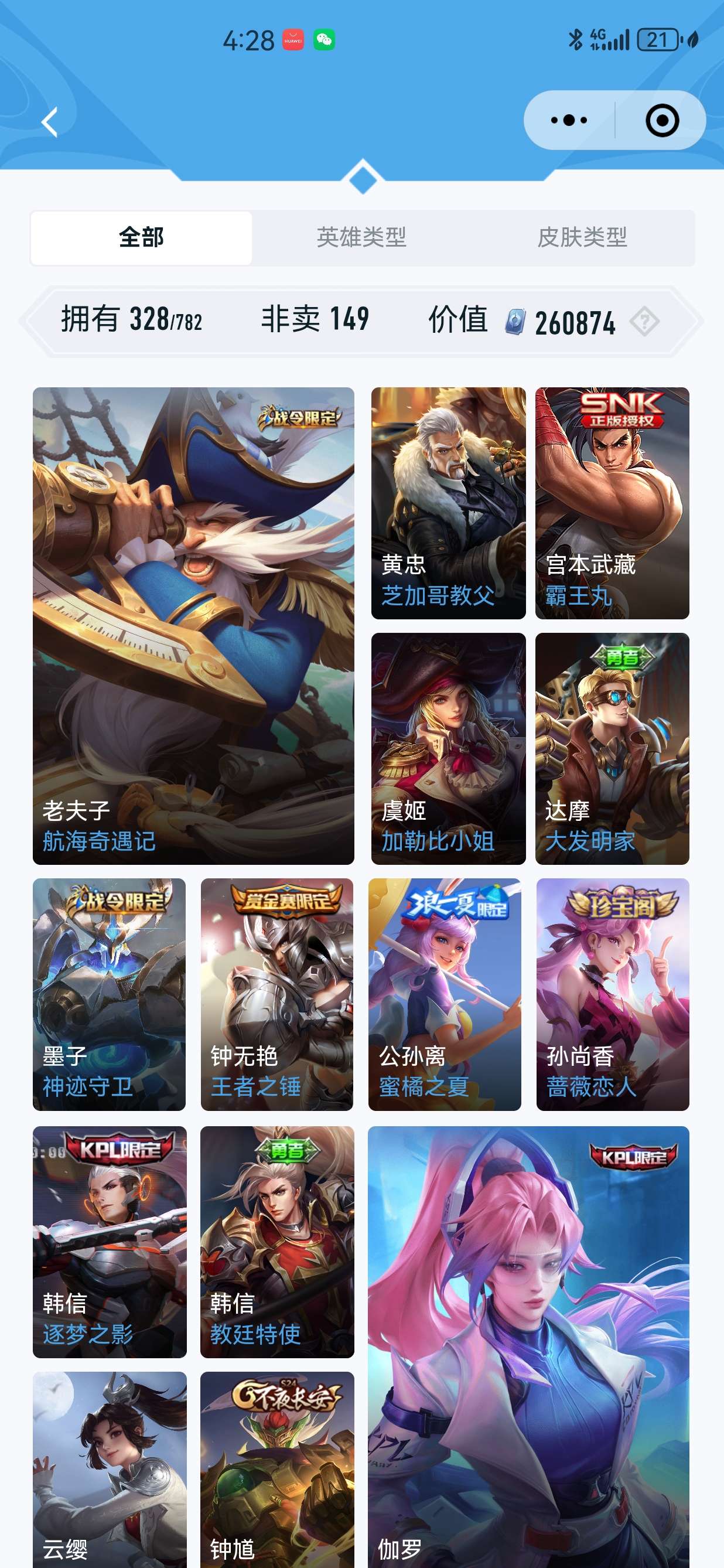 V7 皮肤328 英雄128 绝世王者 荣耀典藏2 传说8 其他皮肤323