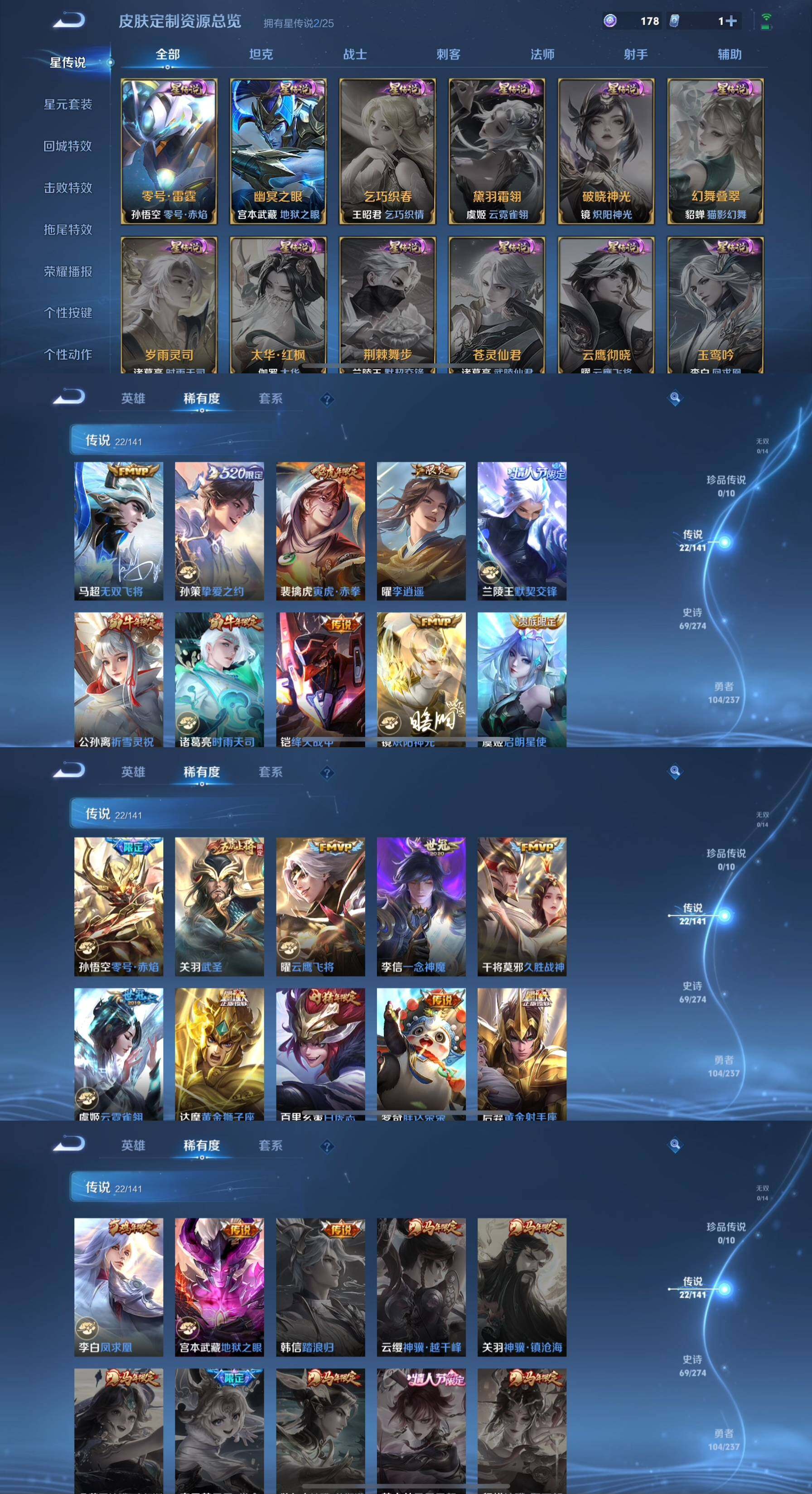 p43,3金标万战裴擒虎马超镜,打野48段,22传说2星传说,至尊宝鸣剑曳影无限飓风号李逍遥时雨天司无双飞将武圣白虎志幽冥之眼零号雷霆等