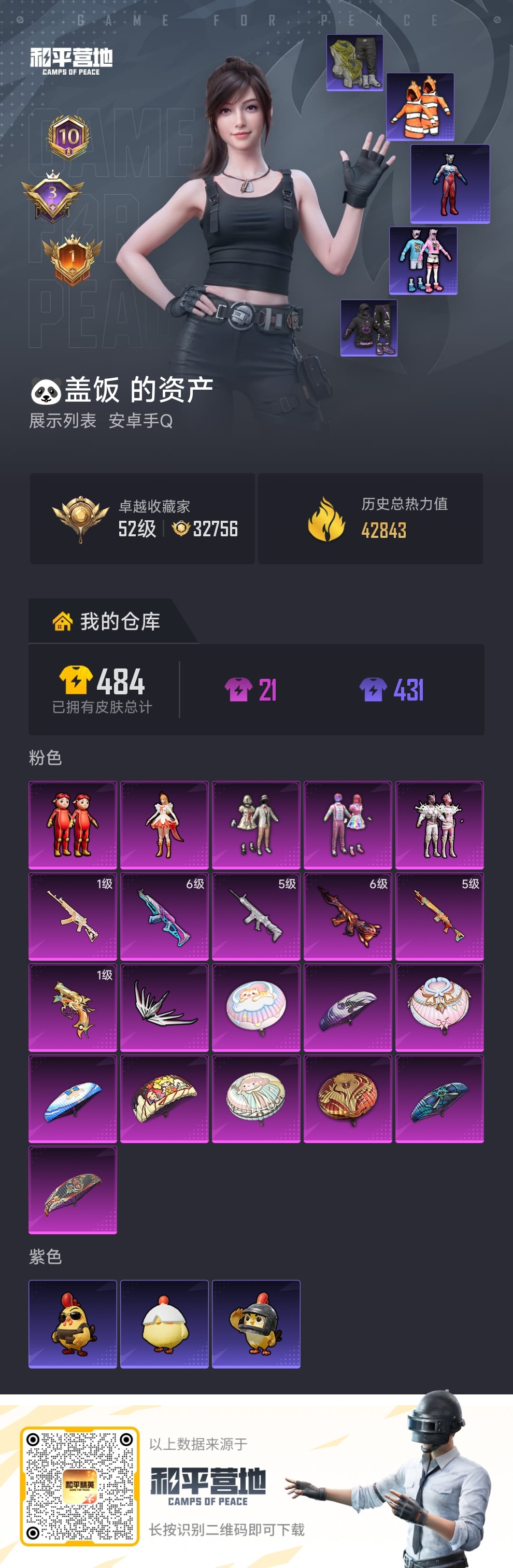 连体王者,小国赵云,赵云差一个全皮肤,和平头盔背包,枪皮肤都有,常用都有,和平精氪,王者可带妹啥的
