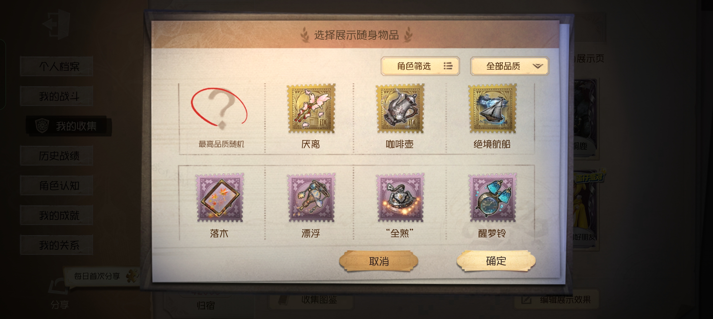 随身物品: