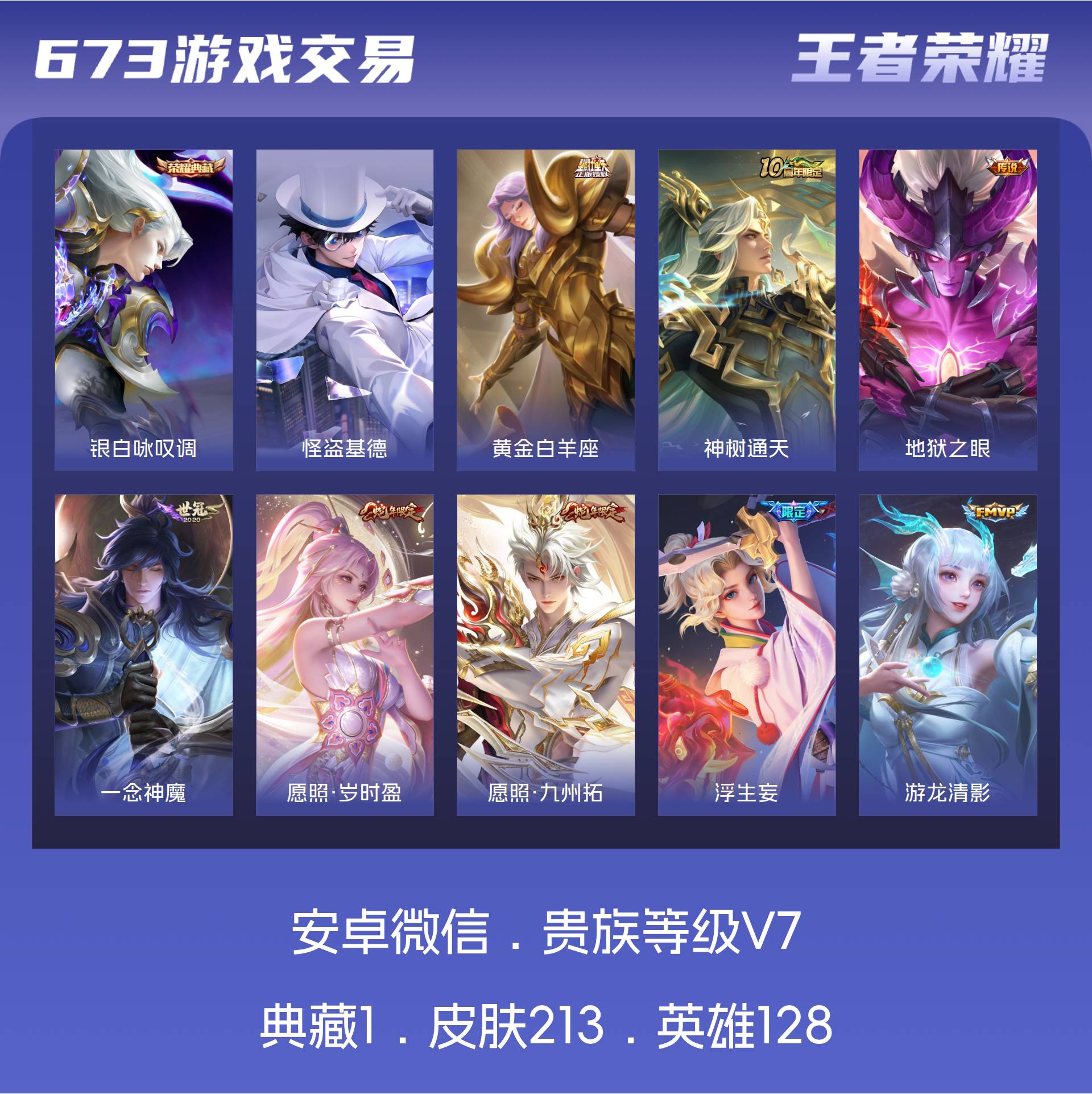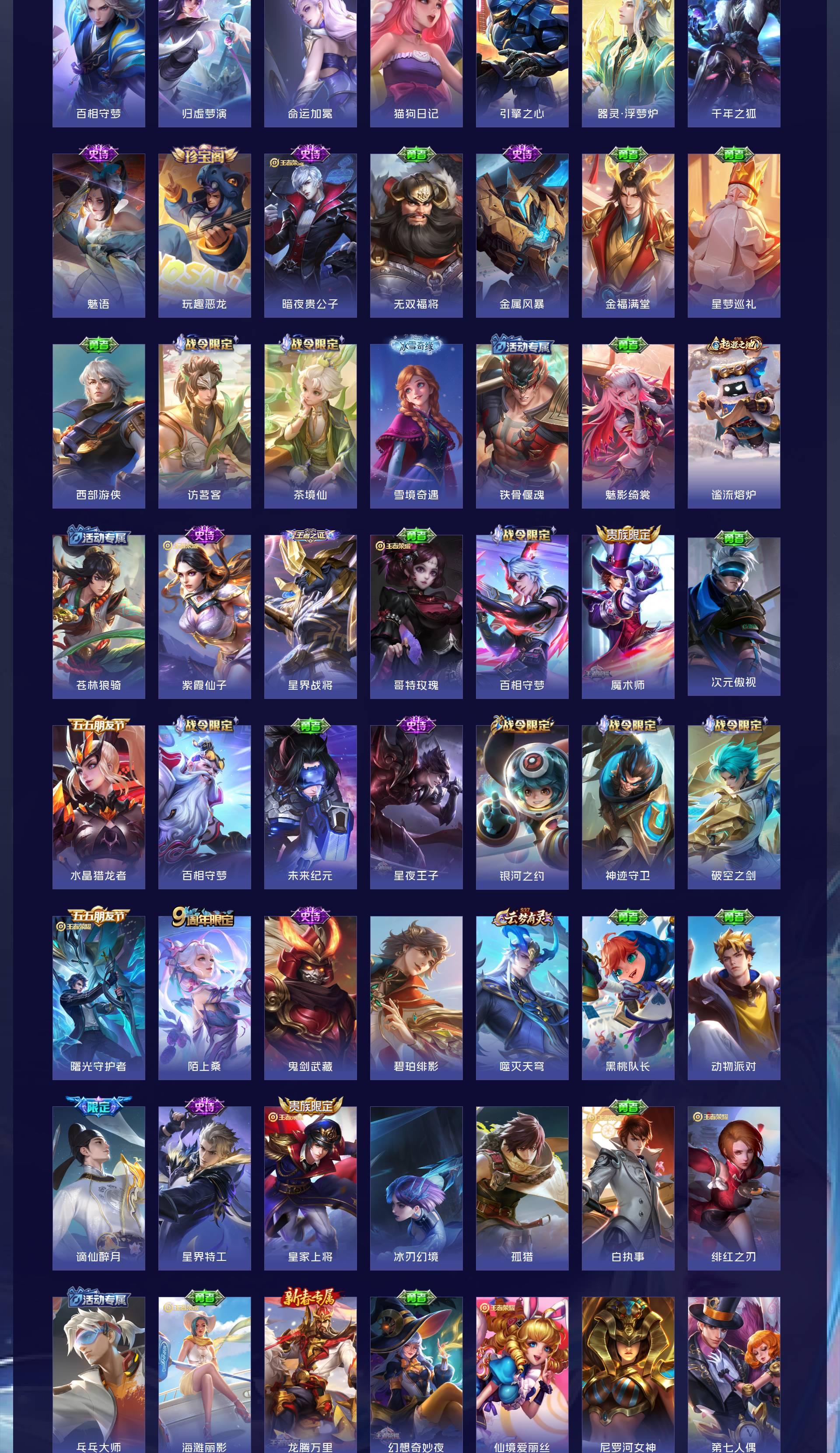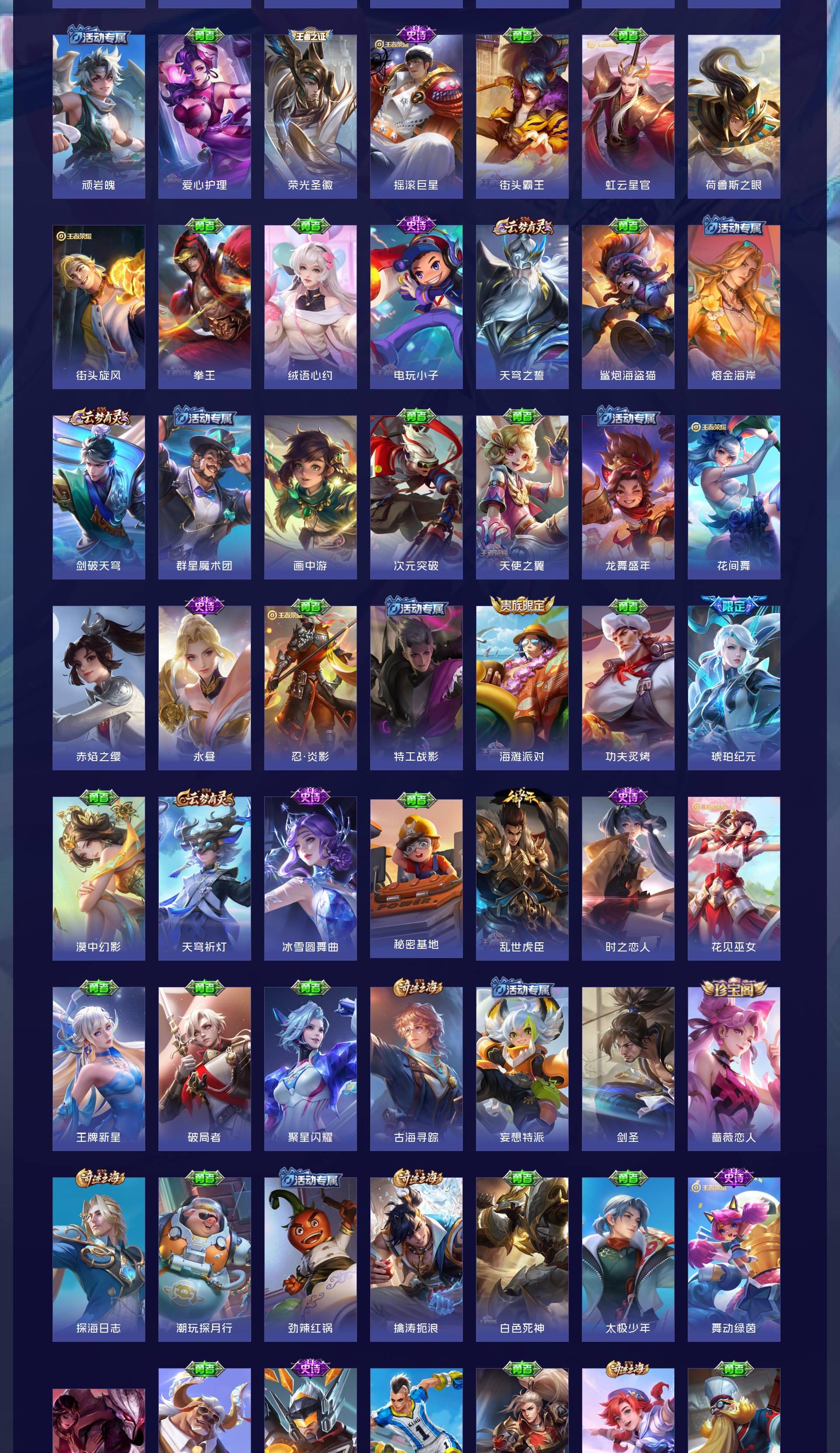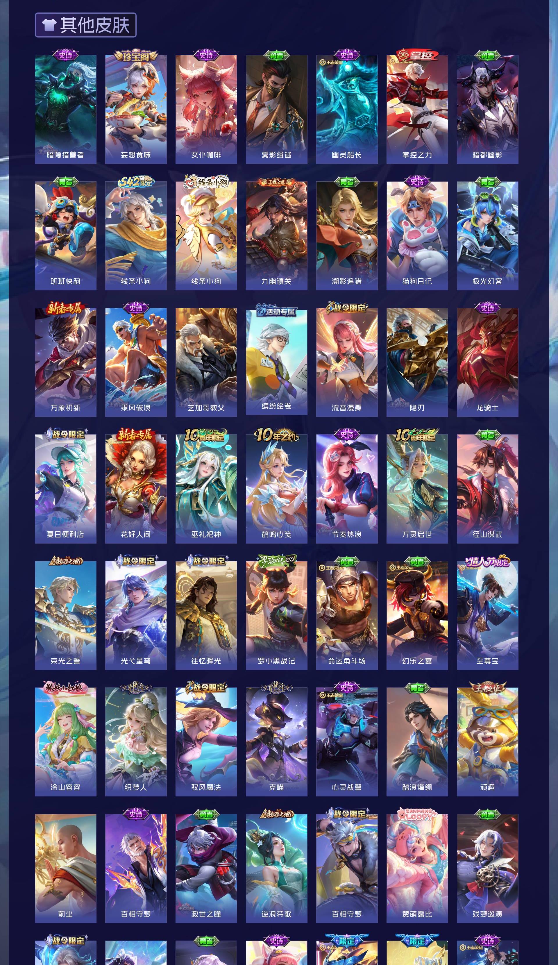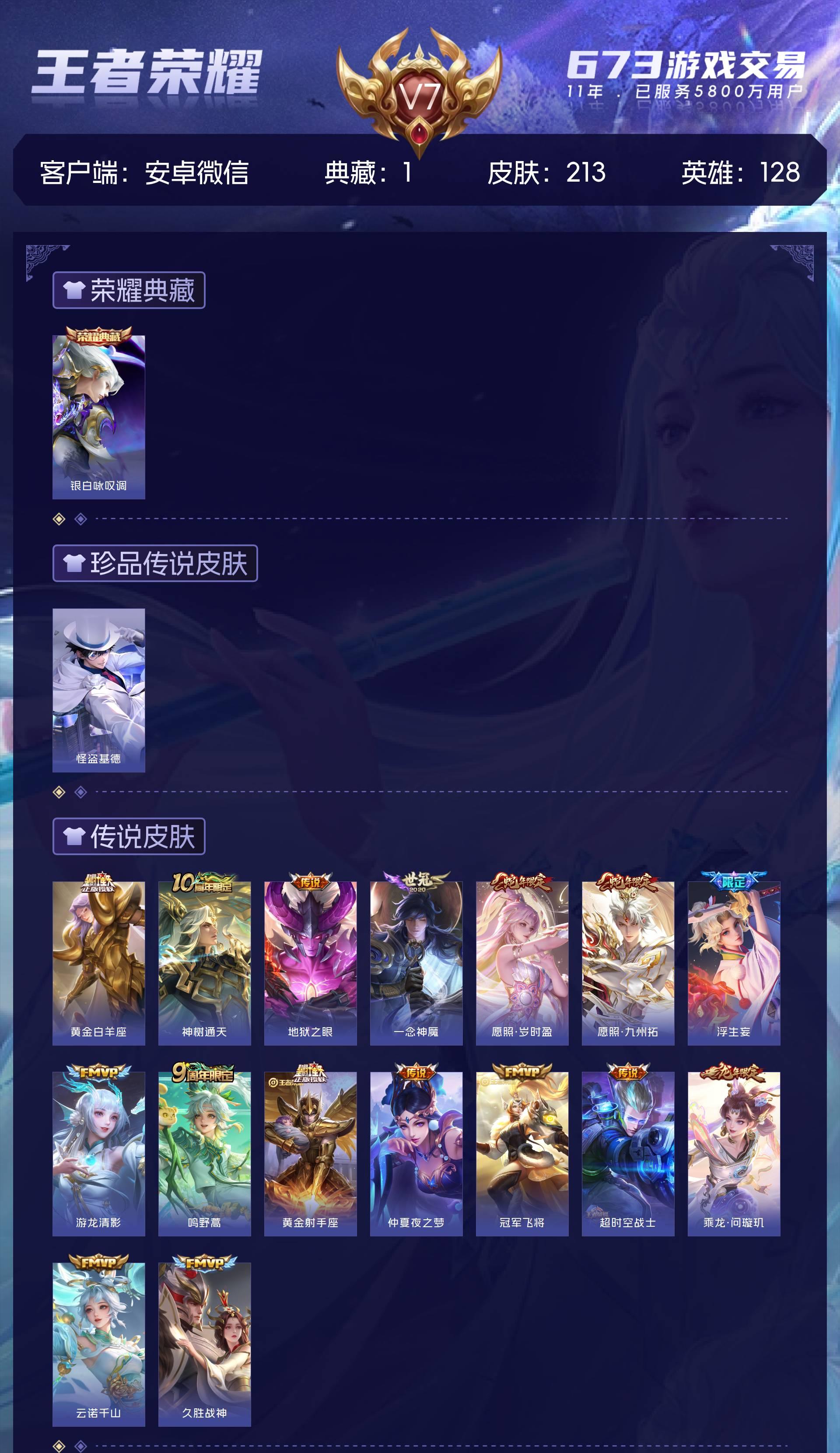 V7 皮肤213 英雄128 荣耀王者 荣耀典藏1 珍品传说1 传说16 其他皮肤199