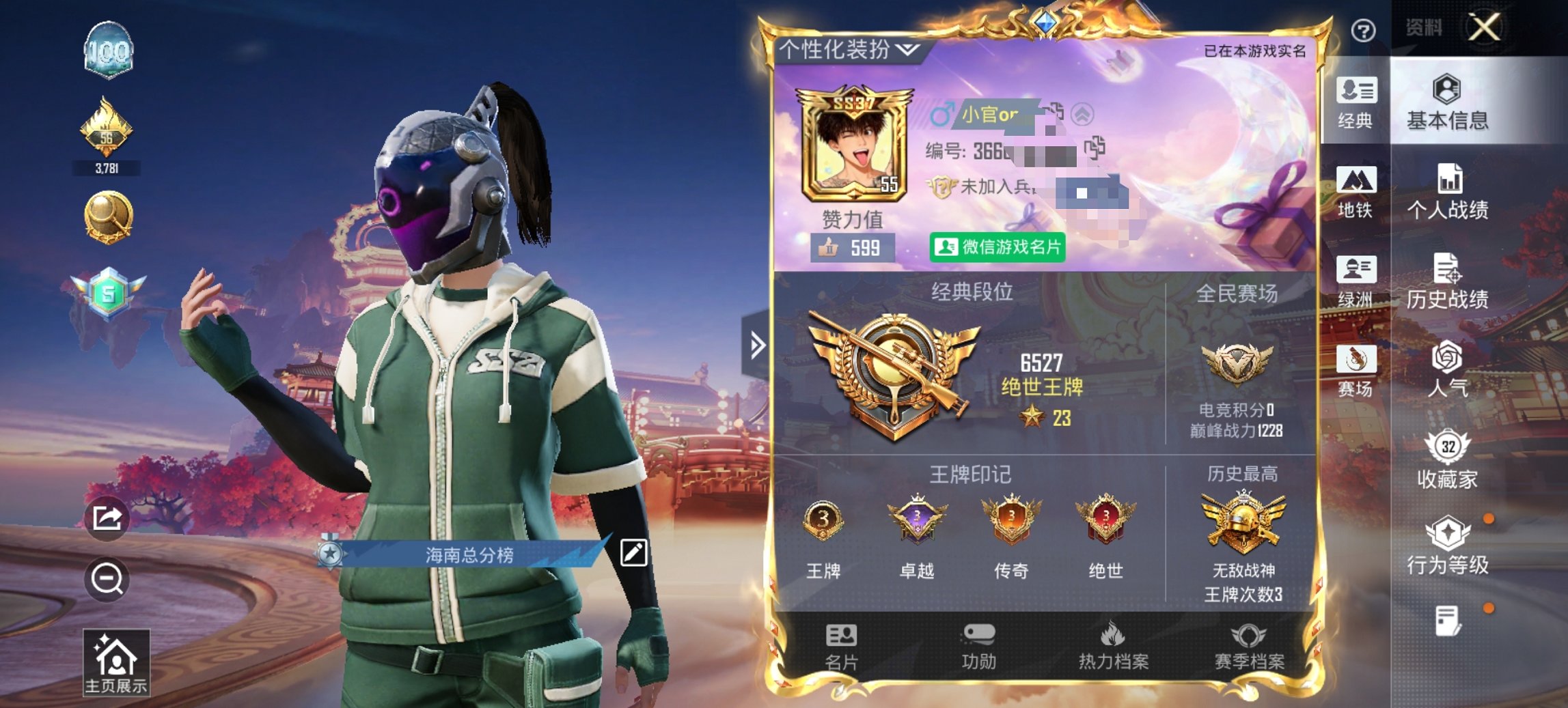 可二次实名【战神框2粉装3特效枪】 安卓V区-18956热力值-3印记-历史最高段位:无敌战神-49套装-69枪皮 【2粉装】 幻影战神 角色-幻星舰长【3特效枪】 Mk14-福马献瑞(5级) ACE32-萌骑漫游(3级) DP-28-豹影疾电(5级)【85热门】 破蛋小黄鸡 白色伏地魔 AUG-幻影战神 M762-天降萌叽 MG3-幻世战舞者 长空猛禽 夏日倾情 魅力单车 红色运动 黑色伏地魔 AA12-G-雨过天青 沙漠之鹰-雨过天青 平底锅-画境星梦 超感刻度 P90-紫矿核心 GROZA