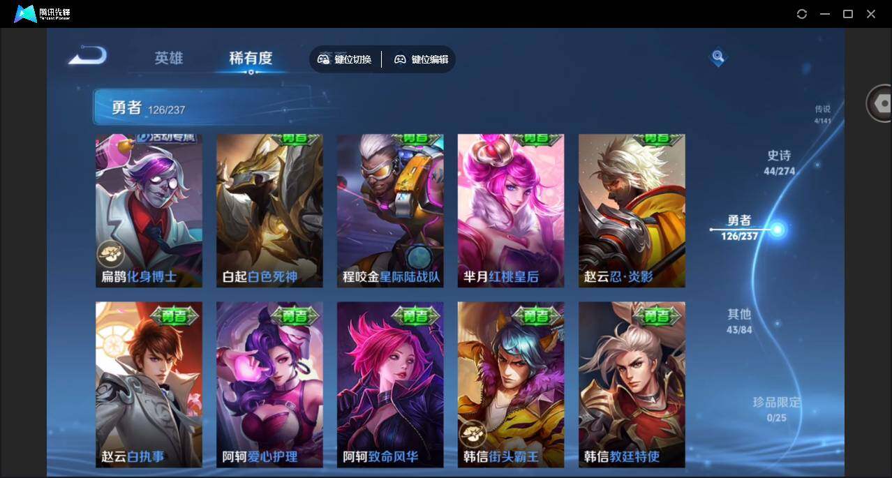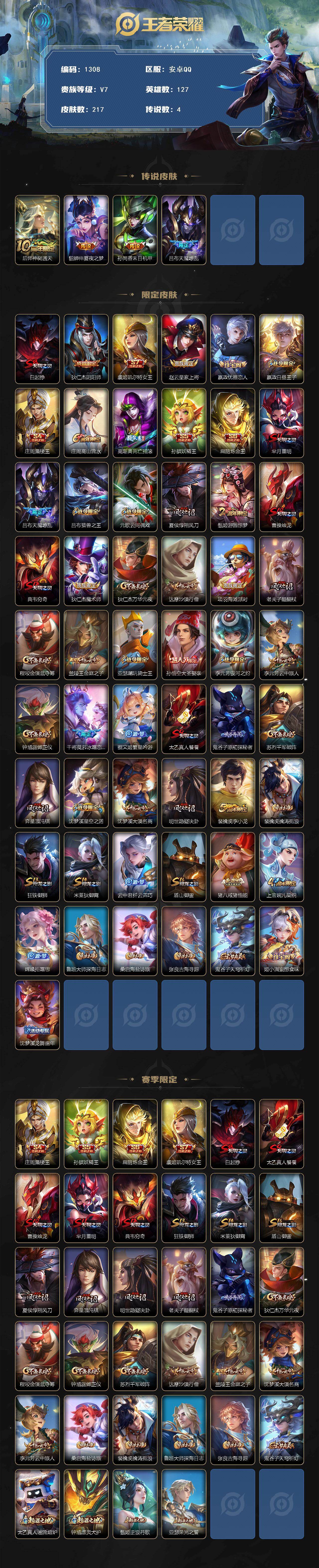 2355347 背包一颗荣耀水晶 安卓Q-V7-荣耀黄金II段位-127英雄-217皮肤-4传说-43史诗