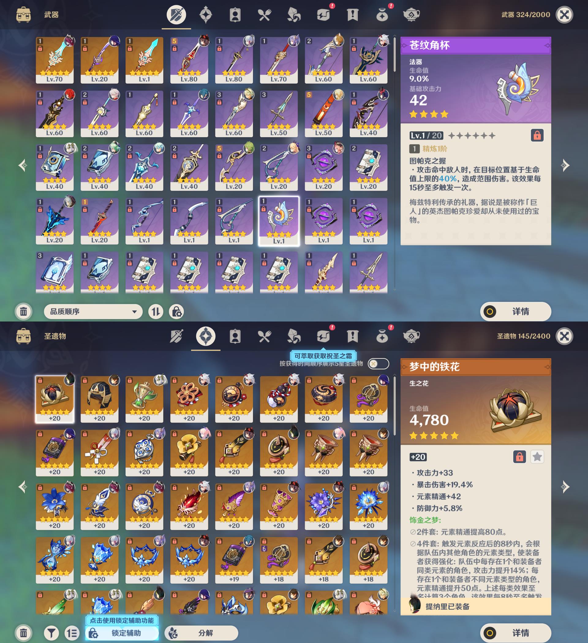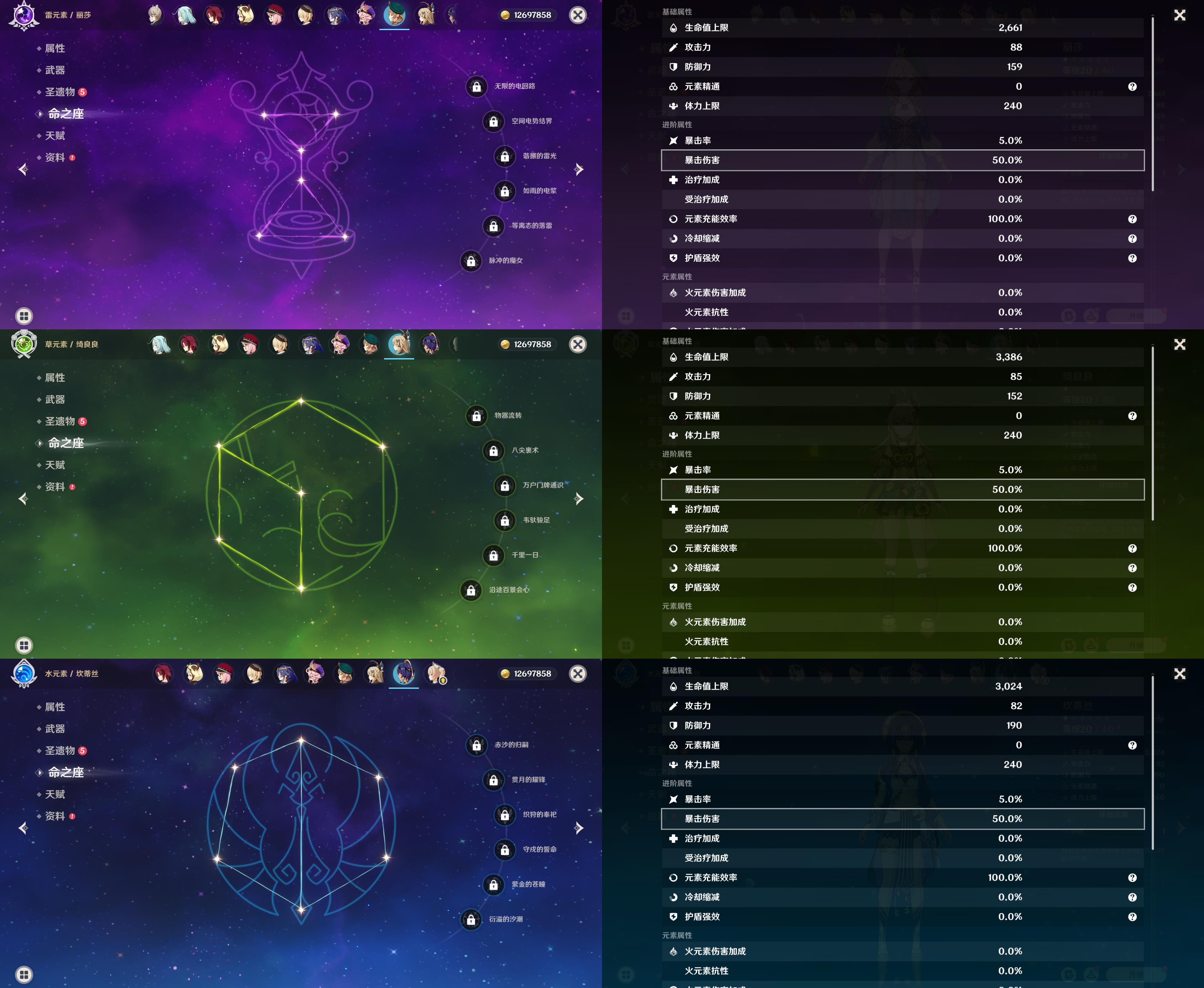 56级/24黄/女主/16个五星角色/3个五星武器/神里绫华/