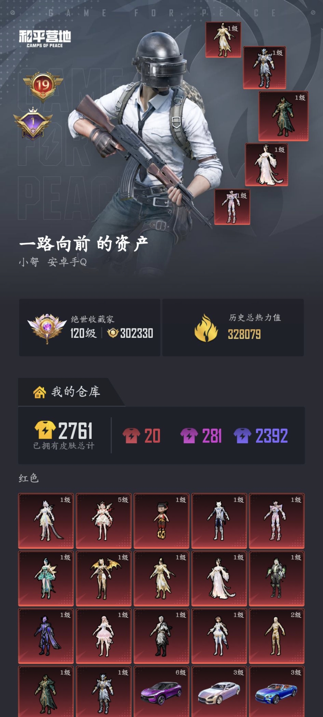 和平精英安q双字ID小哿(ge),32.8热力。王者荣耀v9(差1000多到v10),全英雄,荣耀
