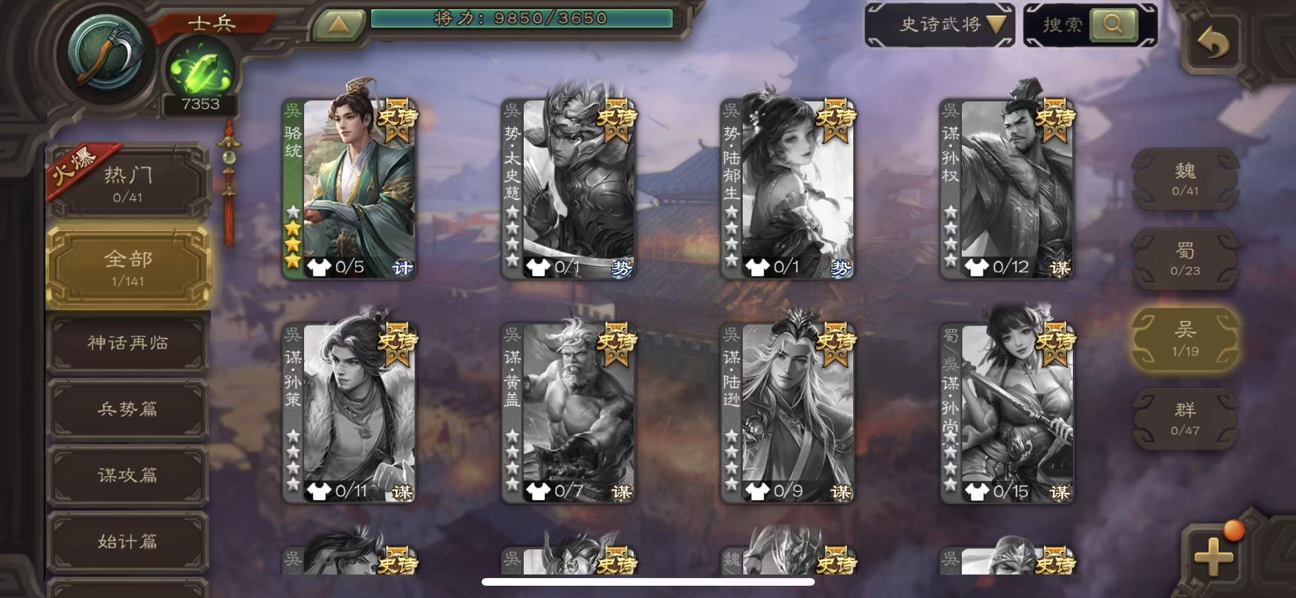史诗武将数量: