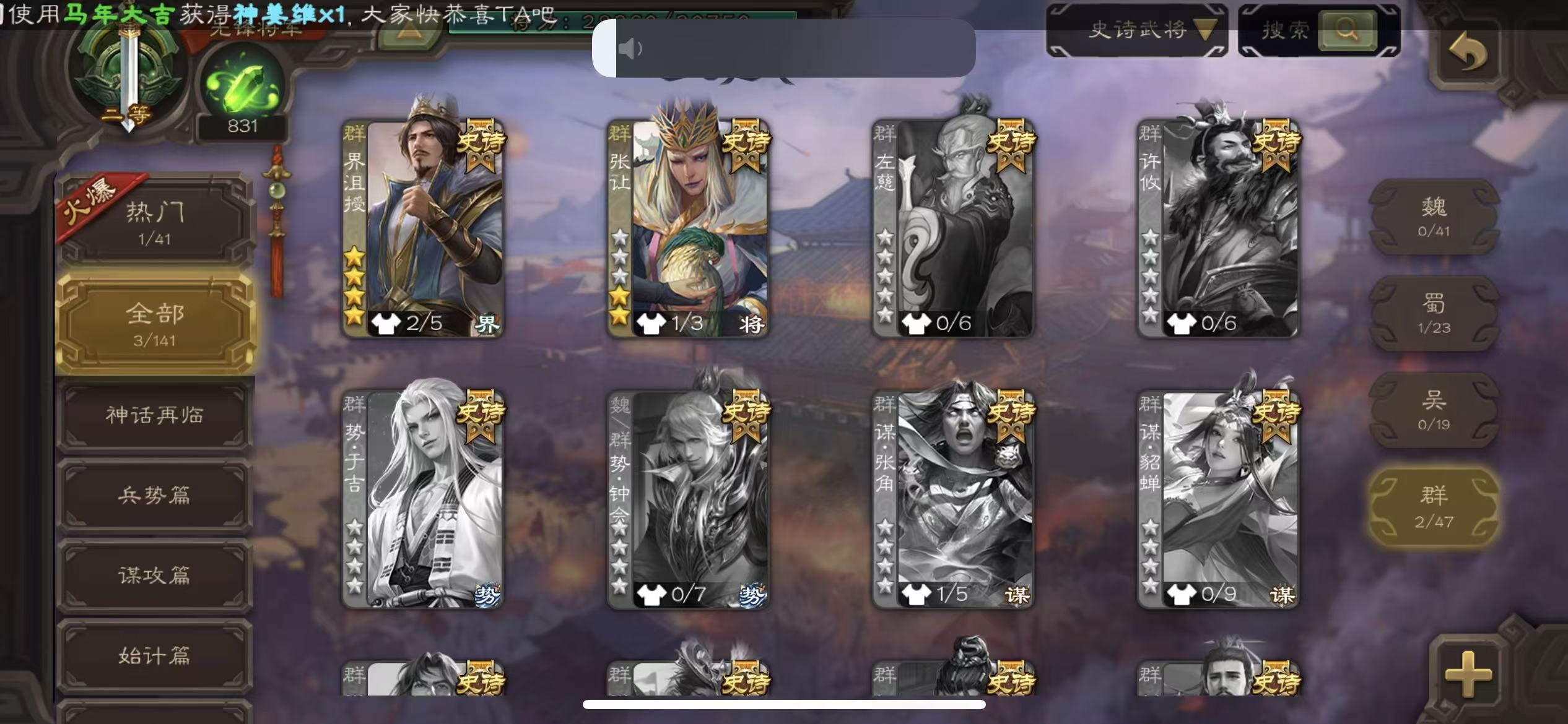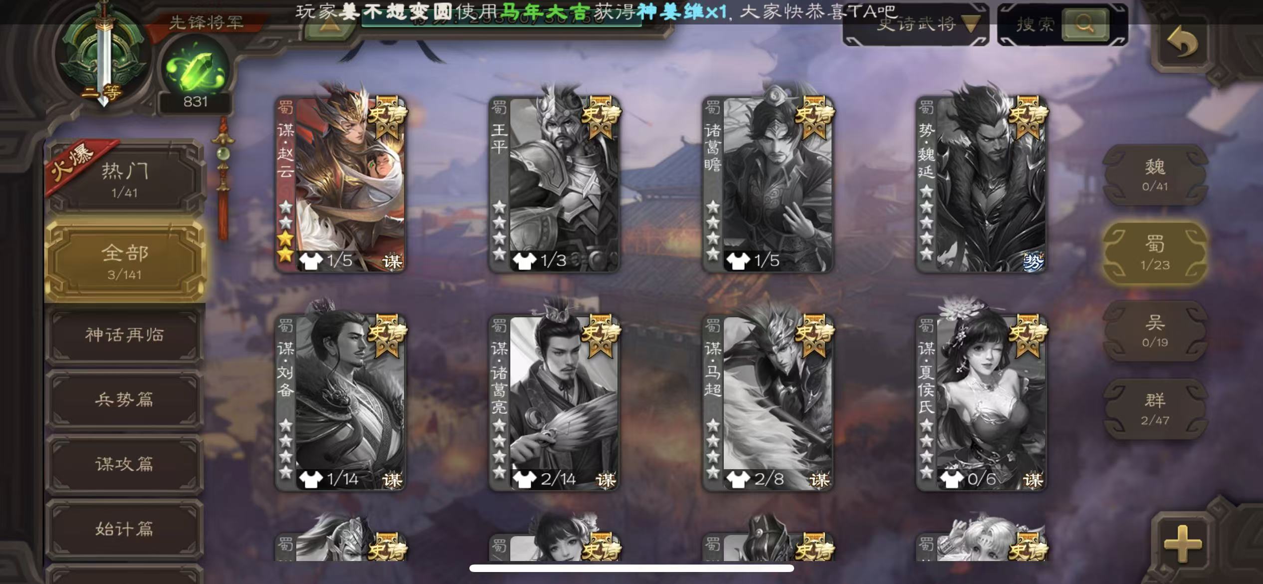 史诗武将数量: