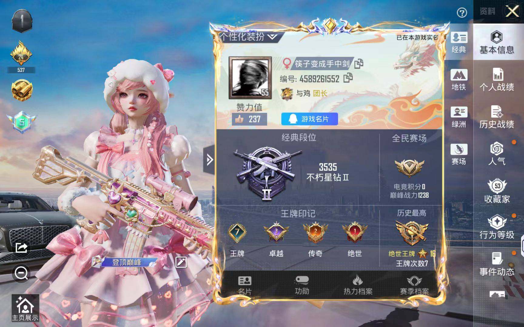 安卓 手Q-4粉装-5特效枪-1载具-1粉色飞行器-42666热力值-7王牌印记-119套装-137枪皮