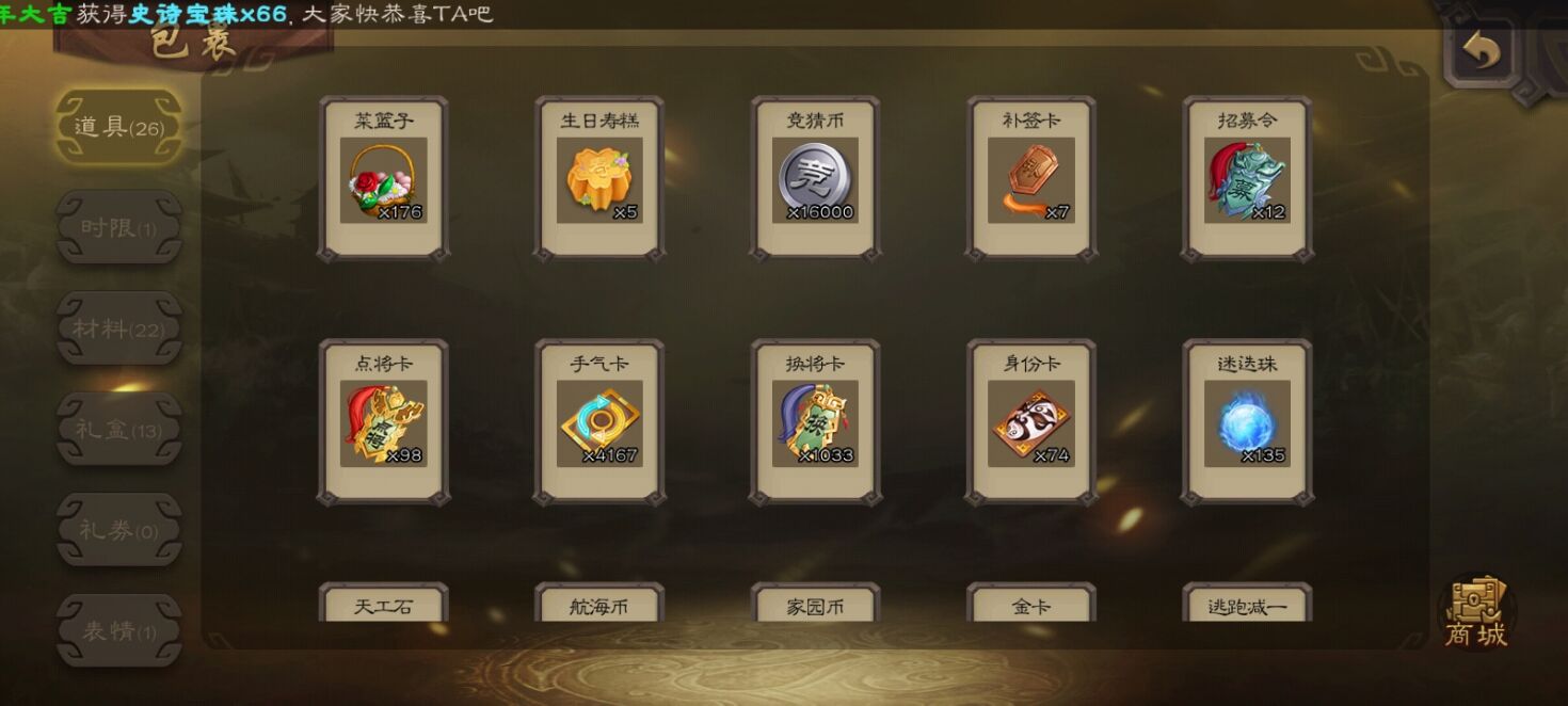 曹髦文鸯界沮授神司马懿等49史诗武将,63宝珠,1.5万心愿积分努努力攒一攒就能换权一了8千将魂 4万羽毛 天宫武将谋张辽阎象等等高质量