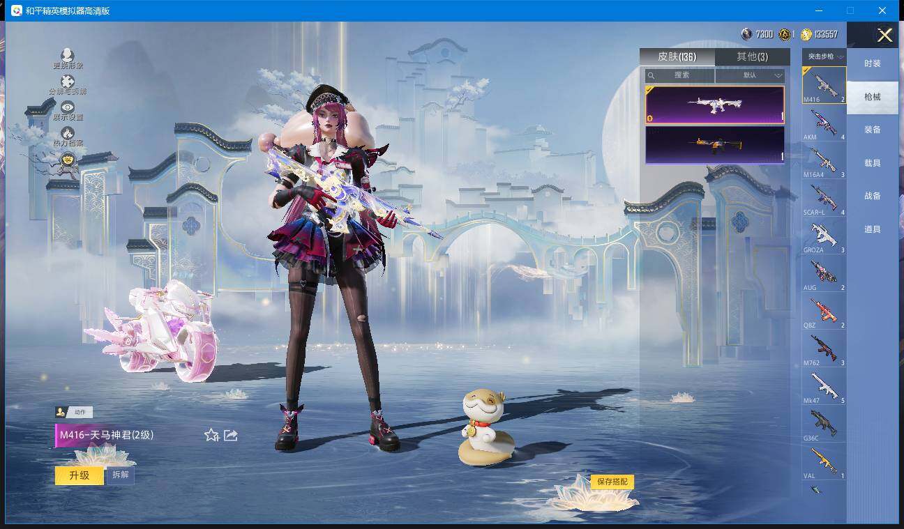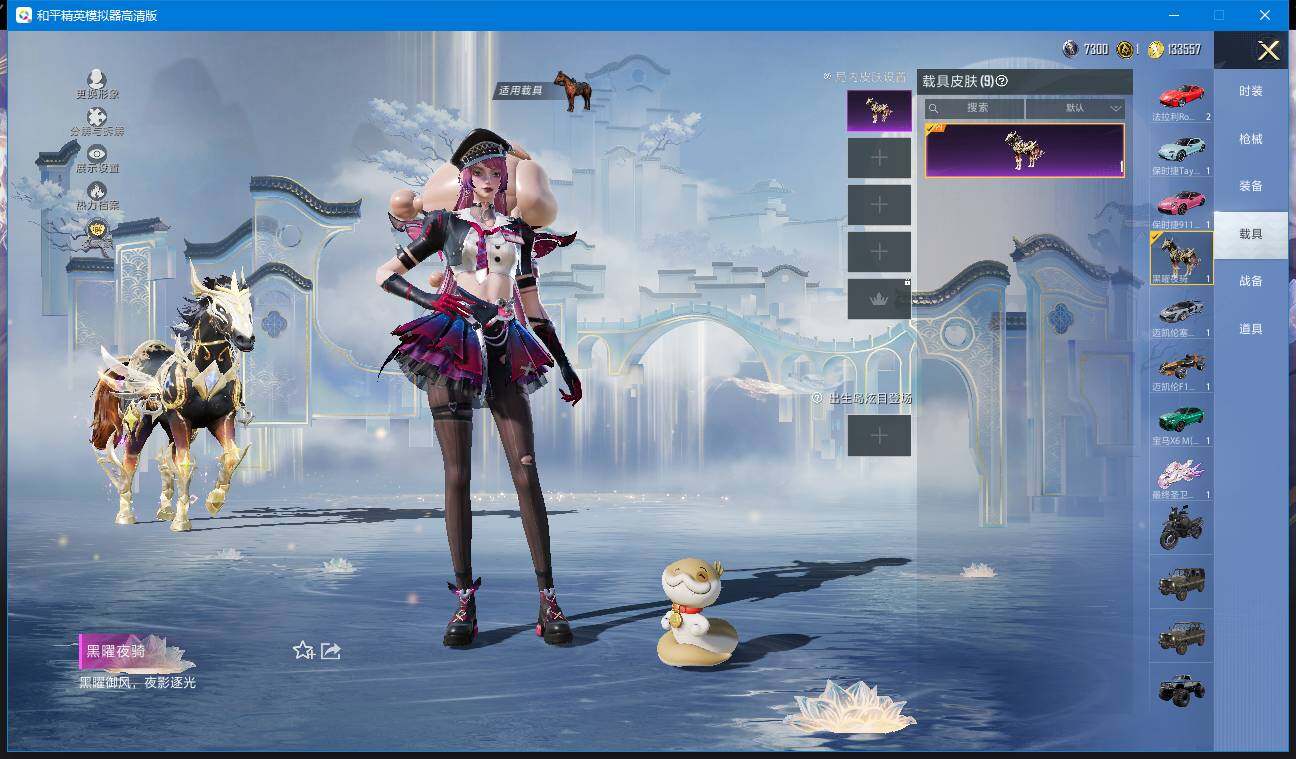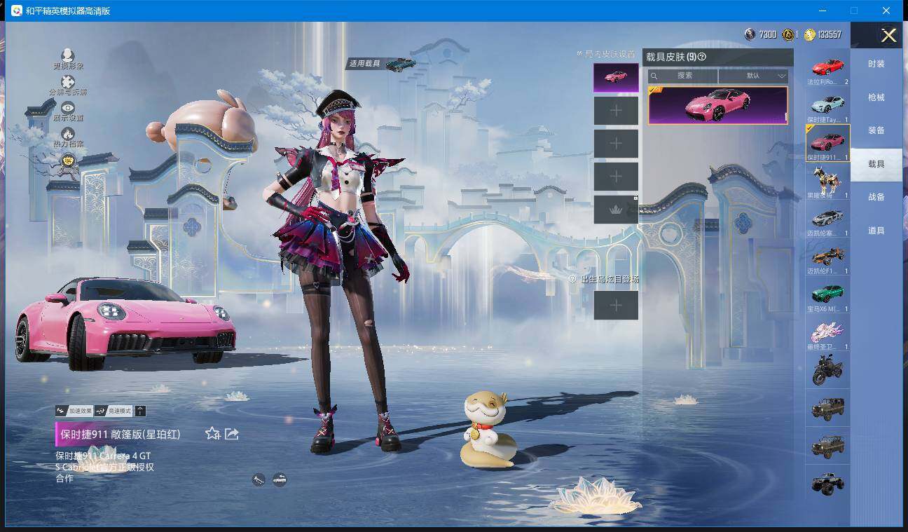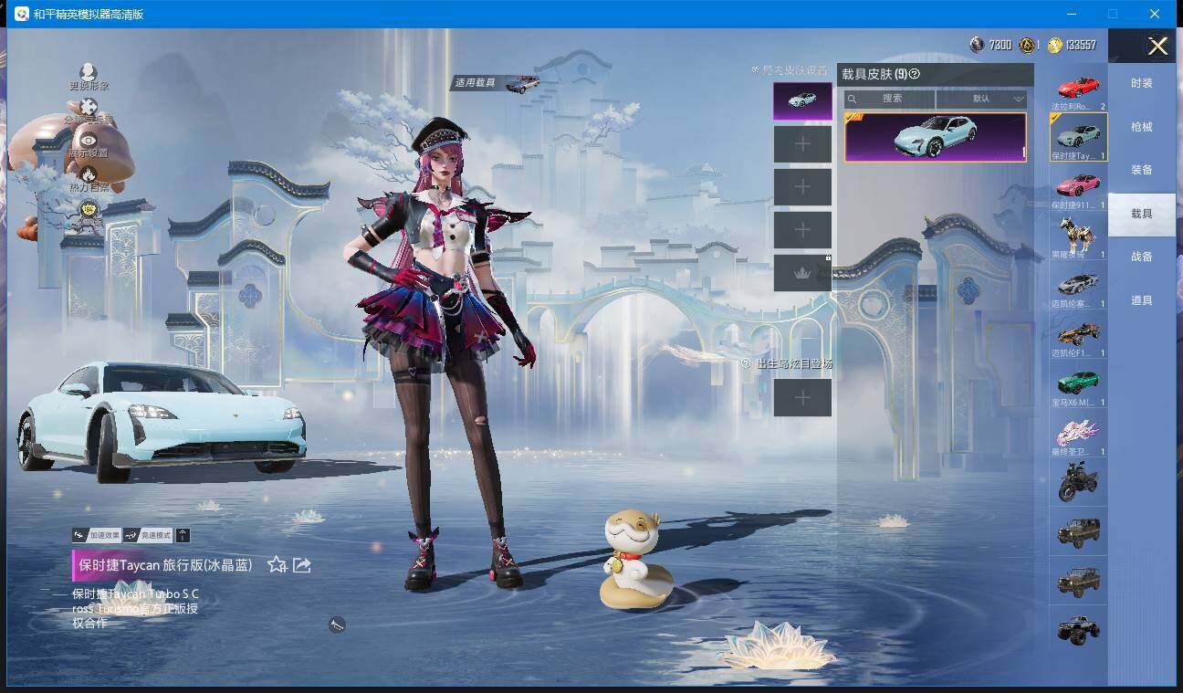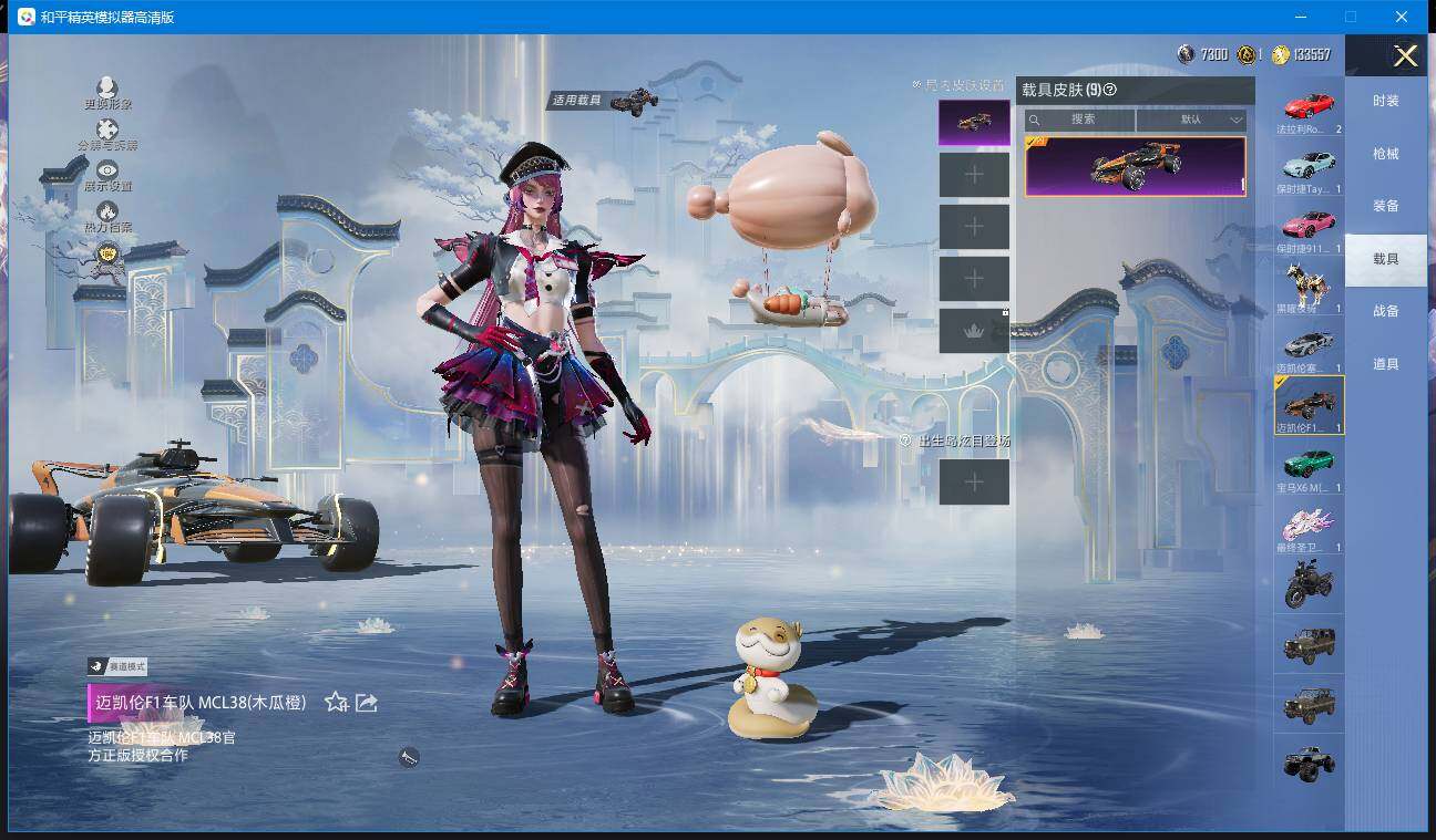 时装数: 366 载具数: 9 枪械数: 136 战备数: 96 热门装扮: 奇异狩猎者,梦幻火箭(新101),呆萌铁蟹,深海小丑鱼,迅捷狂鲨,好奇恐龙,洛天依,银红美神,幻彩电音,绯穹魔姬,异瞳寒姬,罪夜之冕,小舞,小舞·雪昙 载具: 僚机-萌兔起飞,玛莎拉蒂Quattroporte(夜幕蓝),宝马X6 M(曼岛绿),迈凯伦塞纳(冷萃蓝),迈凯伦F1车队 MCL38(木瓜橙),最终圣卫者摩托车