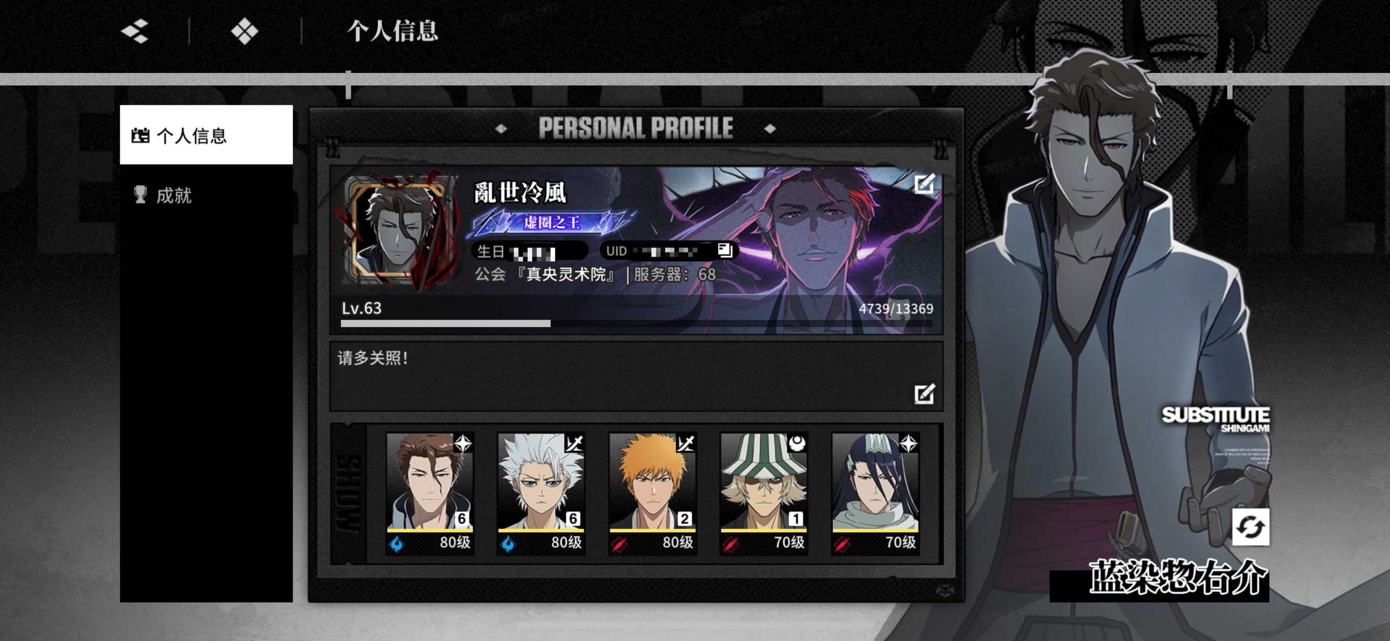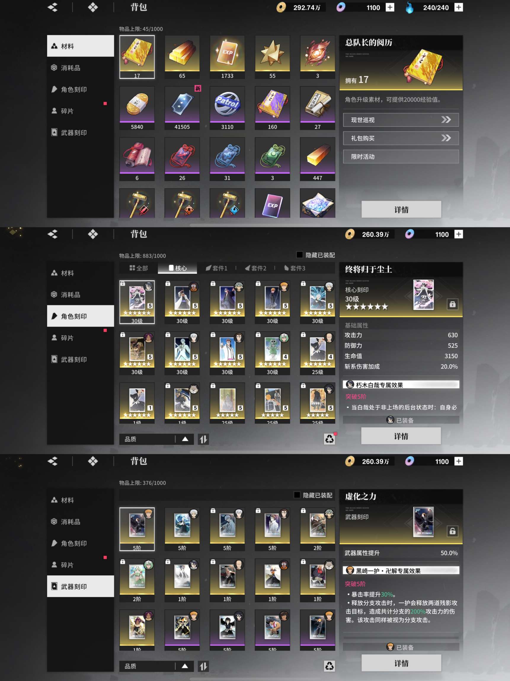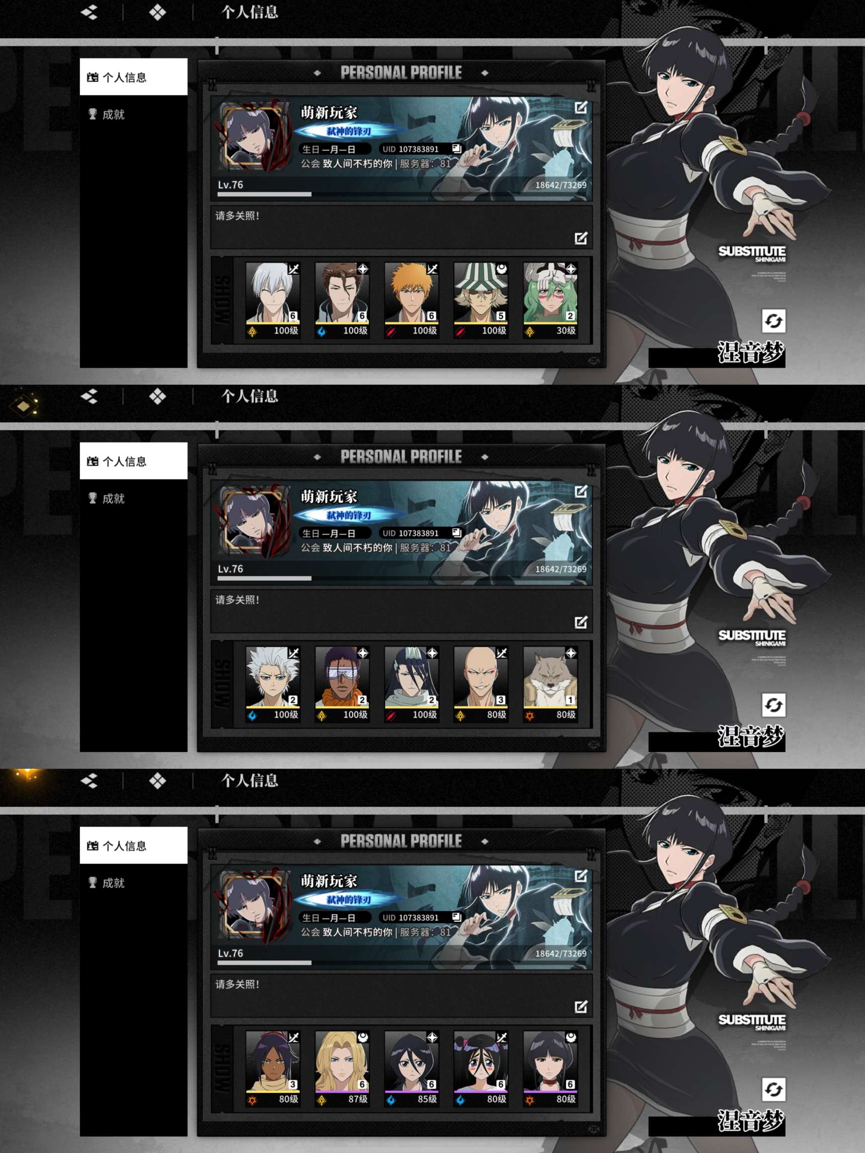 655银655蓝染655一护/5限定525店长255小白224妮露215东仙215白哉315夜一
