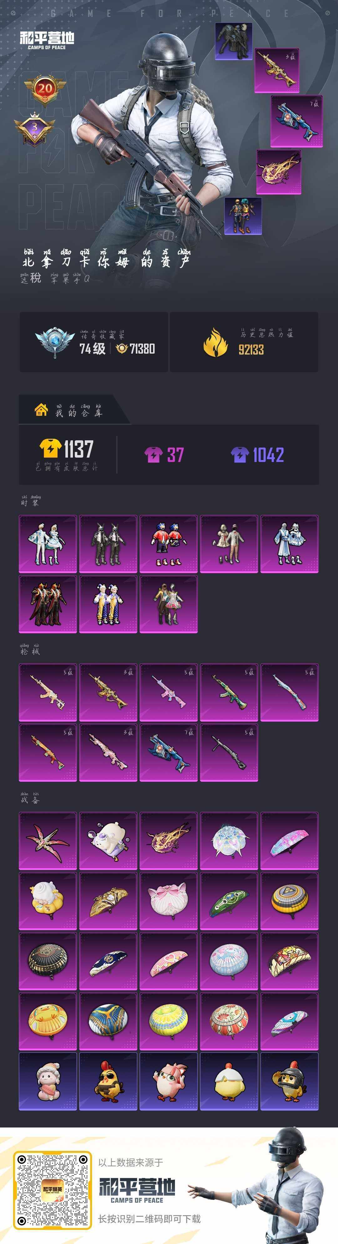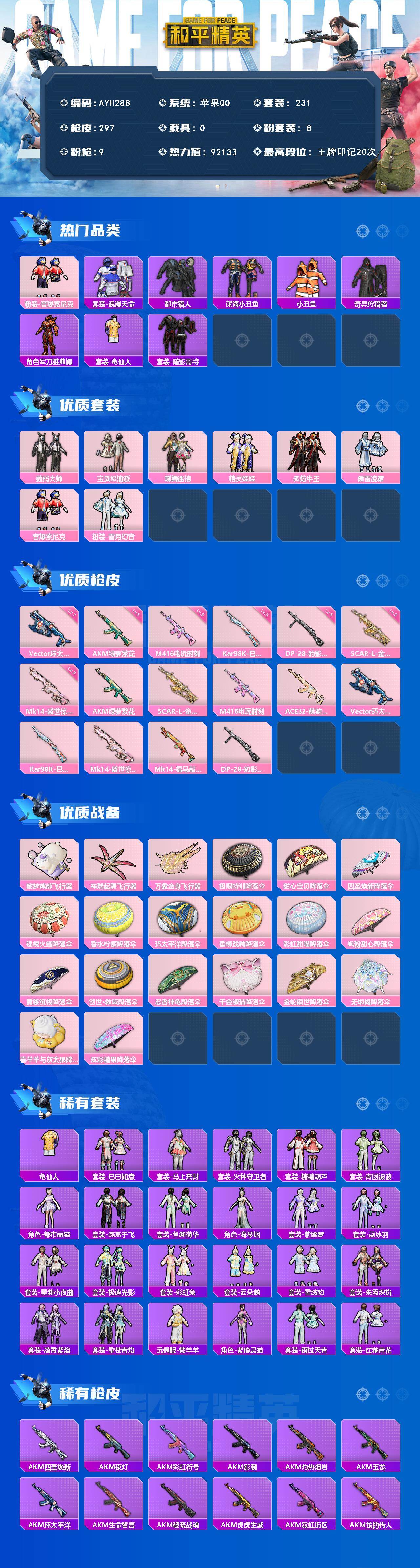 苹果 手Q-8粉装-9特效枪-0载具-3粉色飞行器-92133热力值-20王牌印记-231套装-297枪皮