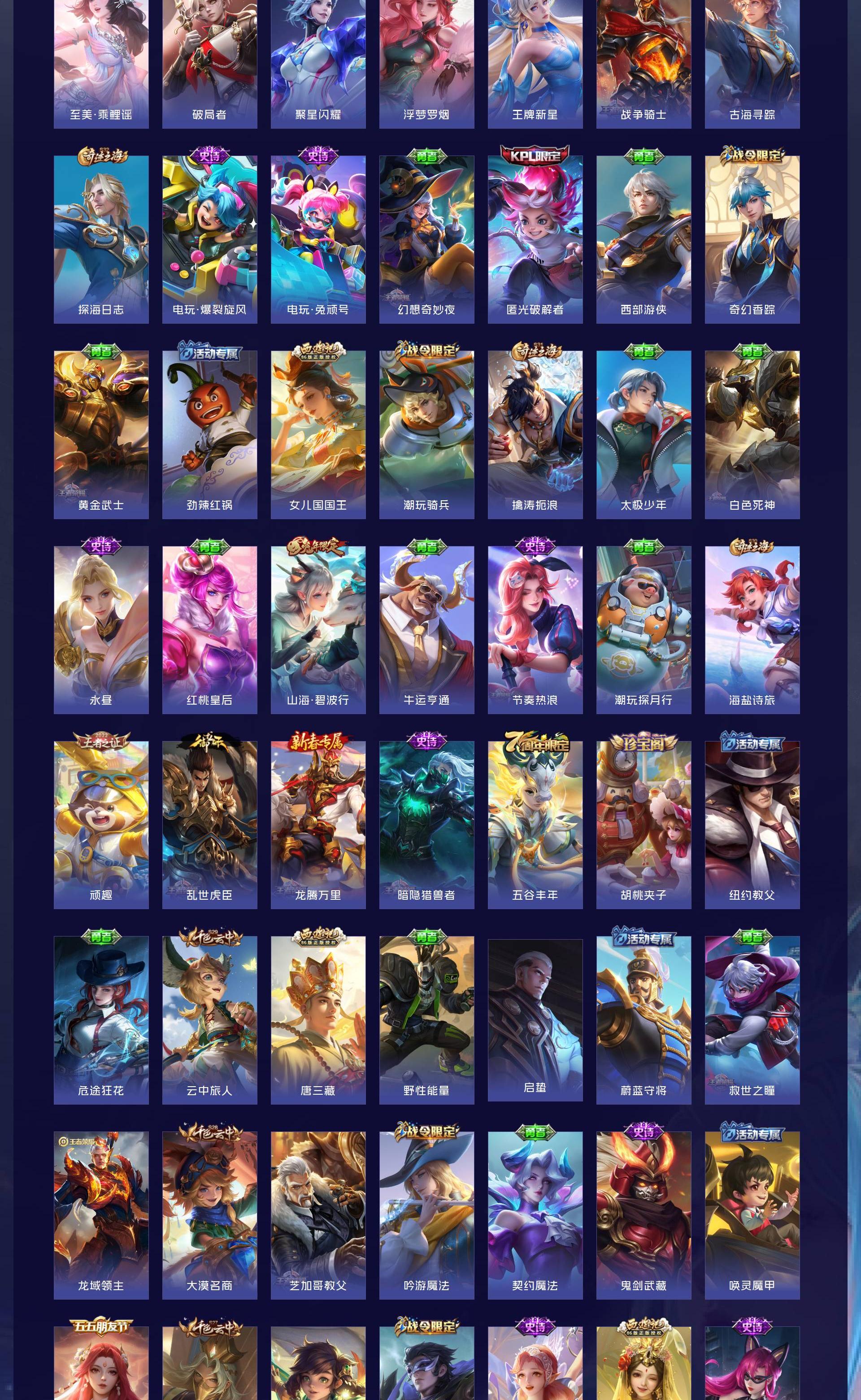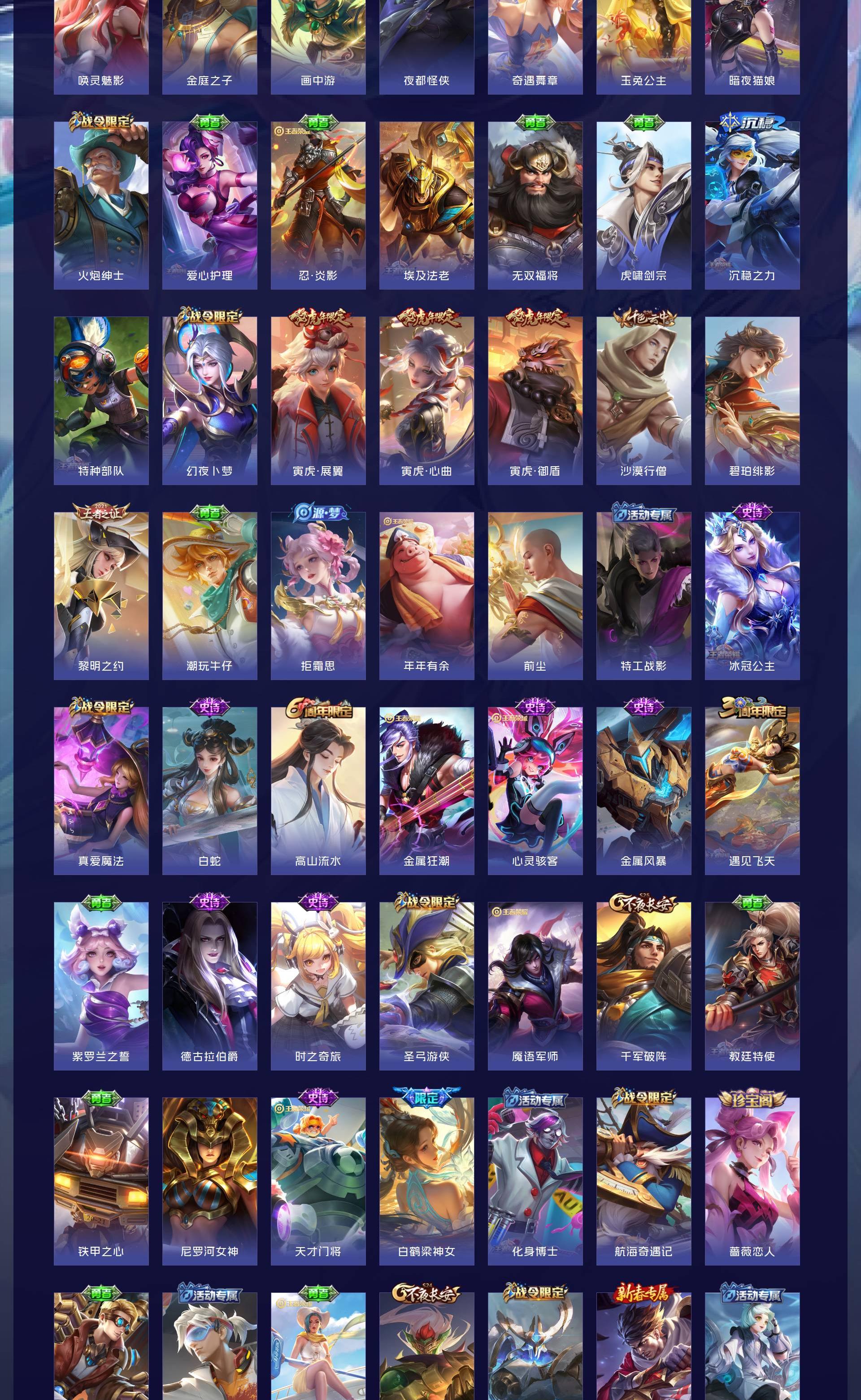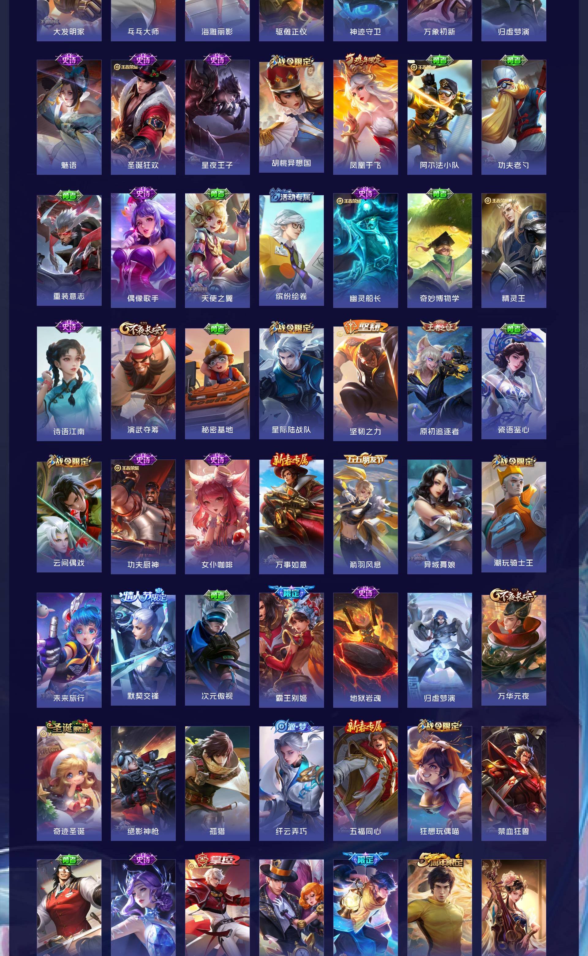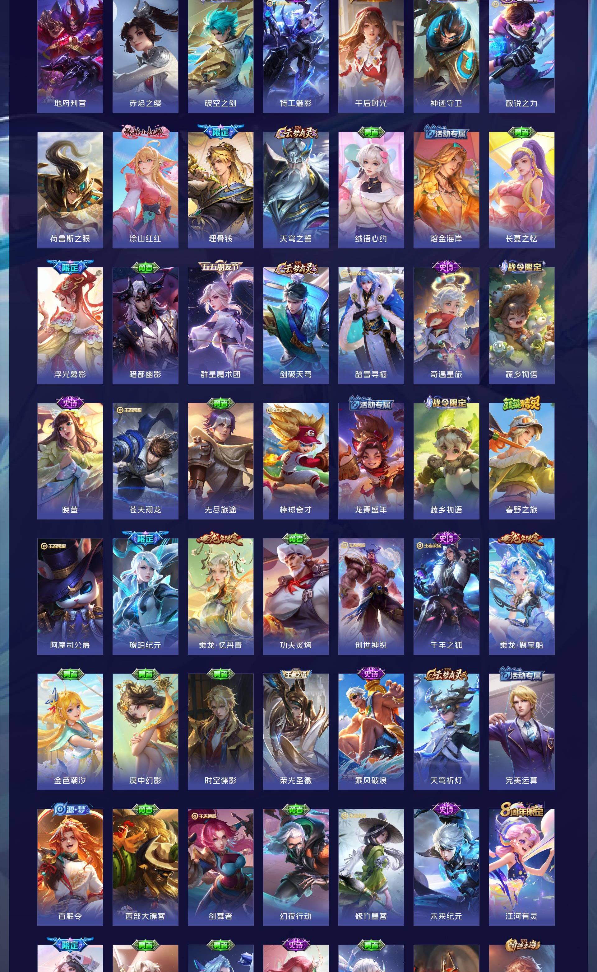 V9 皮肤410 英雄128 无双王者 荣耀典藏2 无双皮肤2 珍品传说2 星传说4 传说34 其他皮肤363