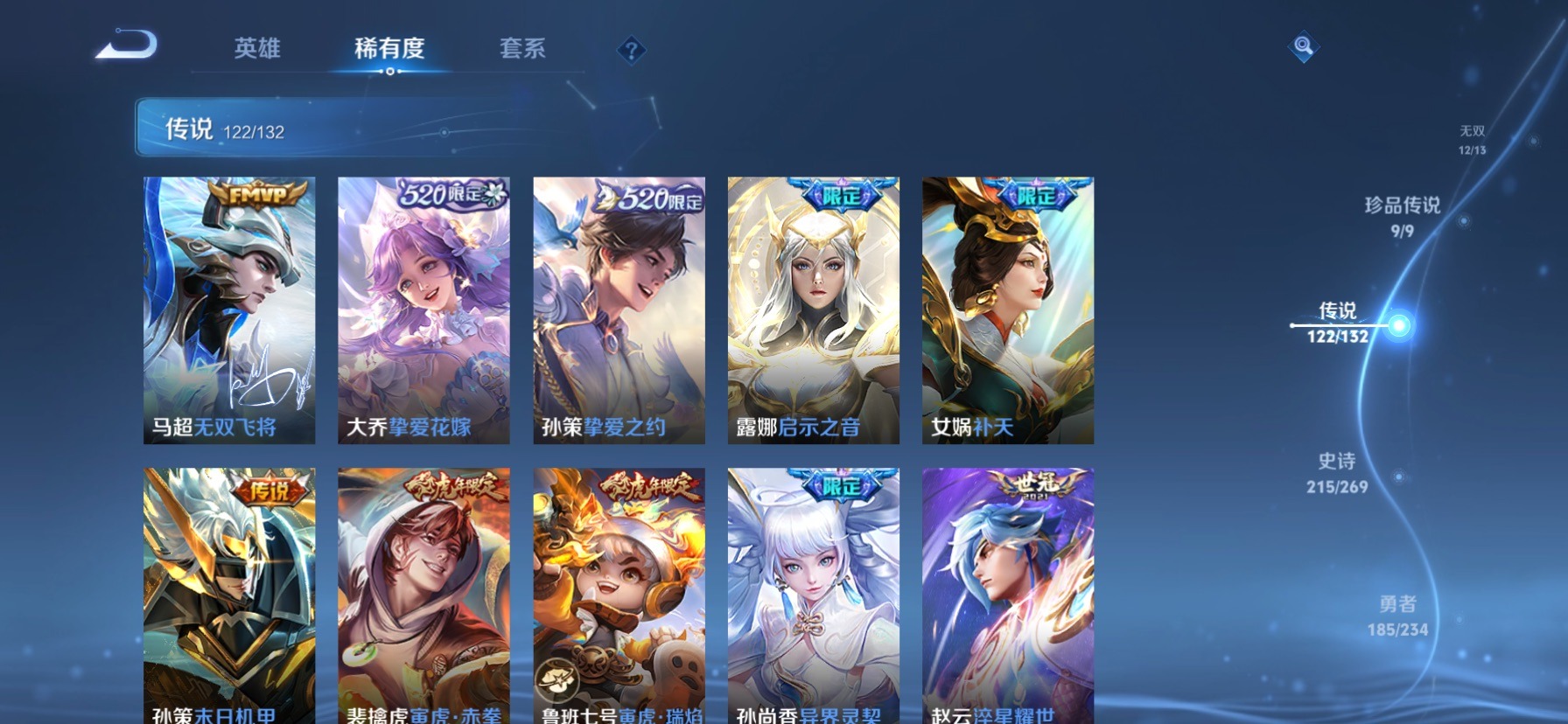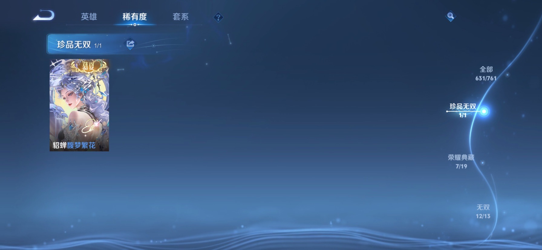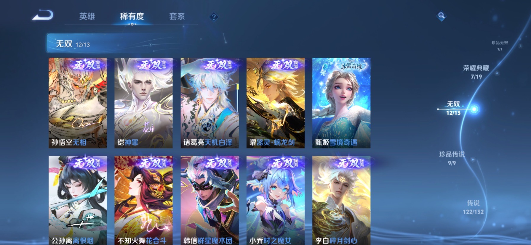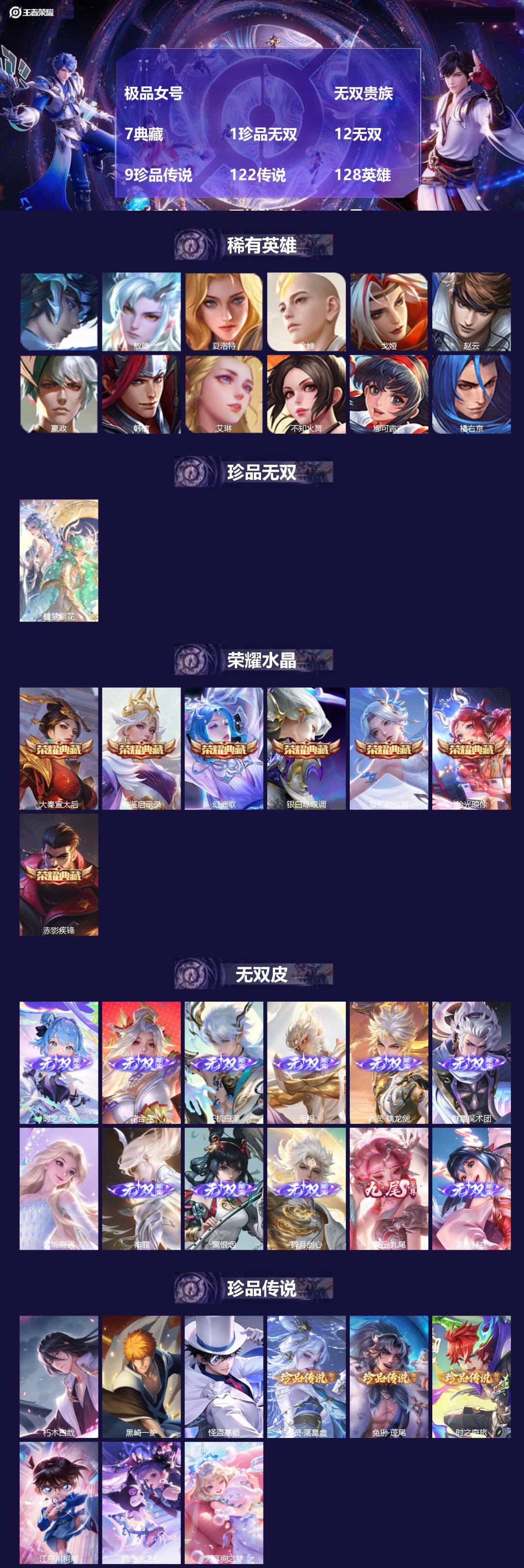 极品女号 无双贵族 7典藏 1珍品无双 12无双 9珍品传说 122传说 128英雄 631皮肤