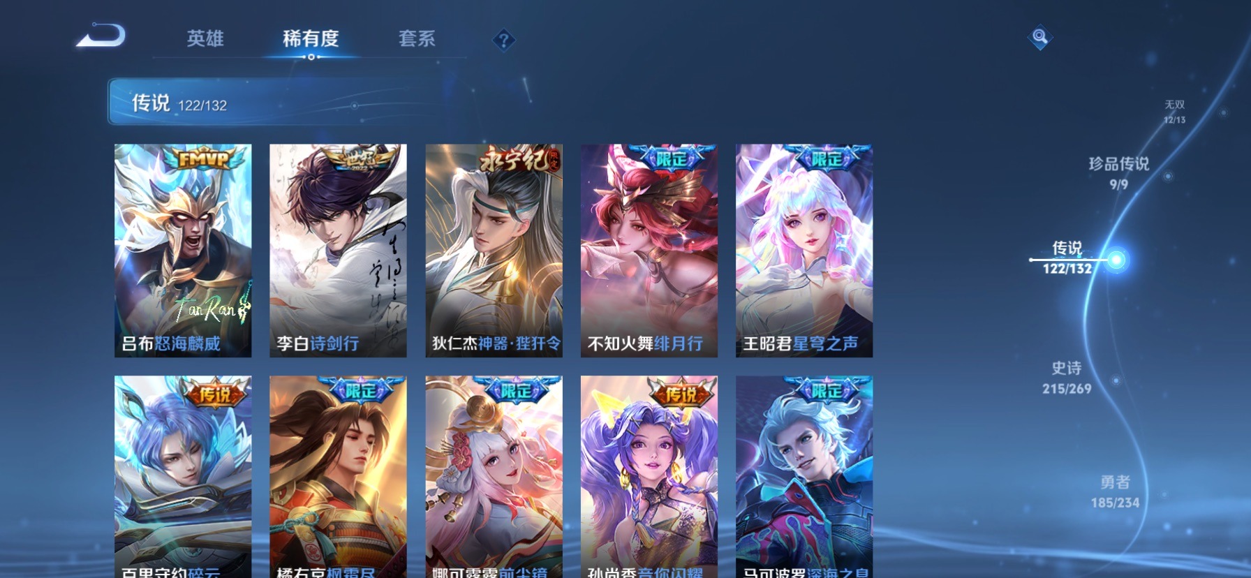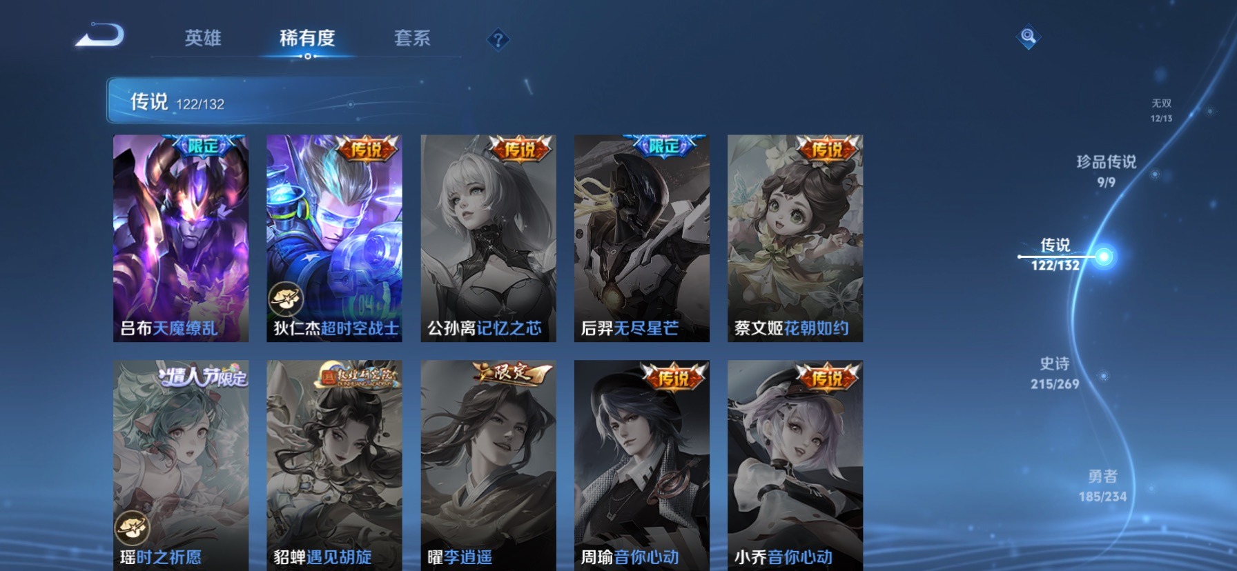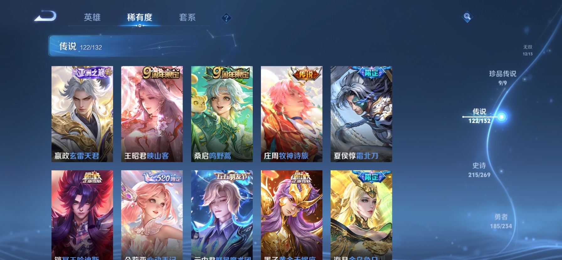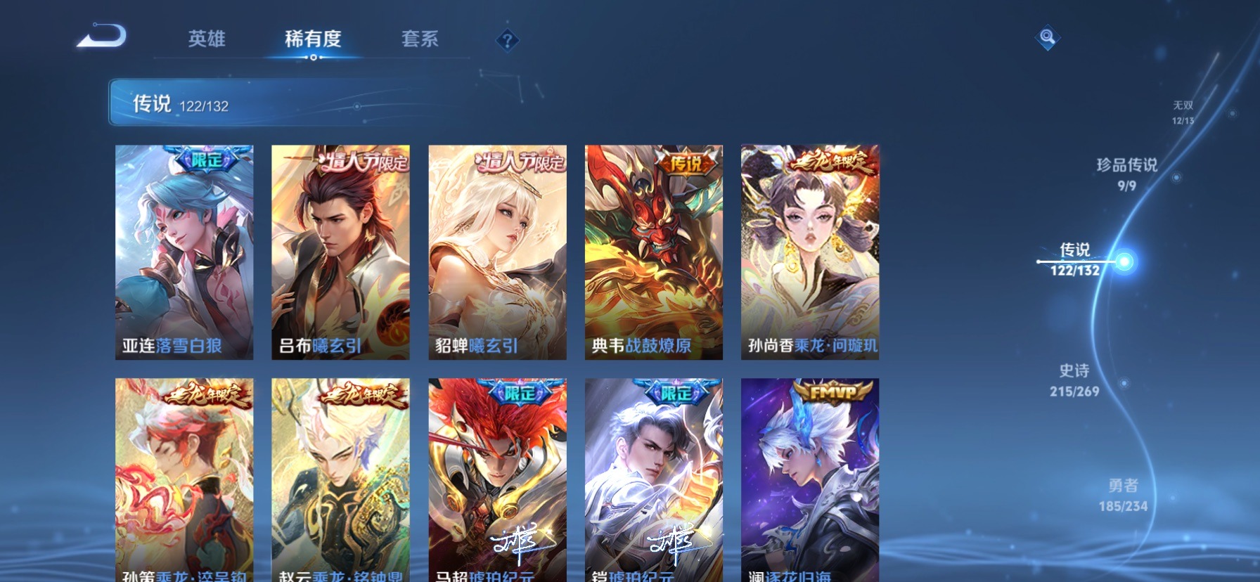 极品女号 无双贵族 7典藏 1珍品无双 12无双 9珍品传说 122传说 128英雄 631皮肤